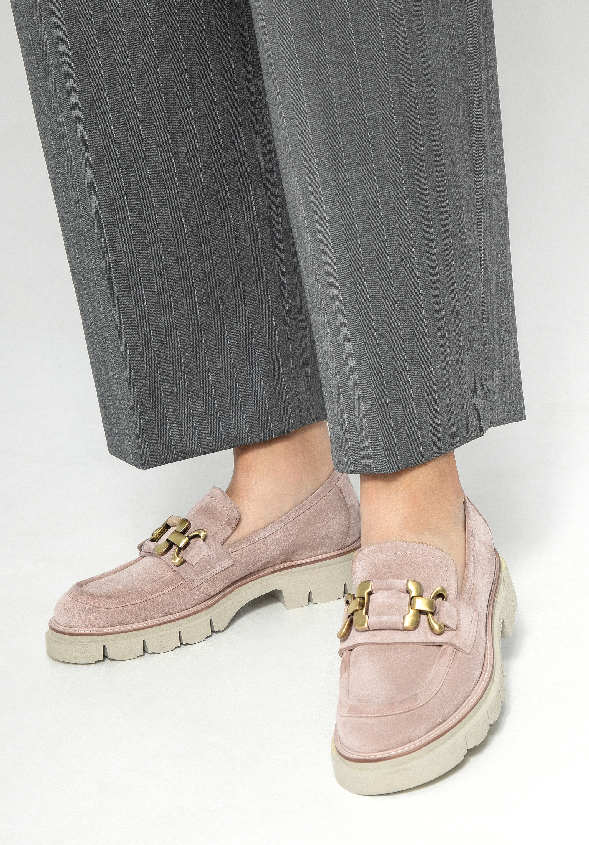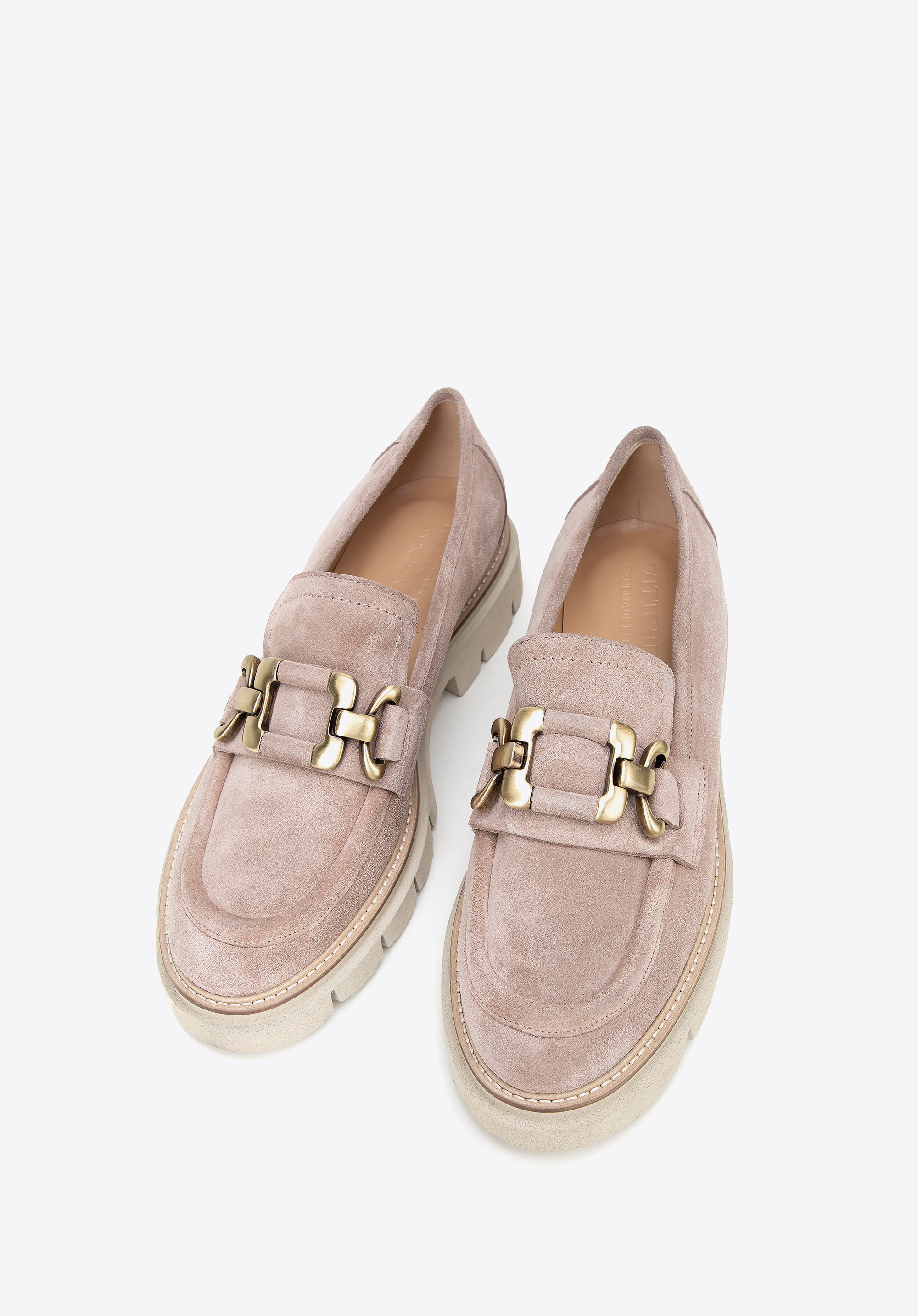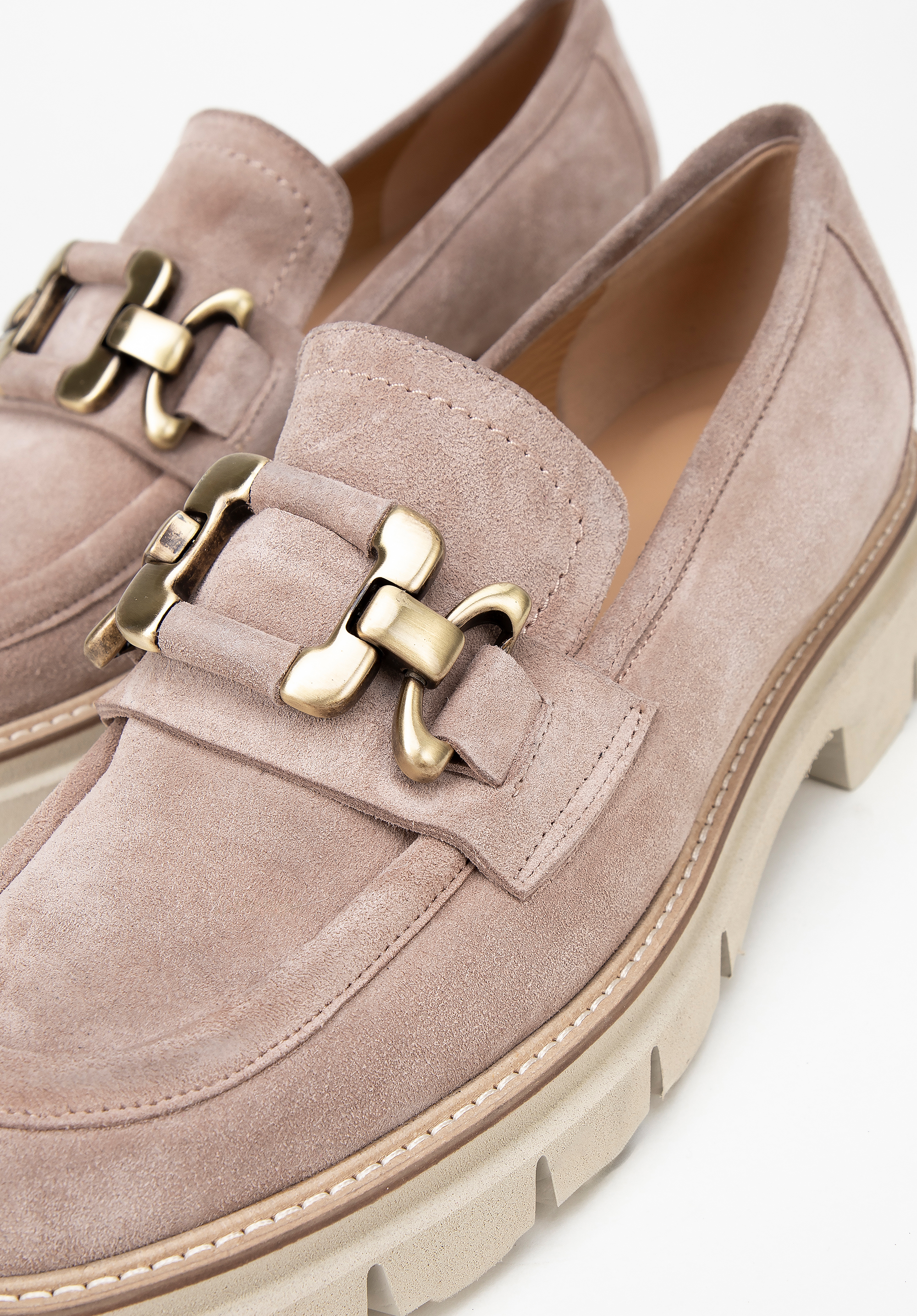Experimentați mocasinii noștri rafinați, unde luxul se întâlnește cu confortul de neegalat. Mocasinii noștri de damă din piele întoarsă îmbină stilul si confortul, ideali pentru cei care doresc să arate bine si să se simtă grozav in fiecare zi.