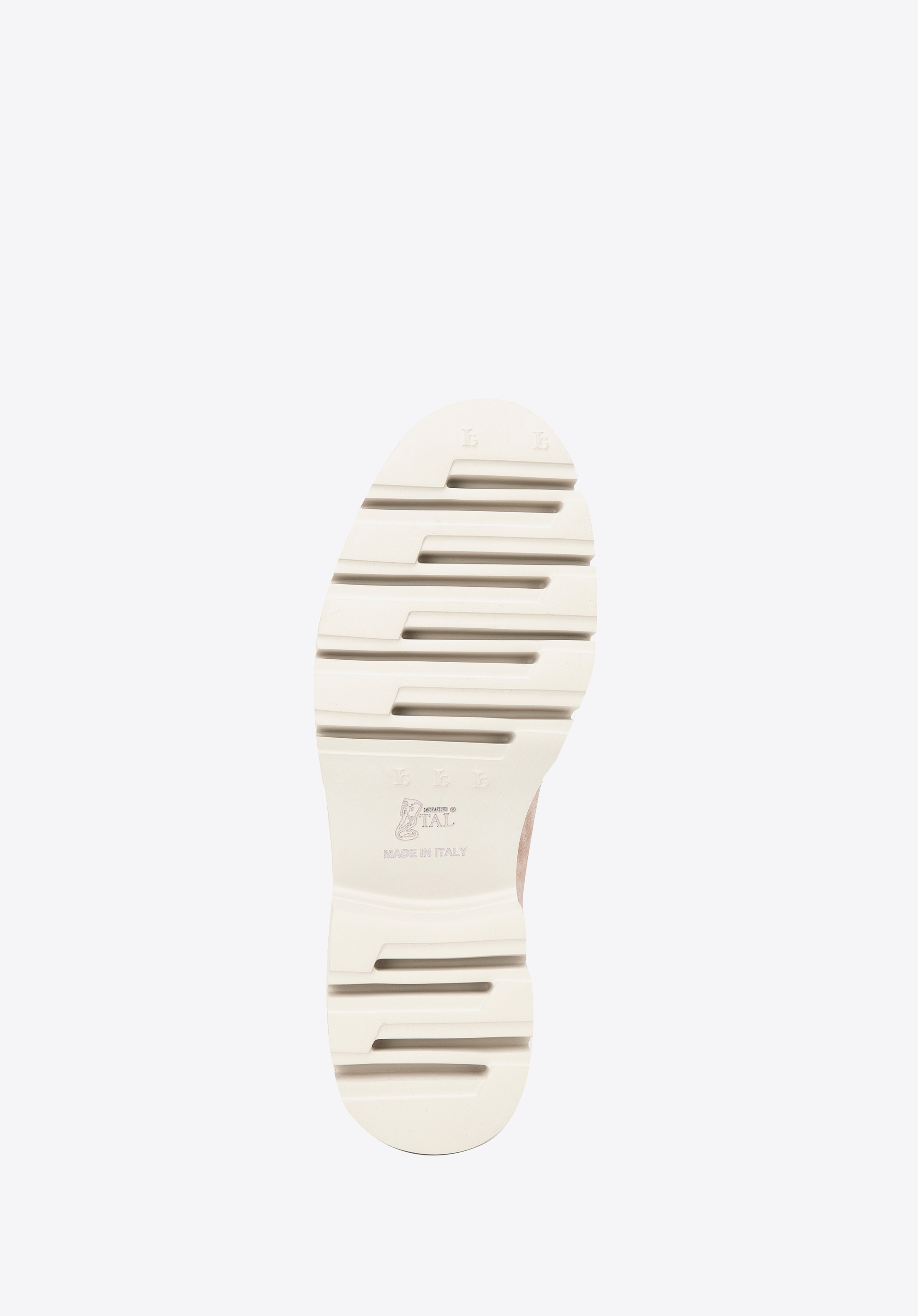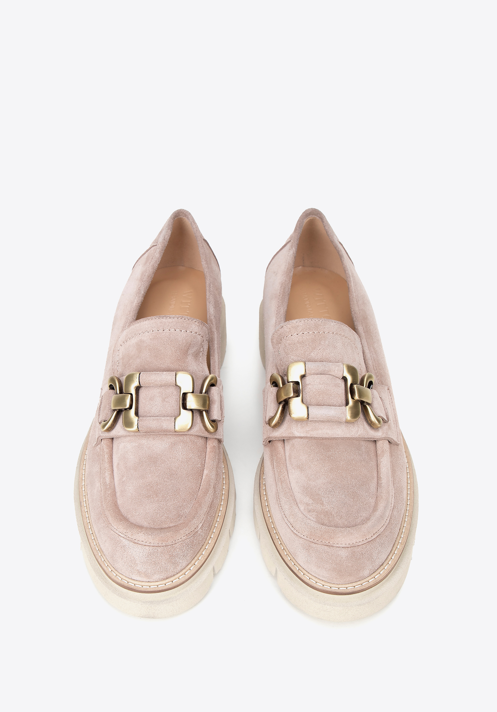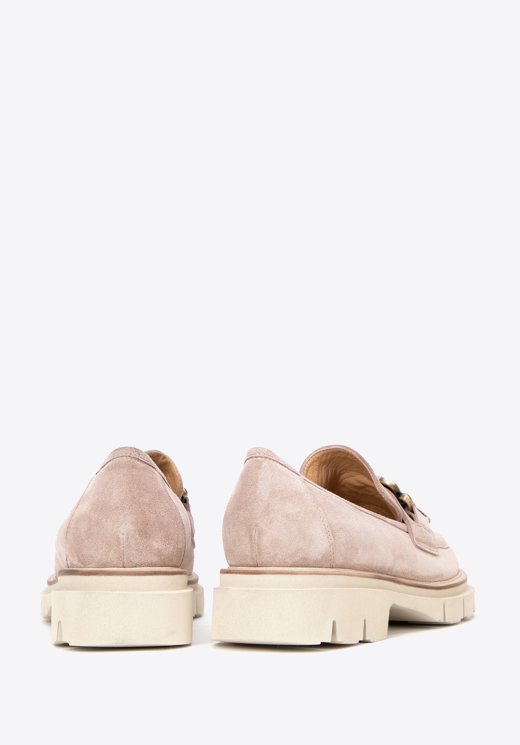 Experimentați mocasinii noștri rafinați, unde luxul se întâlnește cu confortul de neegalat. Mocasinii noștri de damă din piele întoarsă îmbină stilul si confortul, ideali pentru cei care doresc să arate bine si să se simtă grozav in fiecare zi.