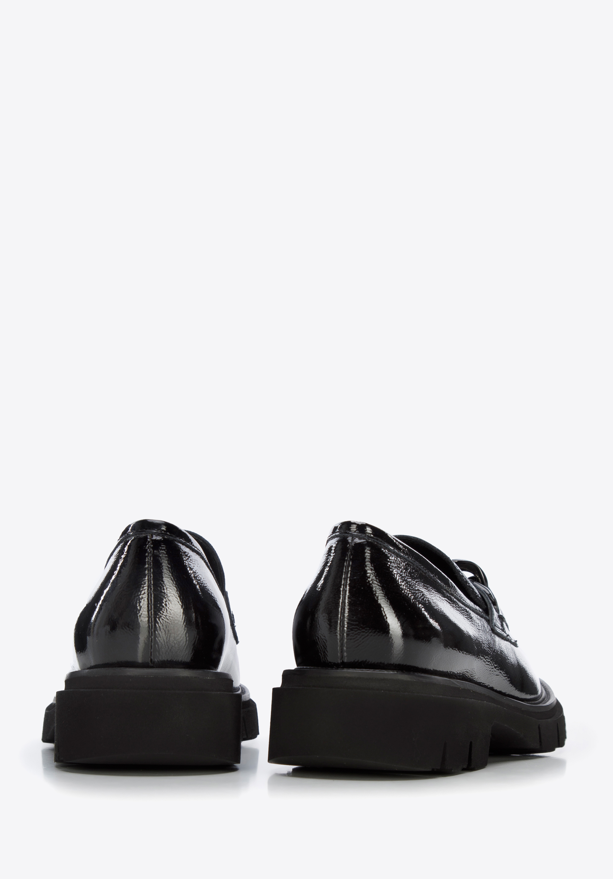 lanț gros de culoare neagră.În plus, au o talpă robustă, cu caneluri pronunțate, astfel încât vor oferi o bună tracțiune pe diferite suprafețe rrele. Purtați-i în fiecare zi atât la serviciu, cât și după serviciu: vă vor completa la modă stilul în orice situație.Mocasini clasici