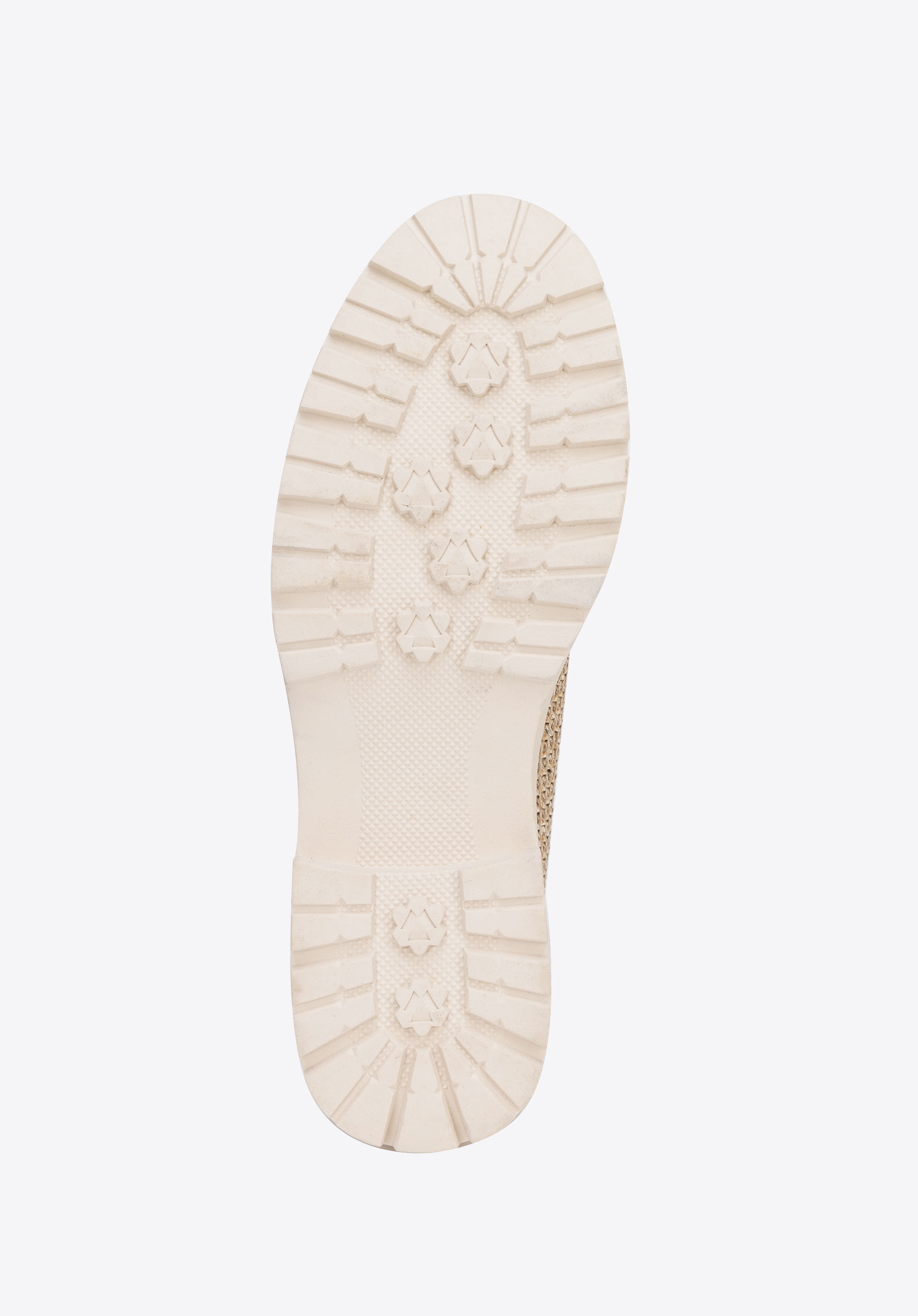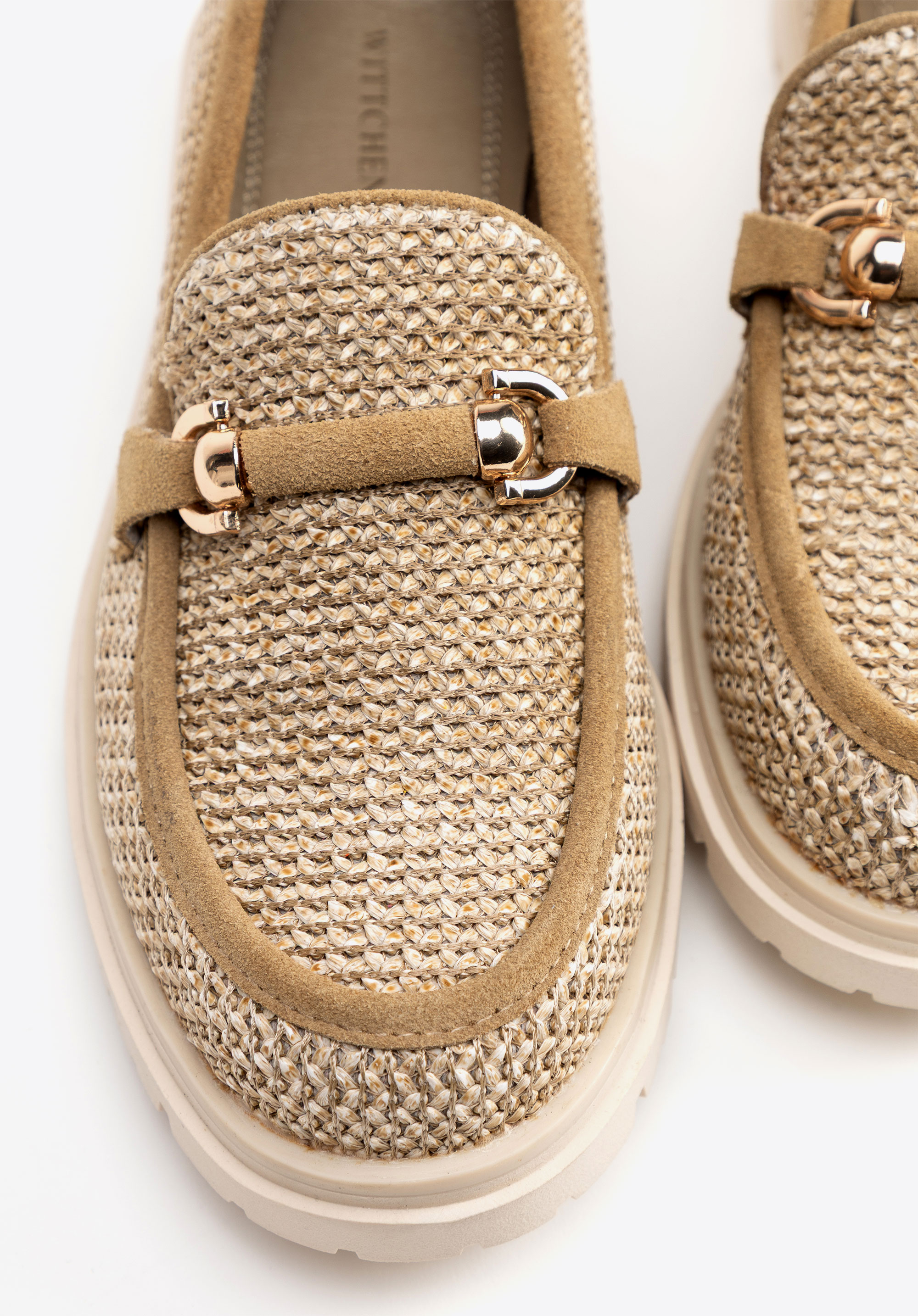 Mocasini din rafie și piele întoarsă pe platformă bej