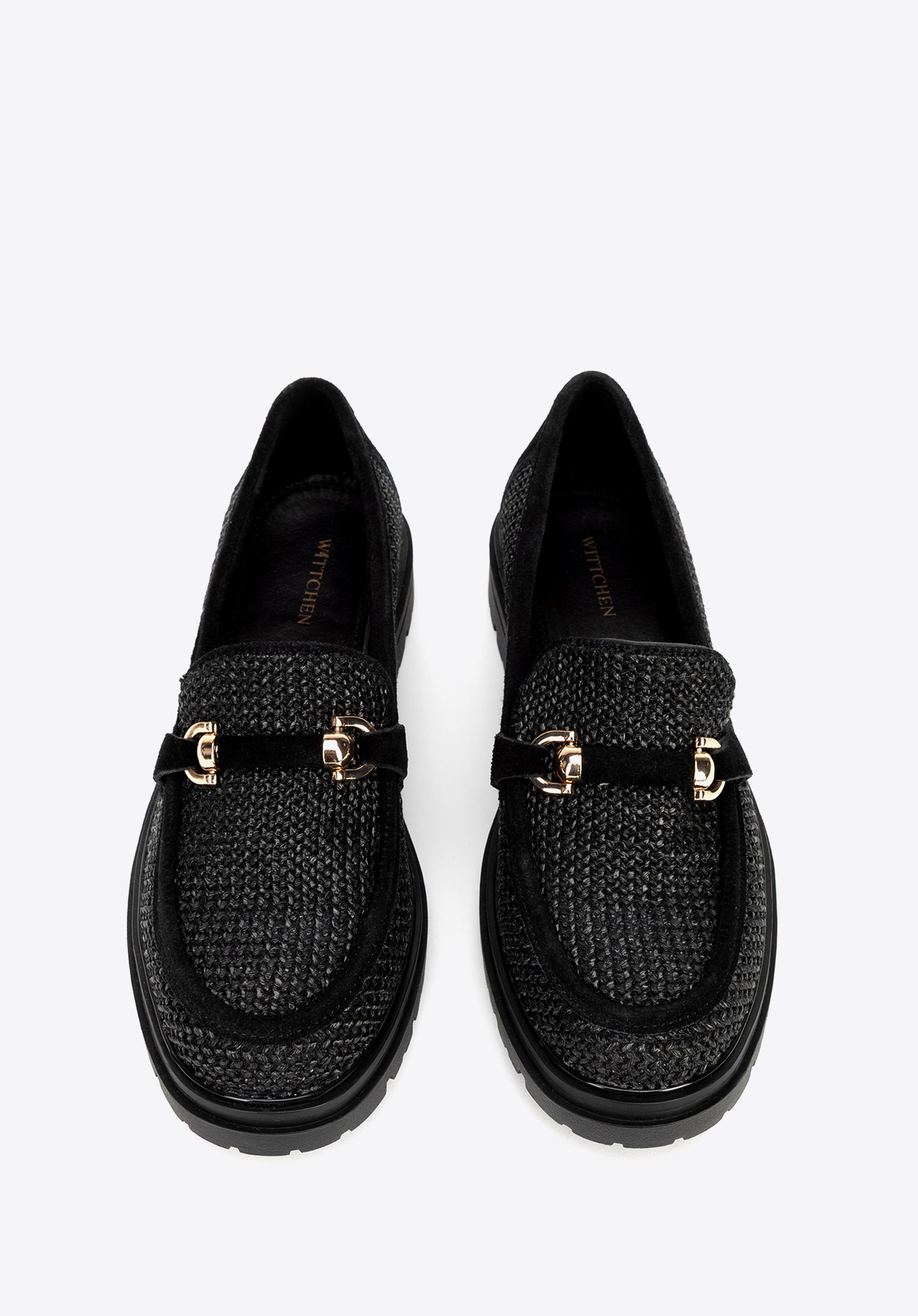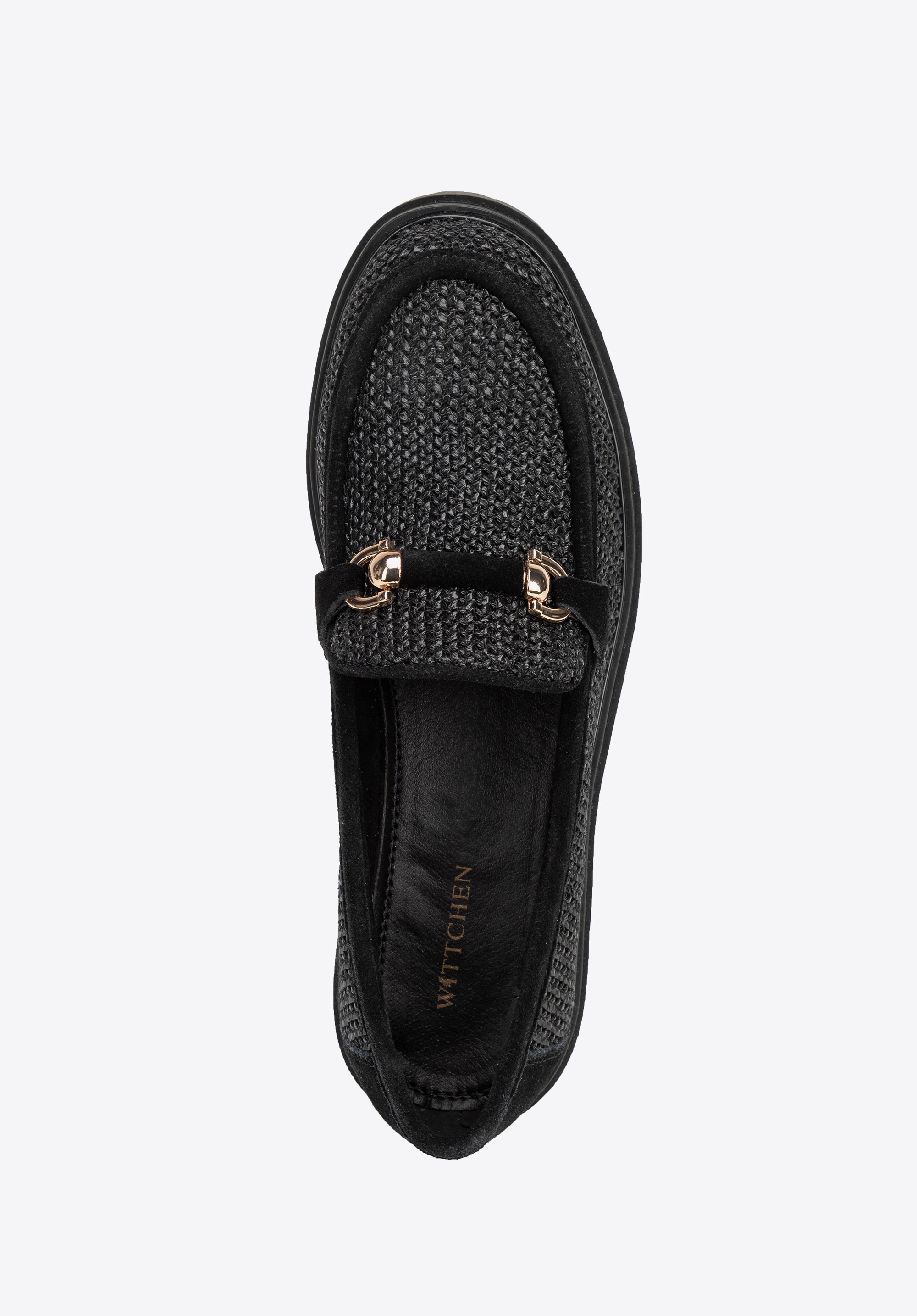 Mocasini din rafie și piele întoarsă pe platformă negru
