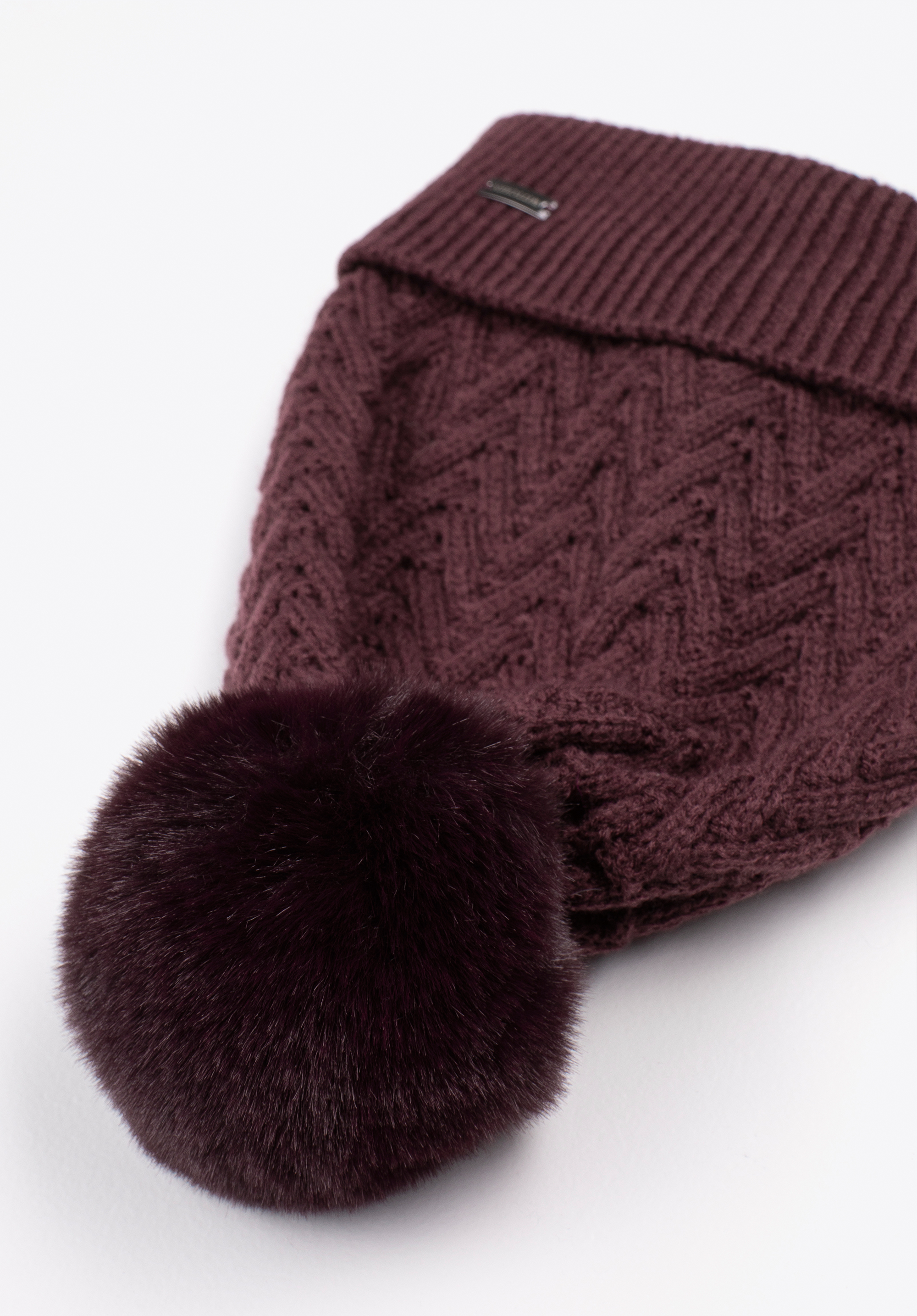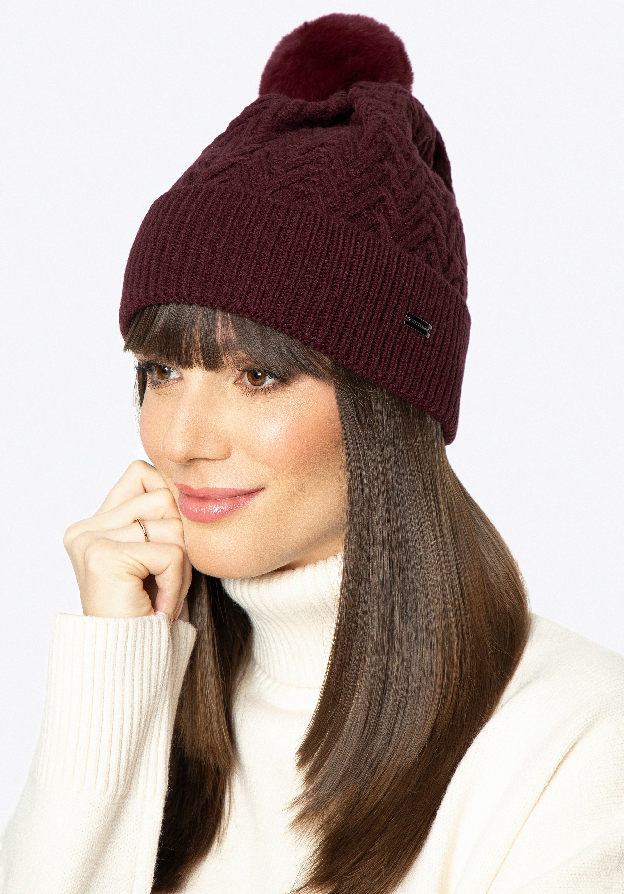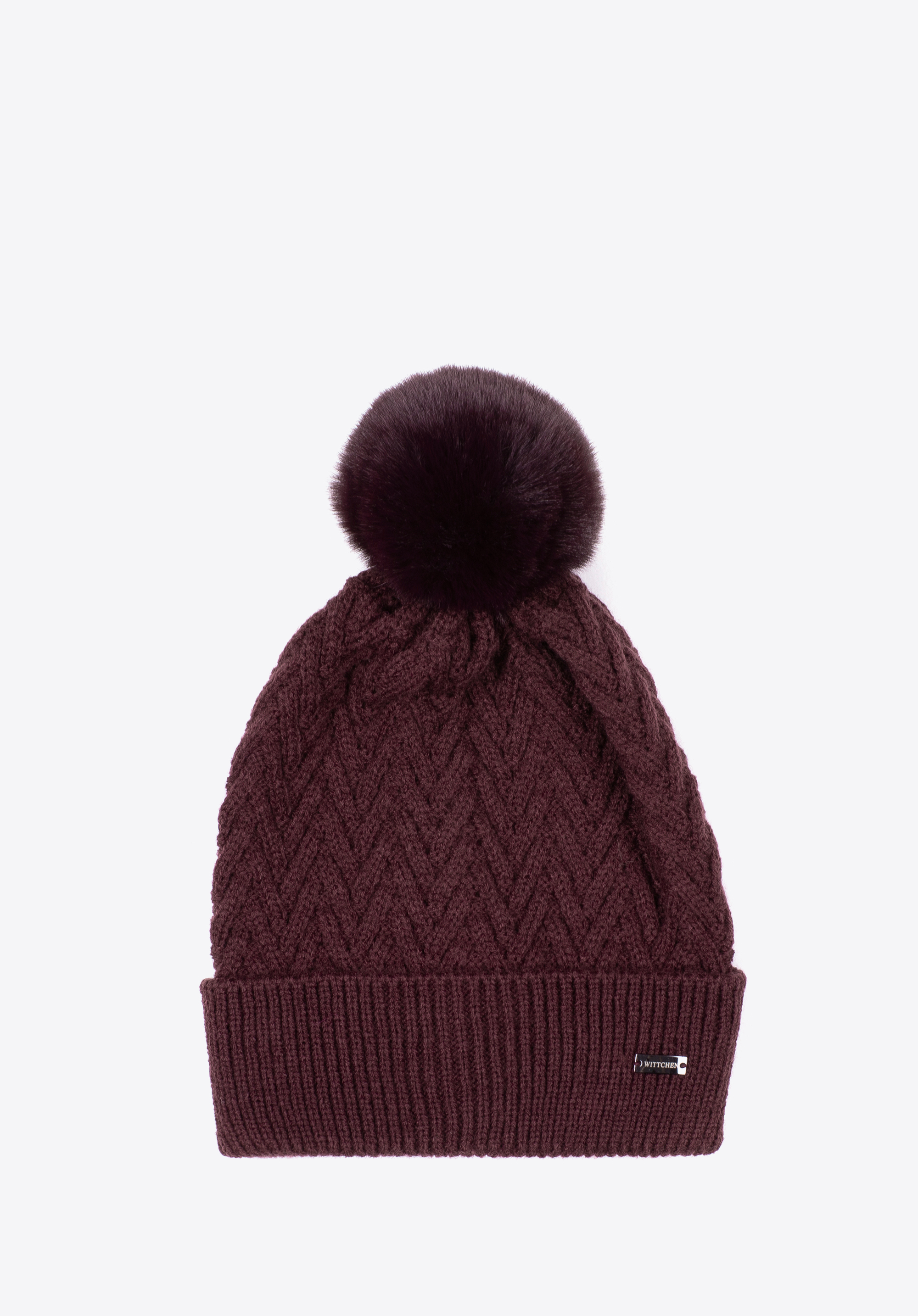 Pălărie de iarnă cu model de cusătură în formă de herringbone prună