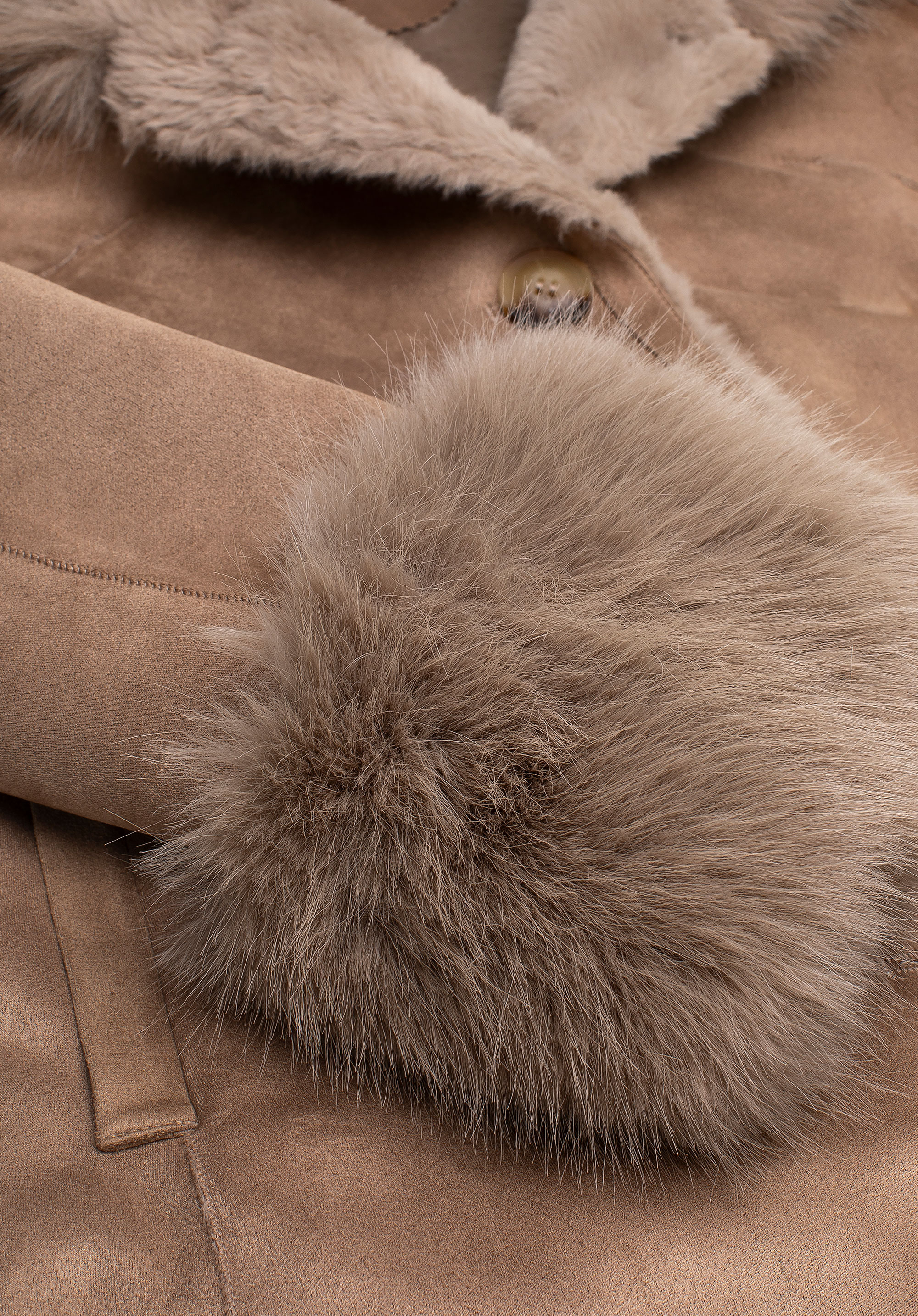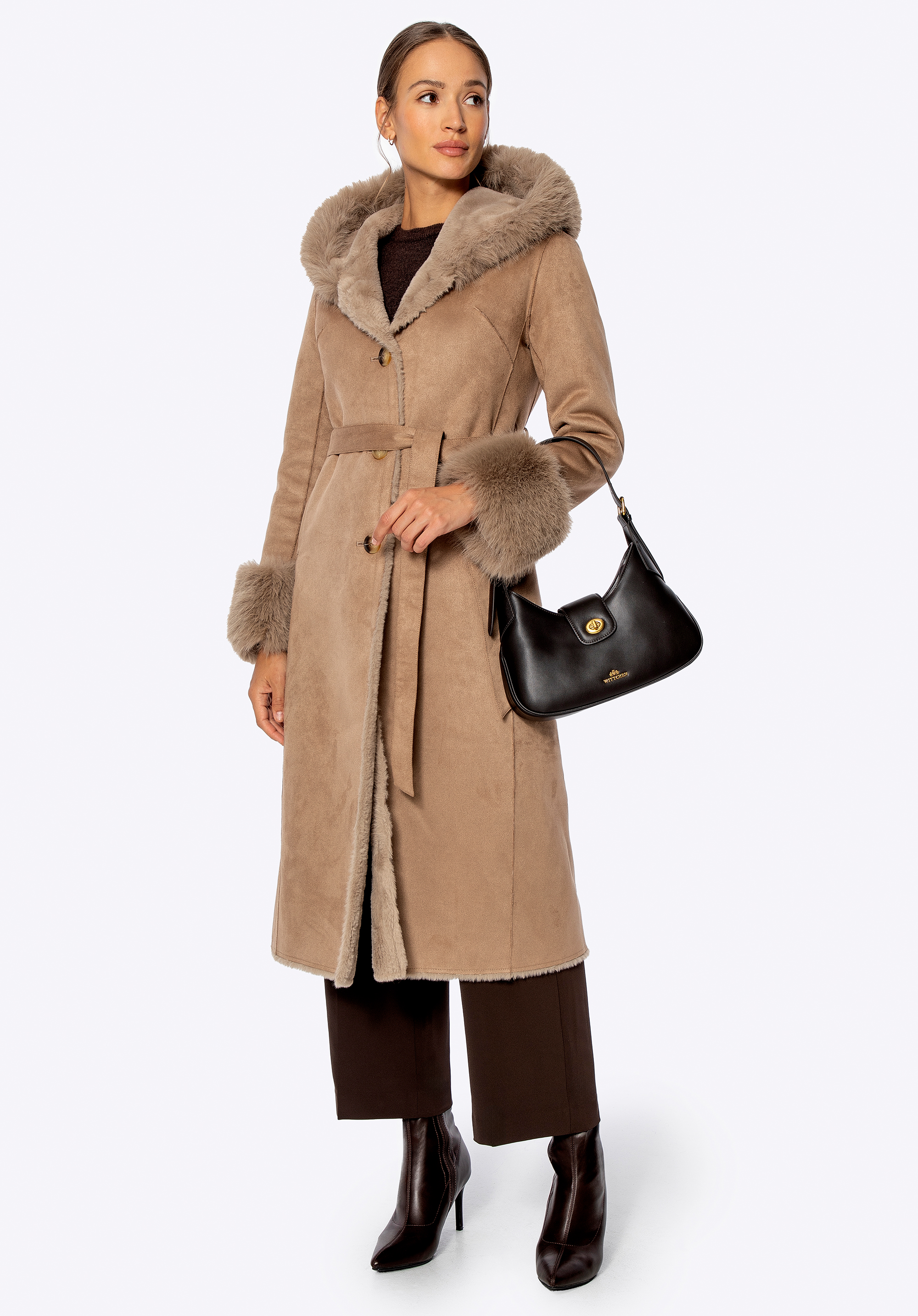 Sfatul nostru: Asortează-l cu cizme înalte și o geantă clasică din piele – gluga din blană artificială creează un aspect deosebit, așa că nu vei avea nevoie de accesorii suplimentare. Pentru o ținută de zi cu zi, optează pentru niște botine călduroase și o căciulă de lână – acest palton se va adapta fără efort stilului tău.