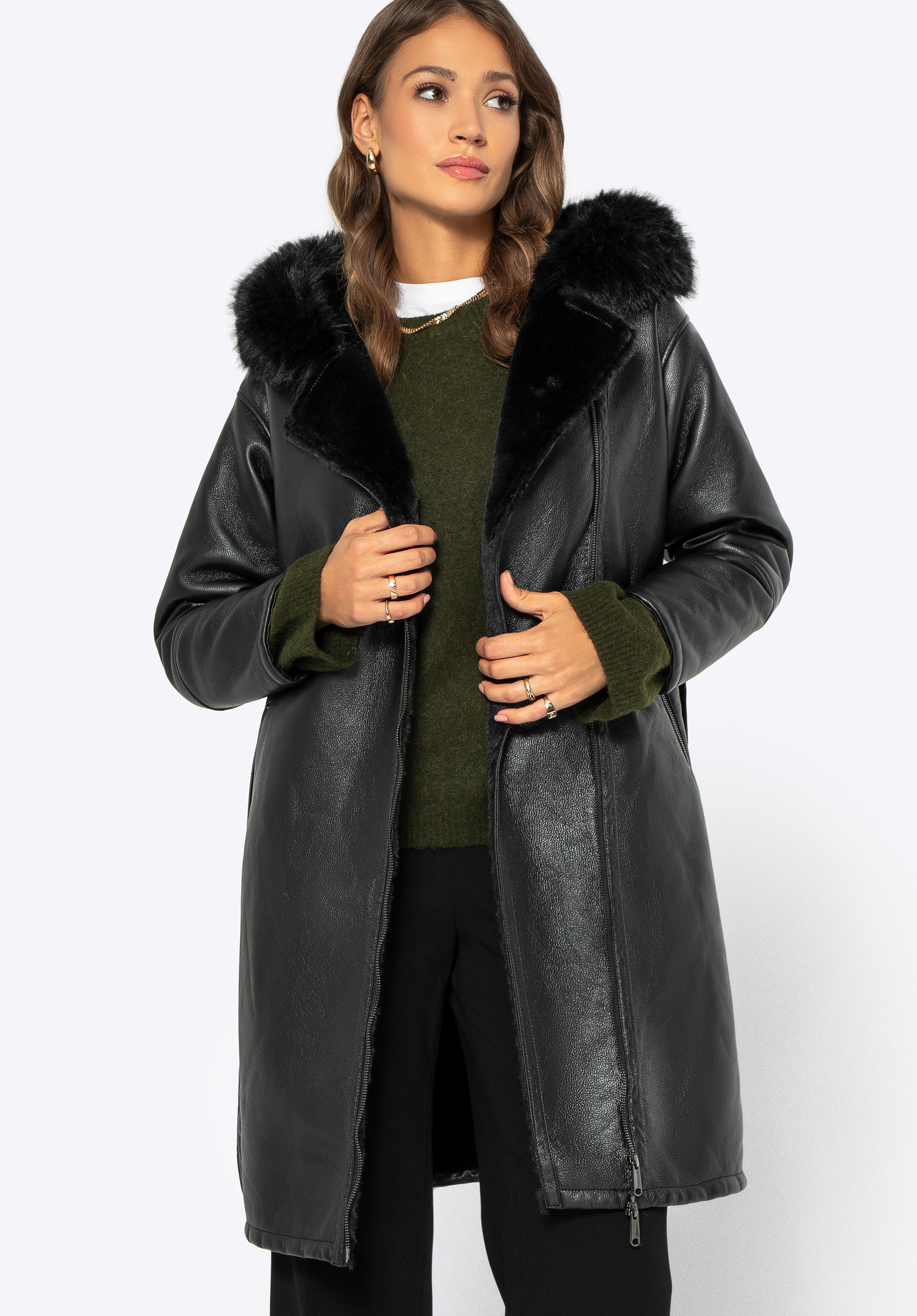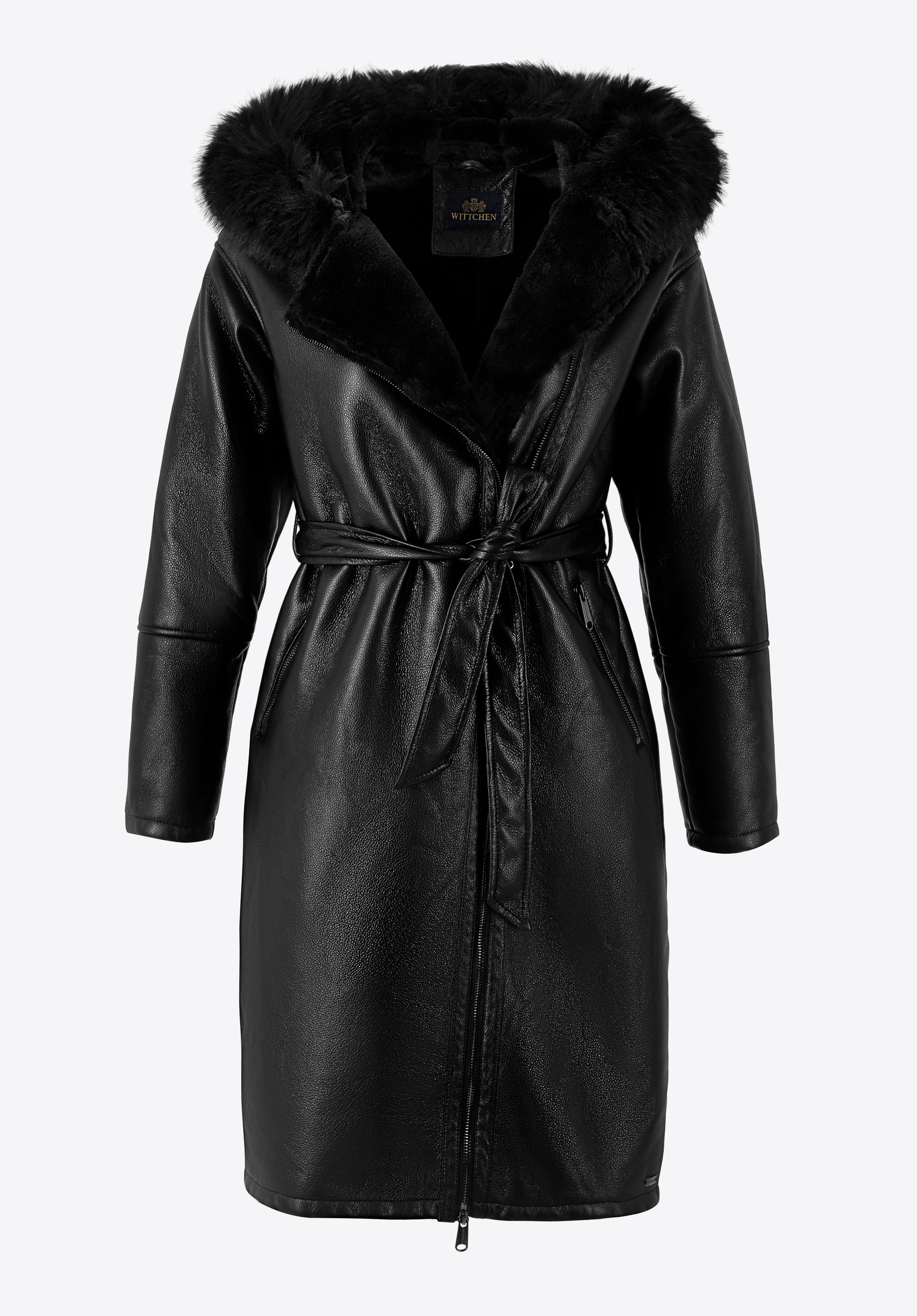 - Blană artificială: Finisajul elegant cu blană artificială moale adaugă o notă unică hainei. Textura sa blândă sporește eleganța, oferind în același timp o izolație excelentă împotriva frigului.