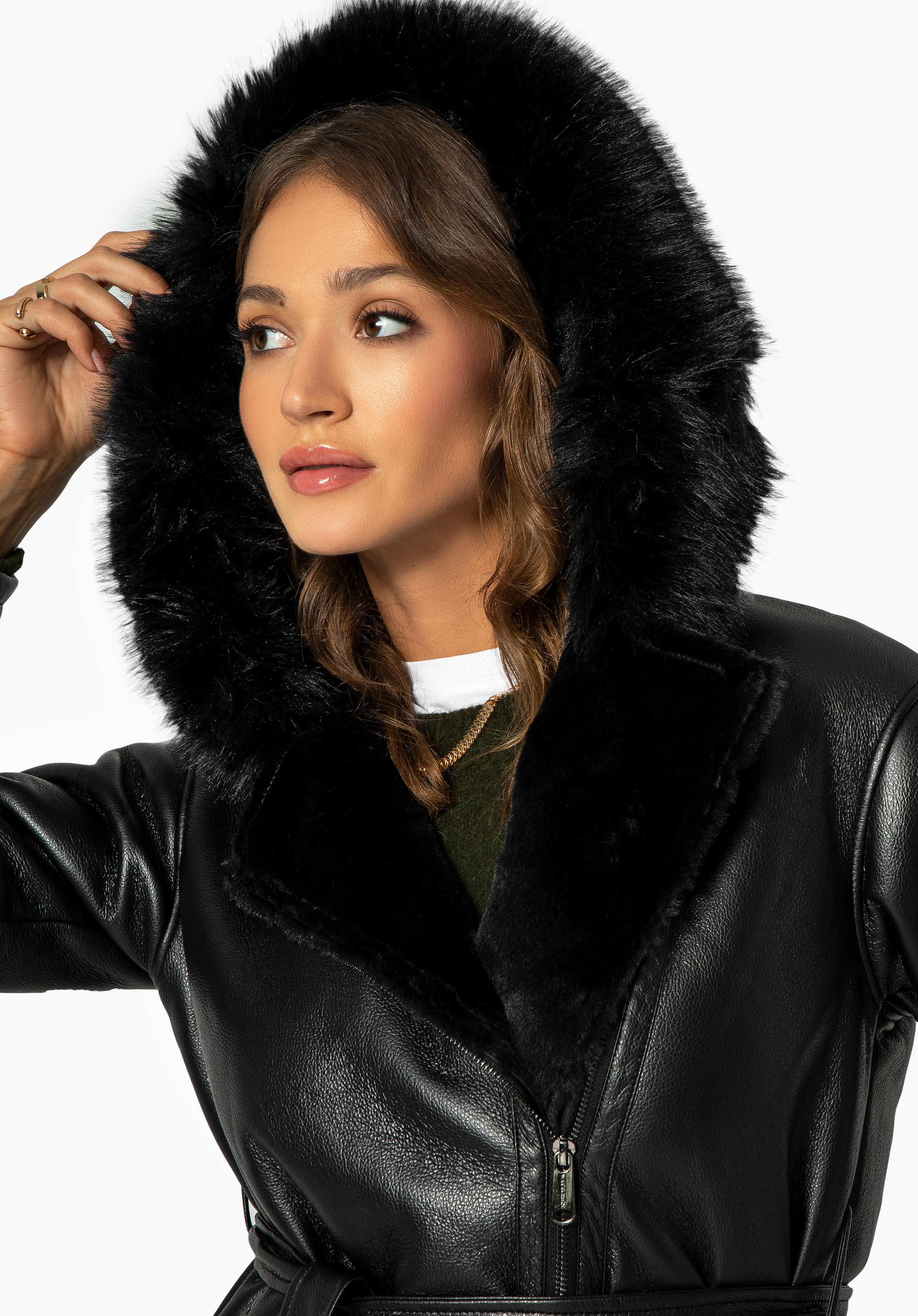 Descoperiți amestecul perfect de eleganță și practicitate cu haina noastră de damă din imitație de piele , concepută pentru a vă accentua silueta, menținându-vă în același timp cald și confortabil în zilele reci.