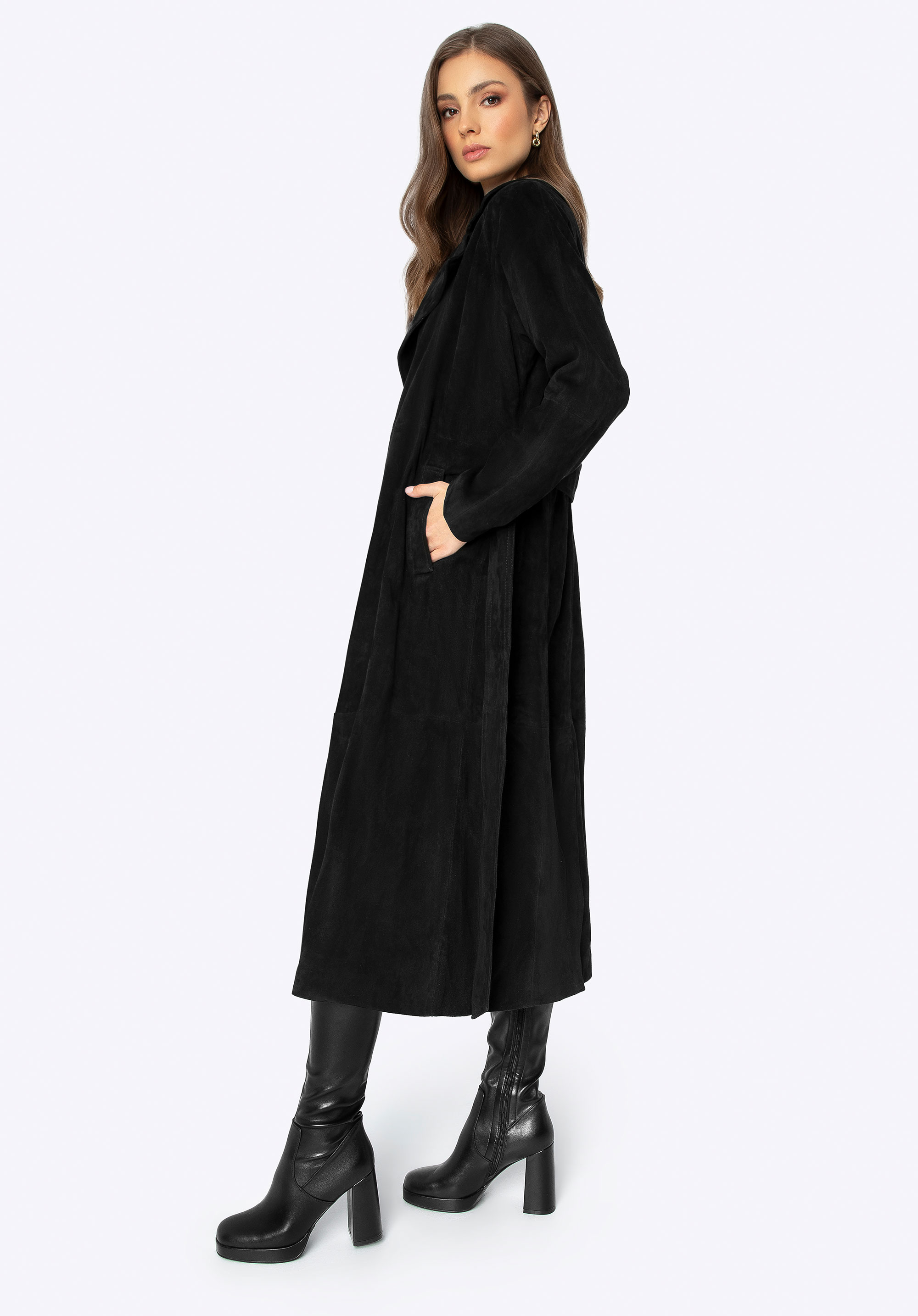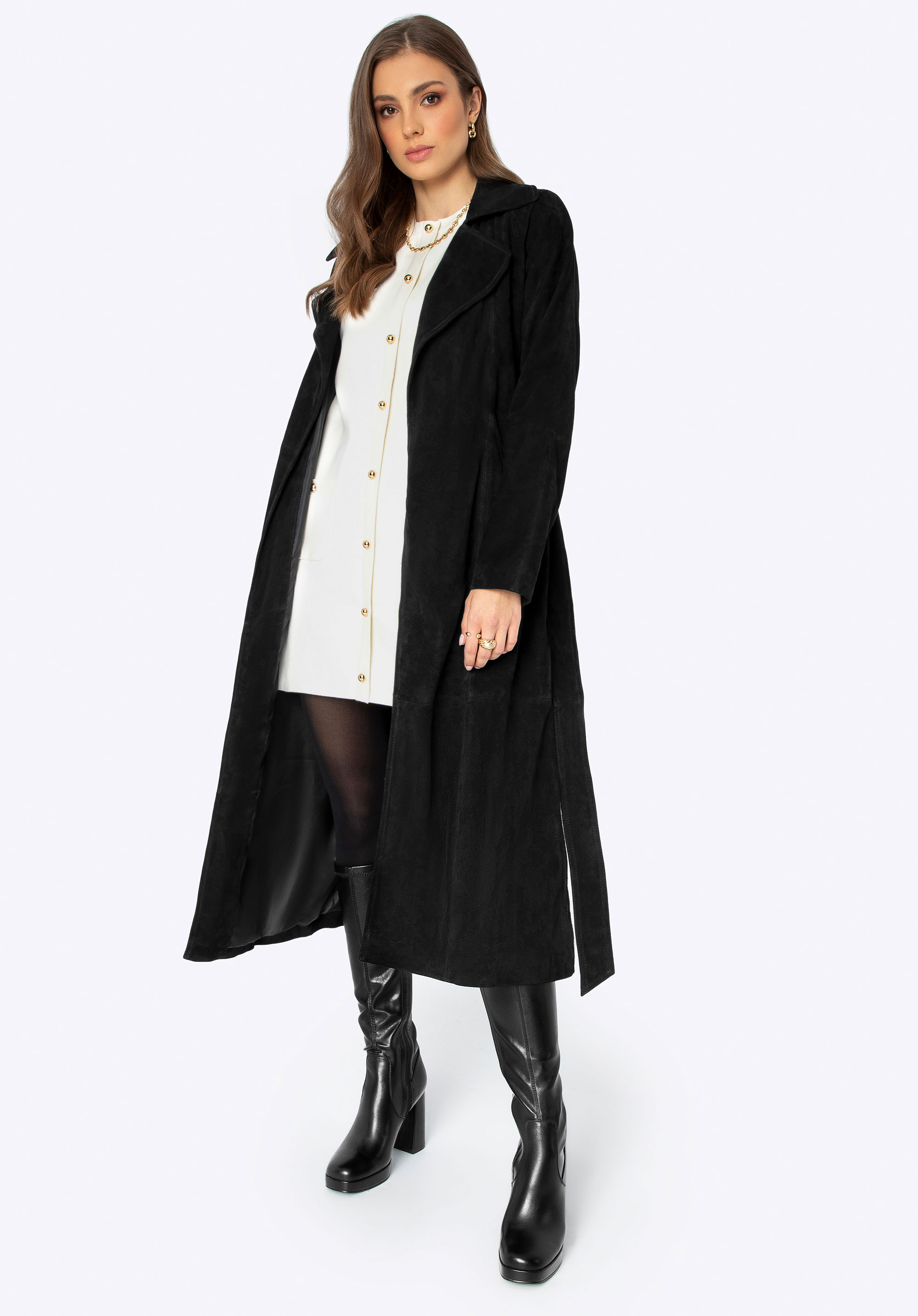 Descoperă paltonul nostru excepțional din piele naturală de cea mai înaltă calitate. Este esența stilului clasic cu o notă modernă, adăugând rafinament oricărei ținute. Designul simplu al hainei radiază o eleganță minimalistă, făcându-l ideal atât pentru îmbrăcămintea zilnică elegantă, cât și pentru evenimente speciale. Această haină nu este doar elegantă, dar îți accentuează perfect silueta datorită curelei din talie. Reverul crestat adaugă o notă de farmec clasic, în timp ce cele două buzunare adânci oferă spațiu pentru elementele esențiale pe care vrei să le ții la îndemână. Deschiderea discretă din spate cu pliuri oferă libertate de mișcare și un plus de confort.