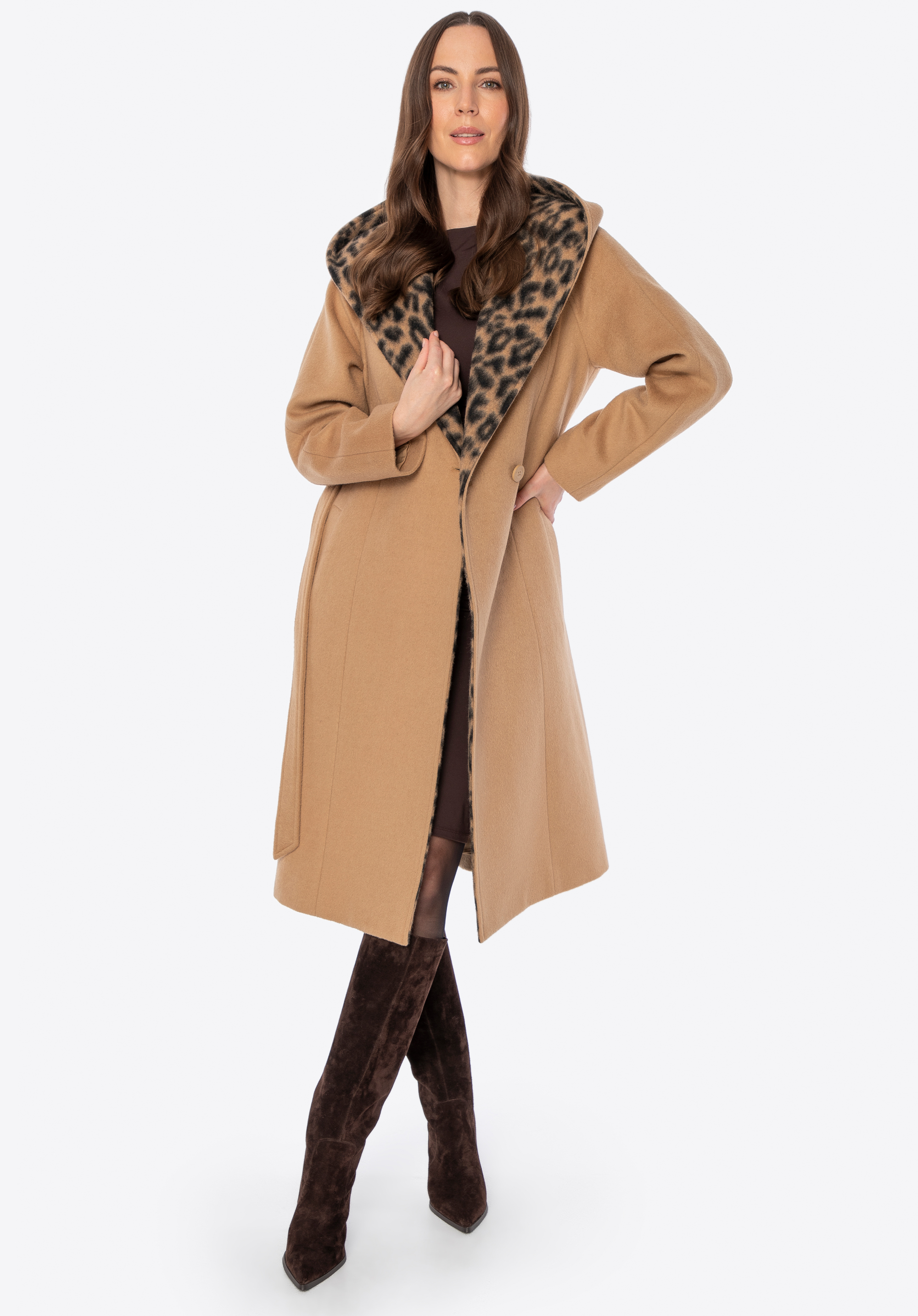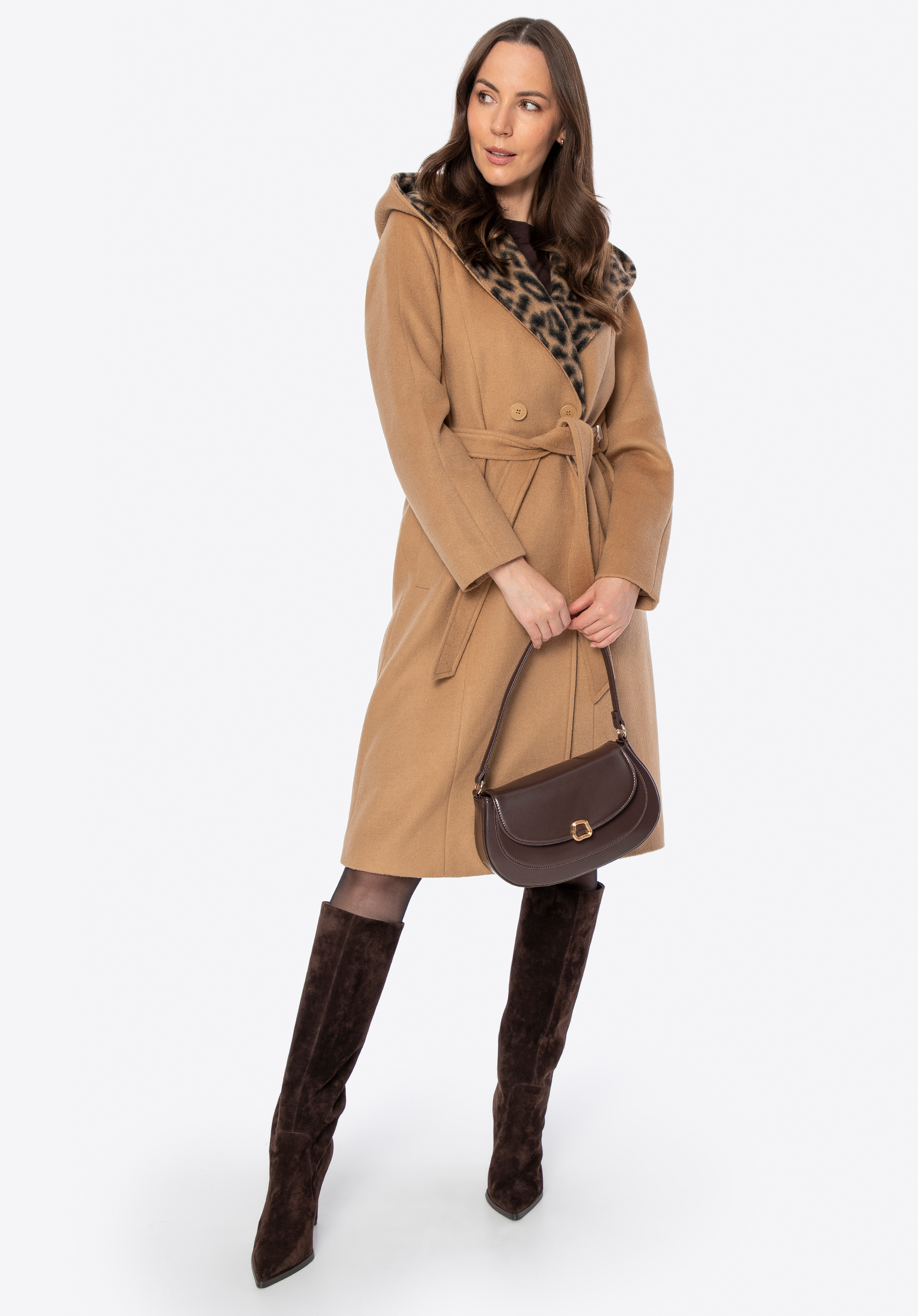 Palton de lână cu două rânduri de nasturi pentru femei Culoare: camel