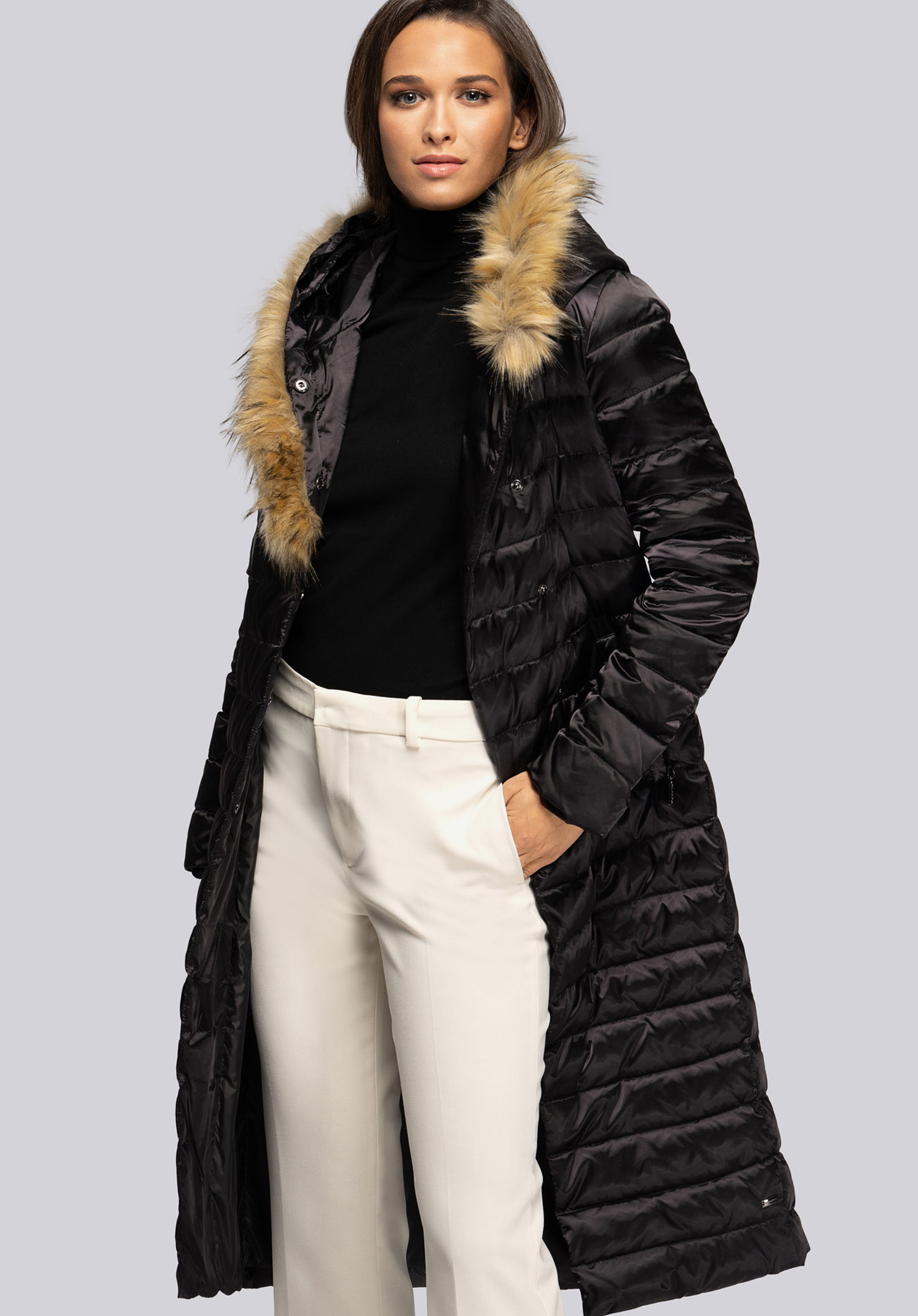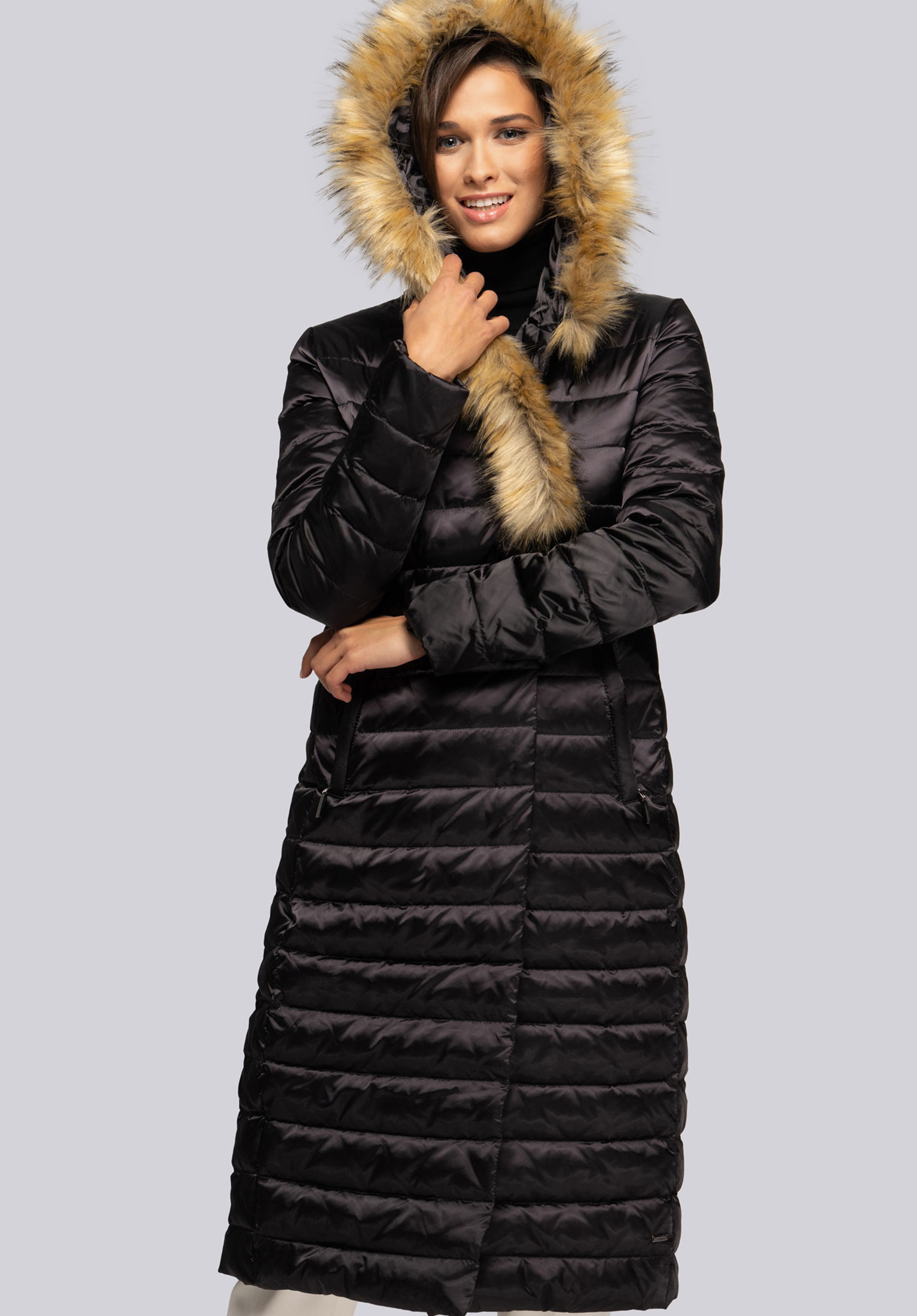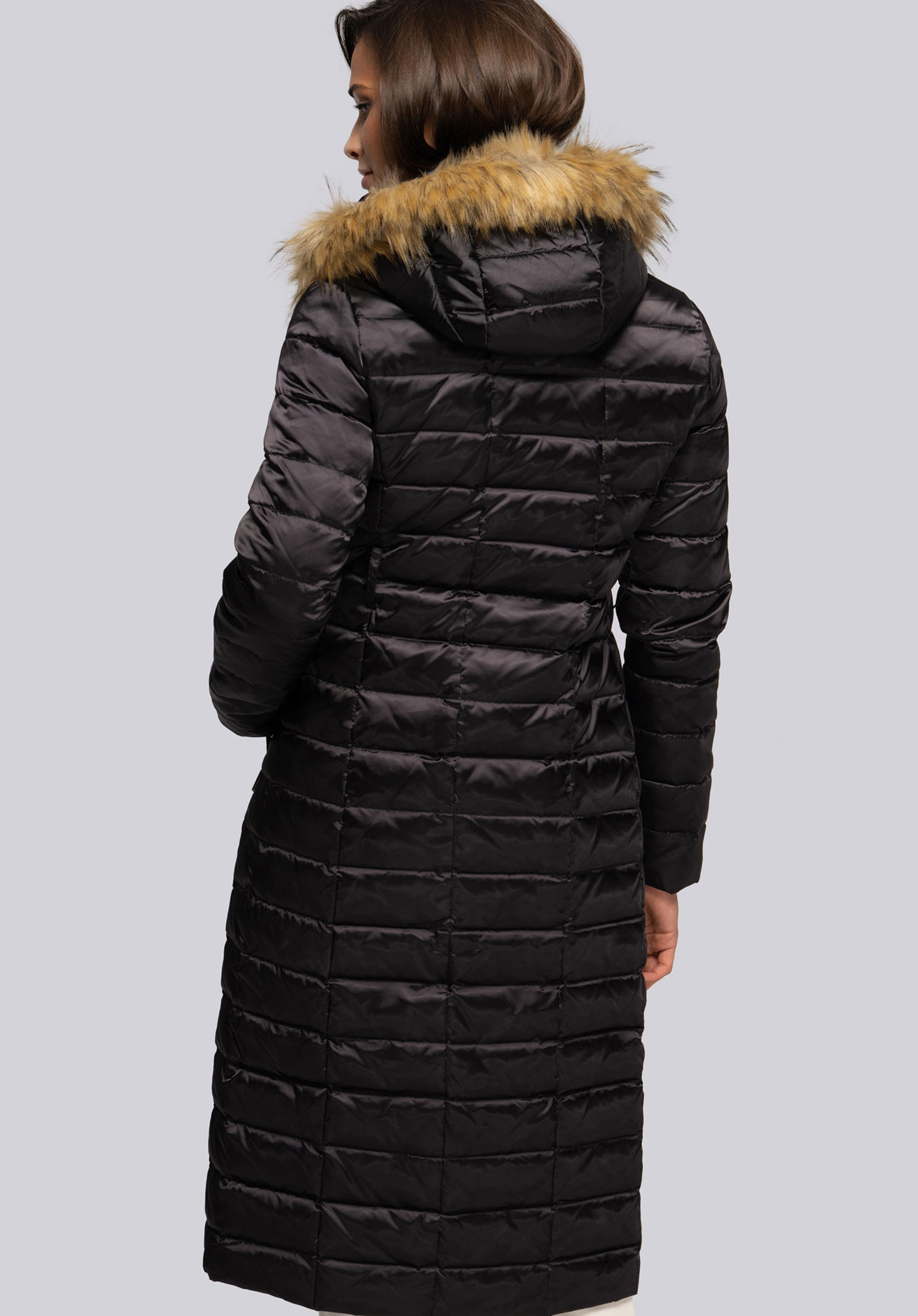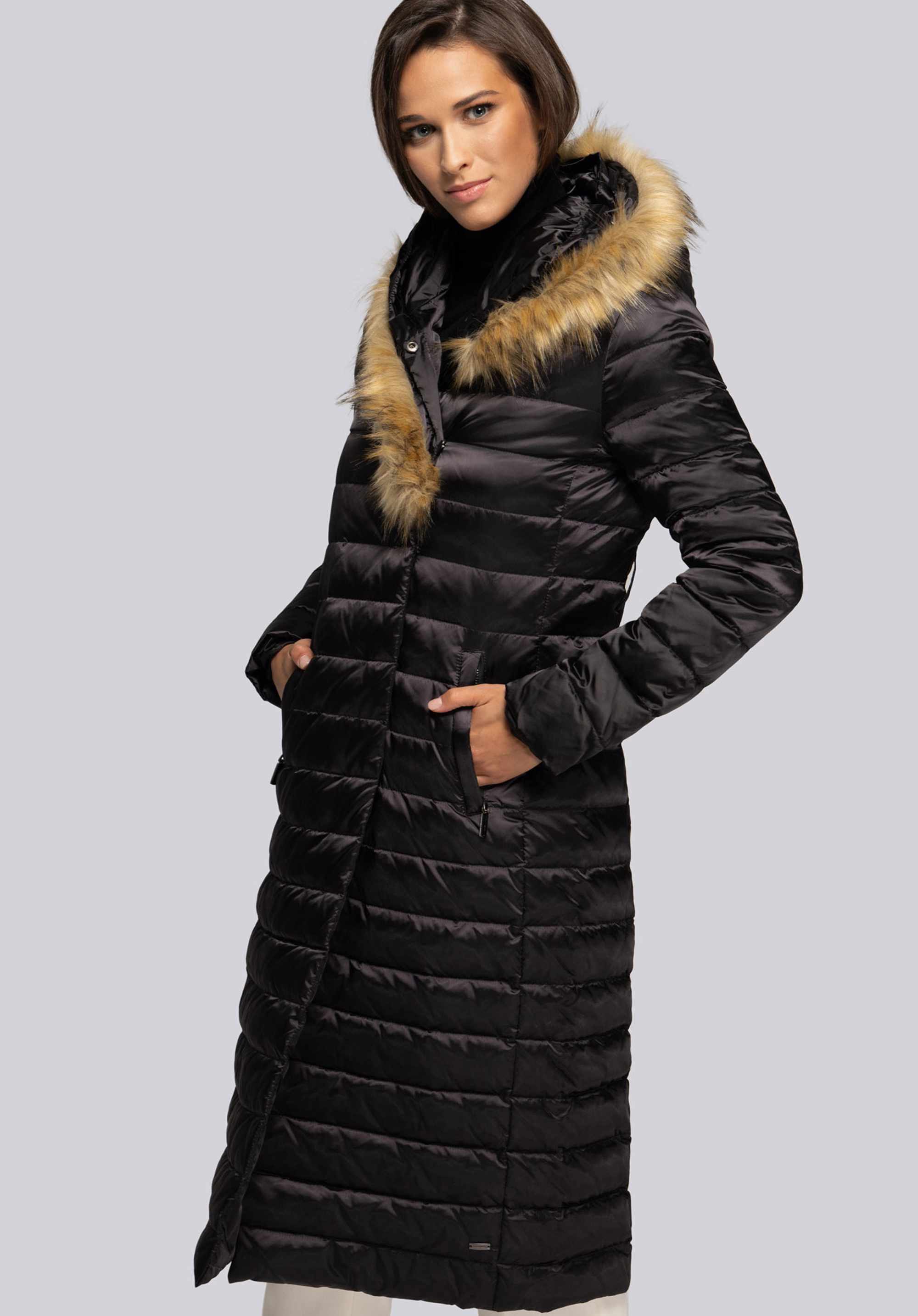 Palton clasic de damă cu puf de gâscă și umplutură cu pene, care te va învălui în zilele reci de iarnă și toamnă.Blana nu este groasă sau grea, dar umplutura naturală vă va ține de cald și nu se va aglomera .Datorită croiului alungit adaptat figurii feminine și centura in talie Silueta ta va arăta foarte îngrijită.De asemenea, acordați atenție ușoară strălucire a materialului și garnitură eficientă a glugăi cu blană artificială , care creează un guler asimetric atunci când este prins .Paltonul de puf de damă cu blană artificială asimetrică este o îmbrăcăminte de iarnă, dar și o soluție excelentă pentru zilele reci de toamnă și primăvară.