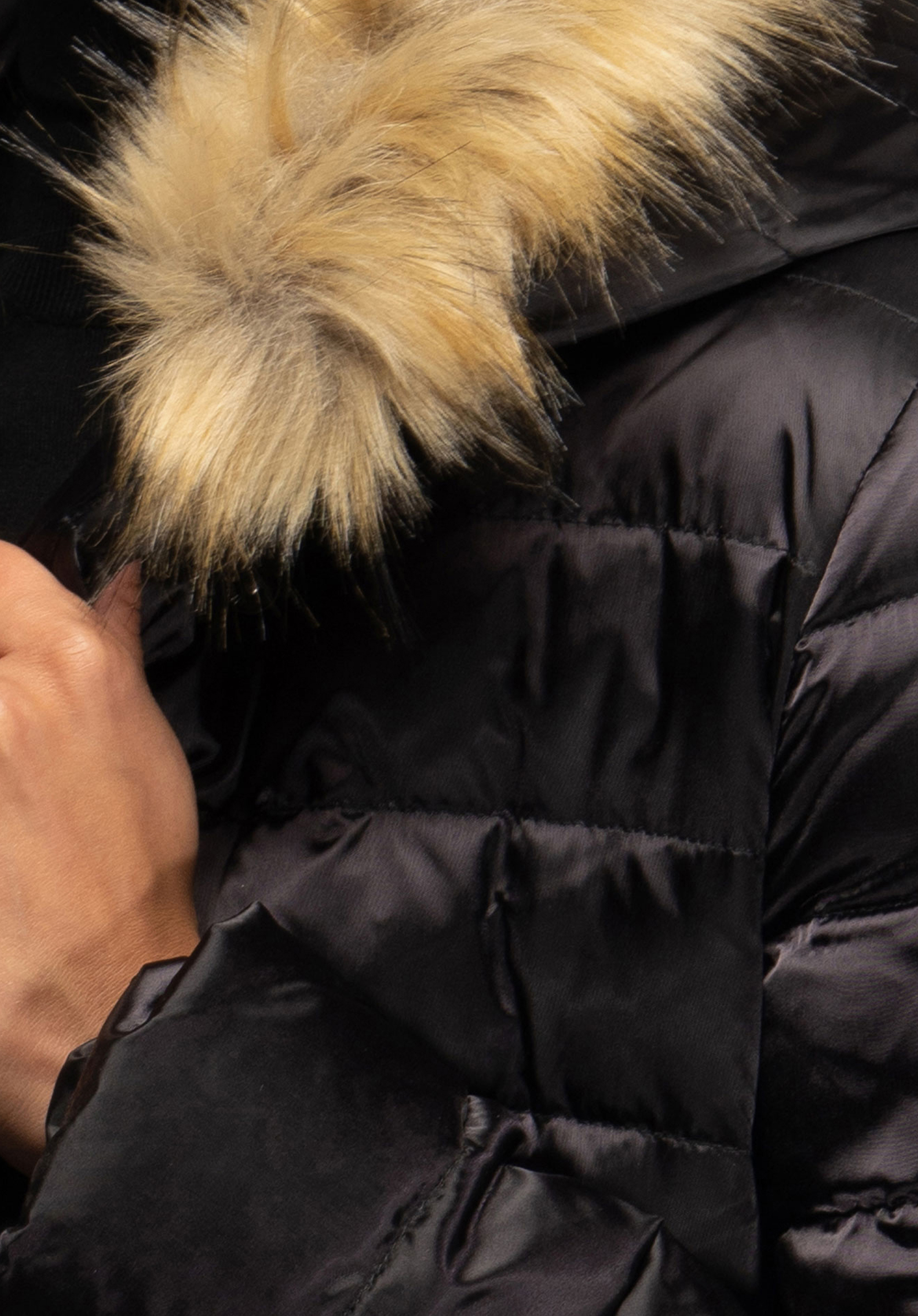 - glugă ușor izolată cu garnitură de blană detașabilă ;