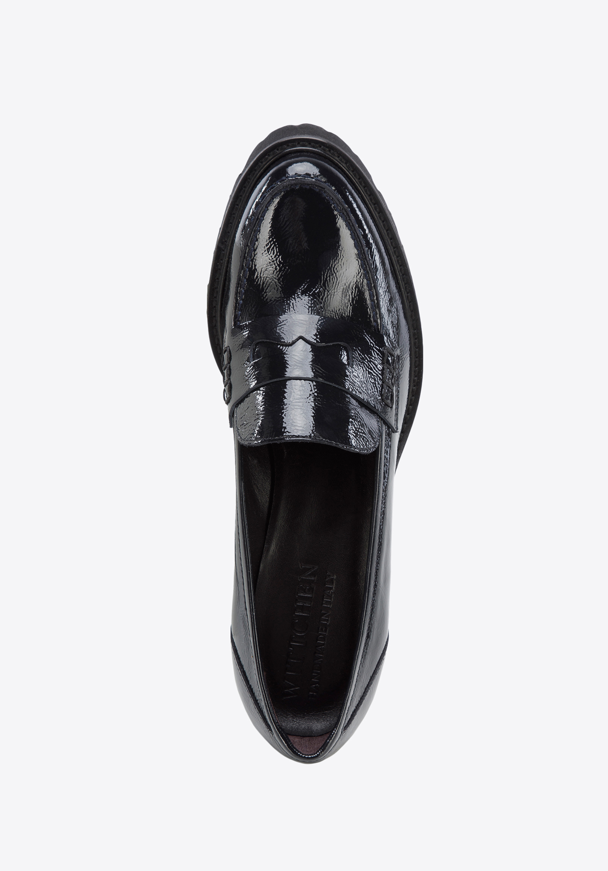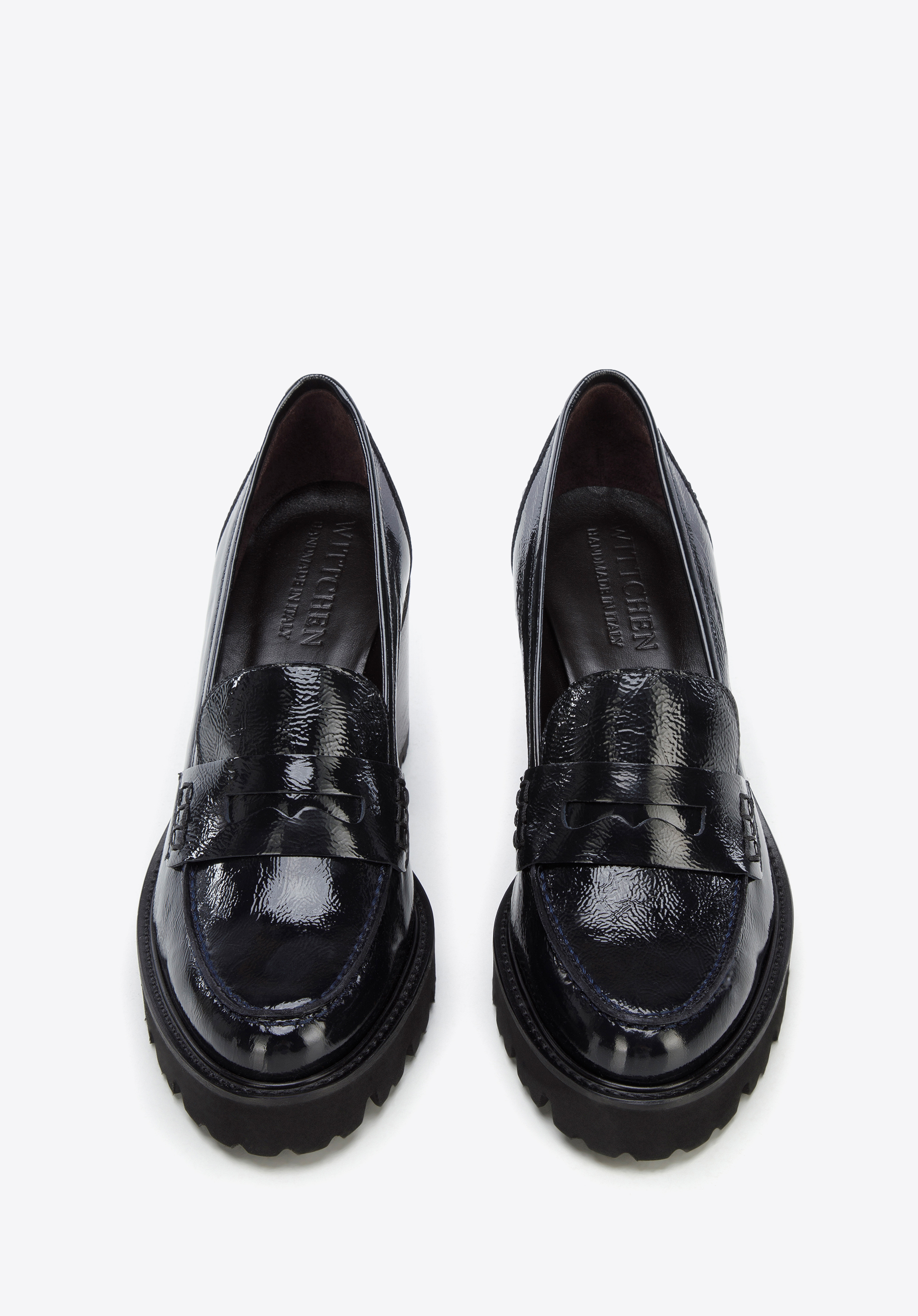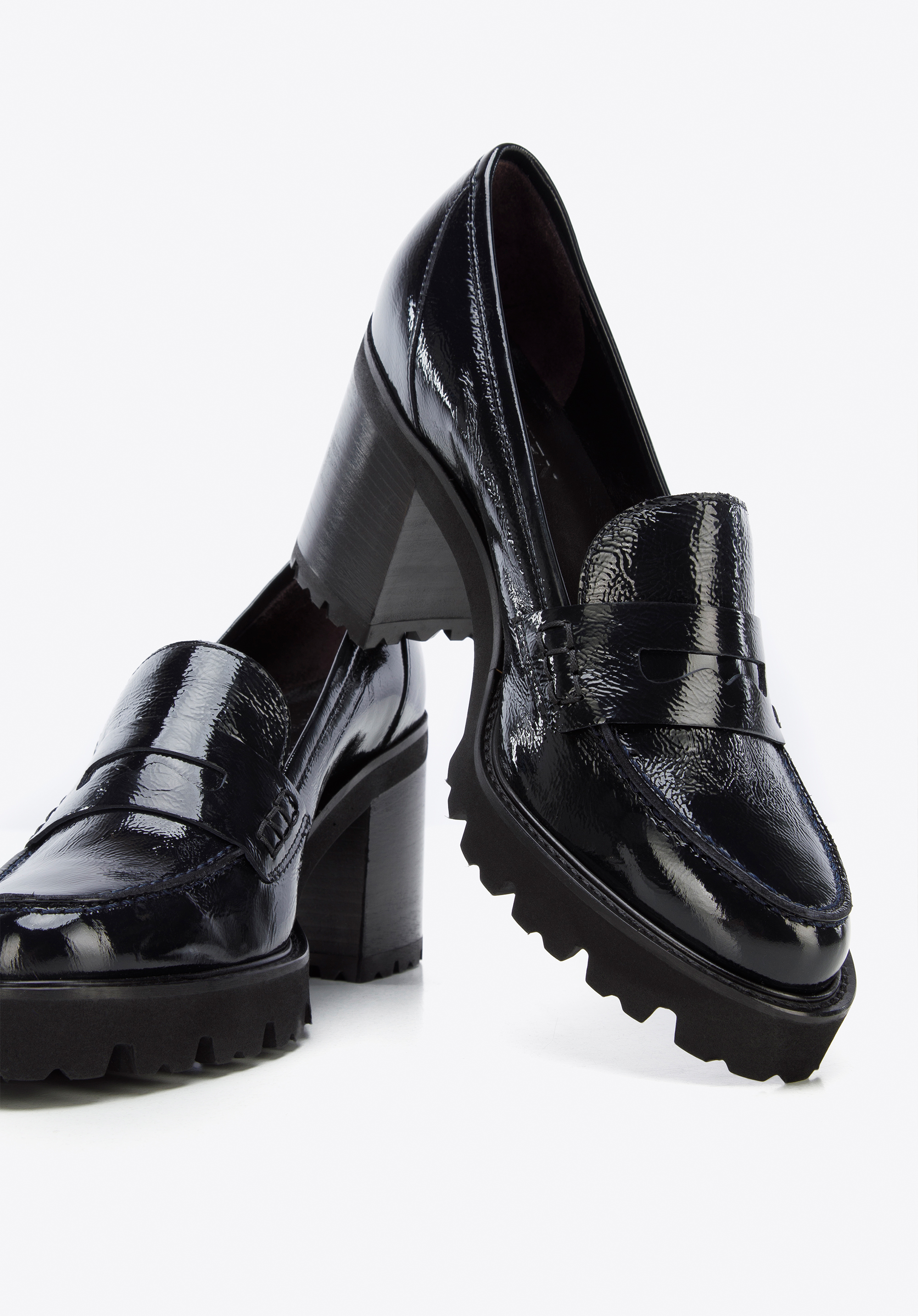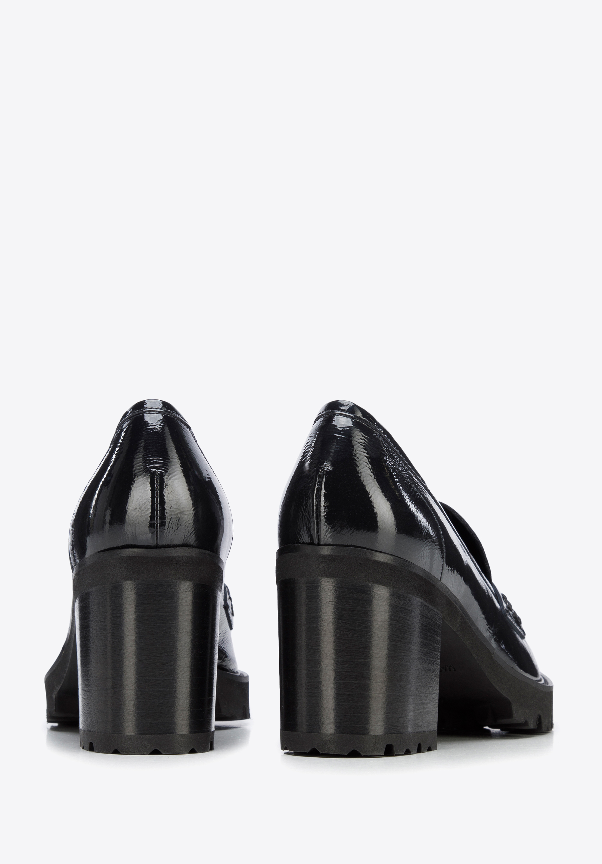 Pantoful din piele lăcuită din pieles pe platformă este un accesoriu la modă cu care puteți merge în fiecare zi.