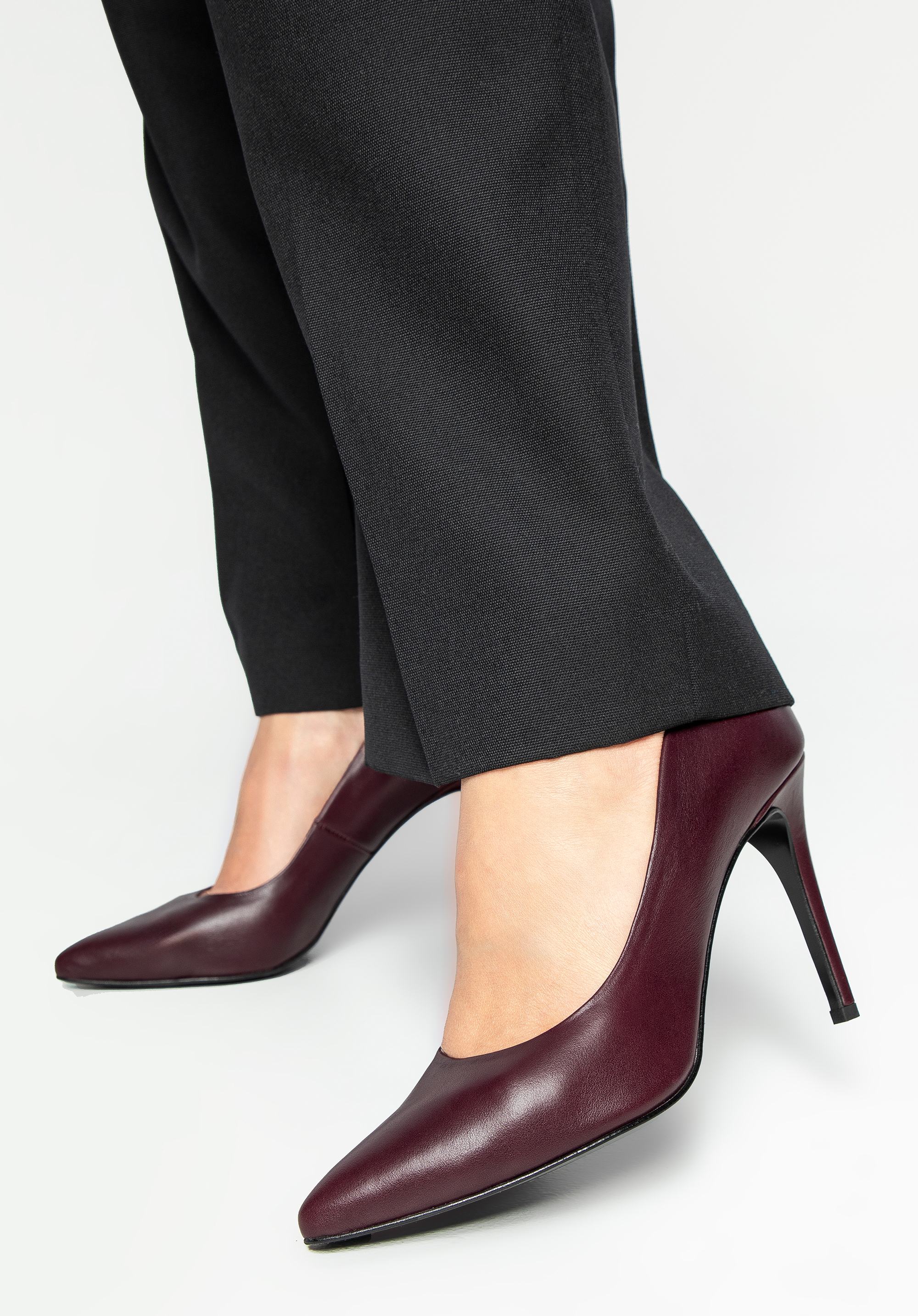 Pantofi cu tocuri clasice din piele Culoare: grena