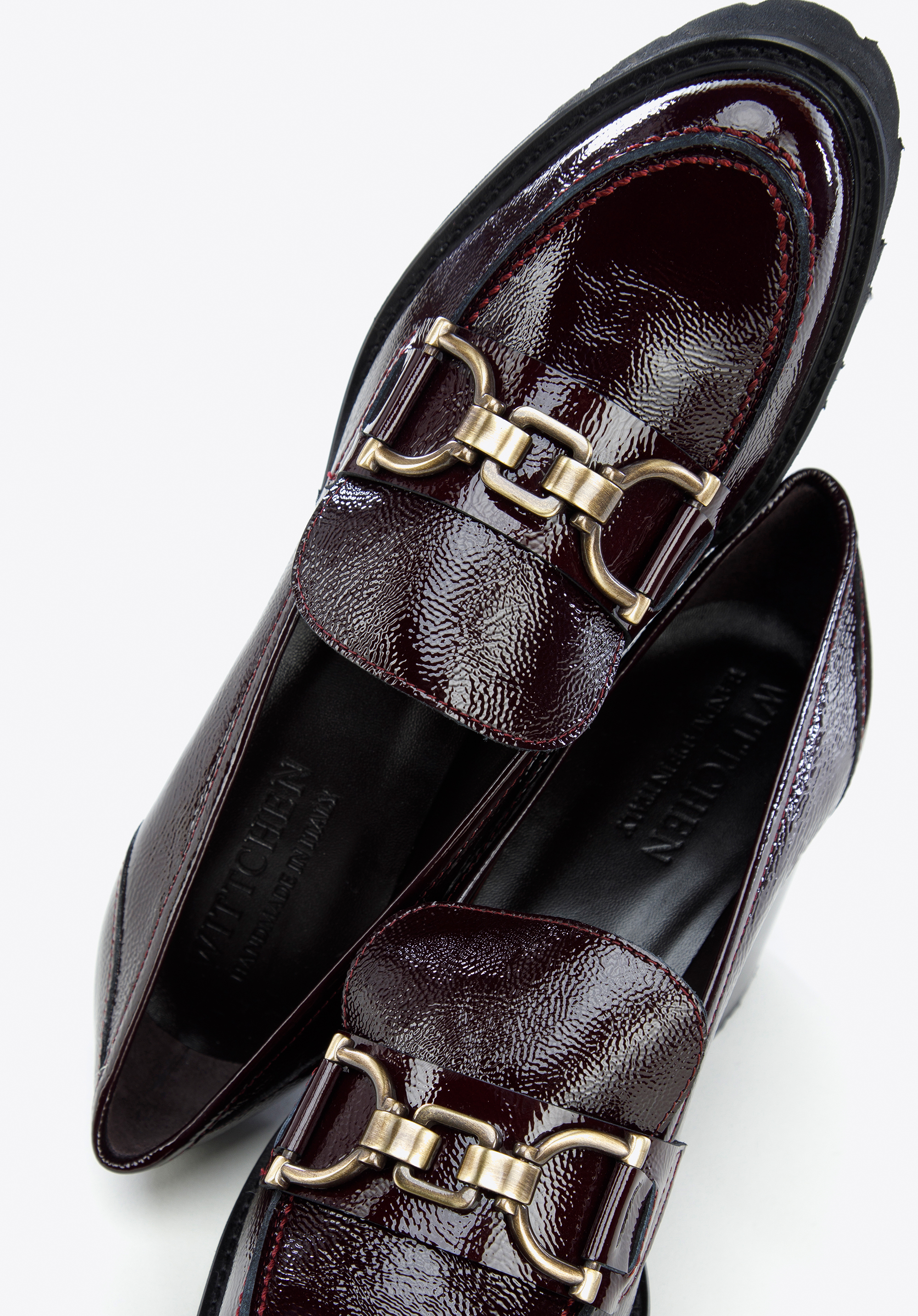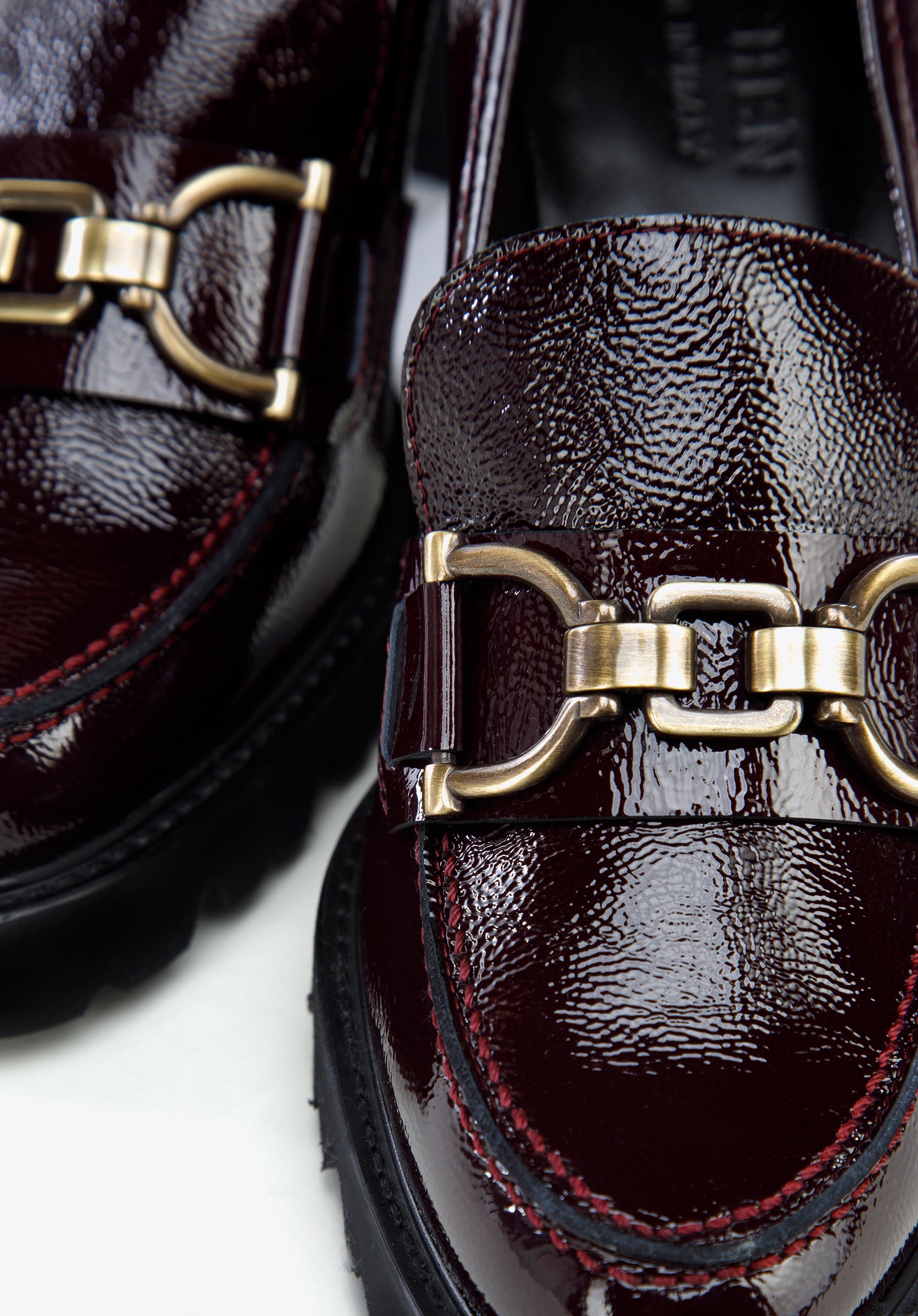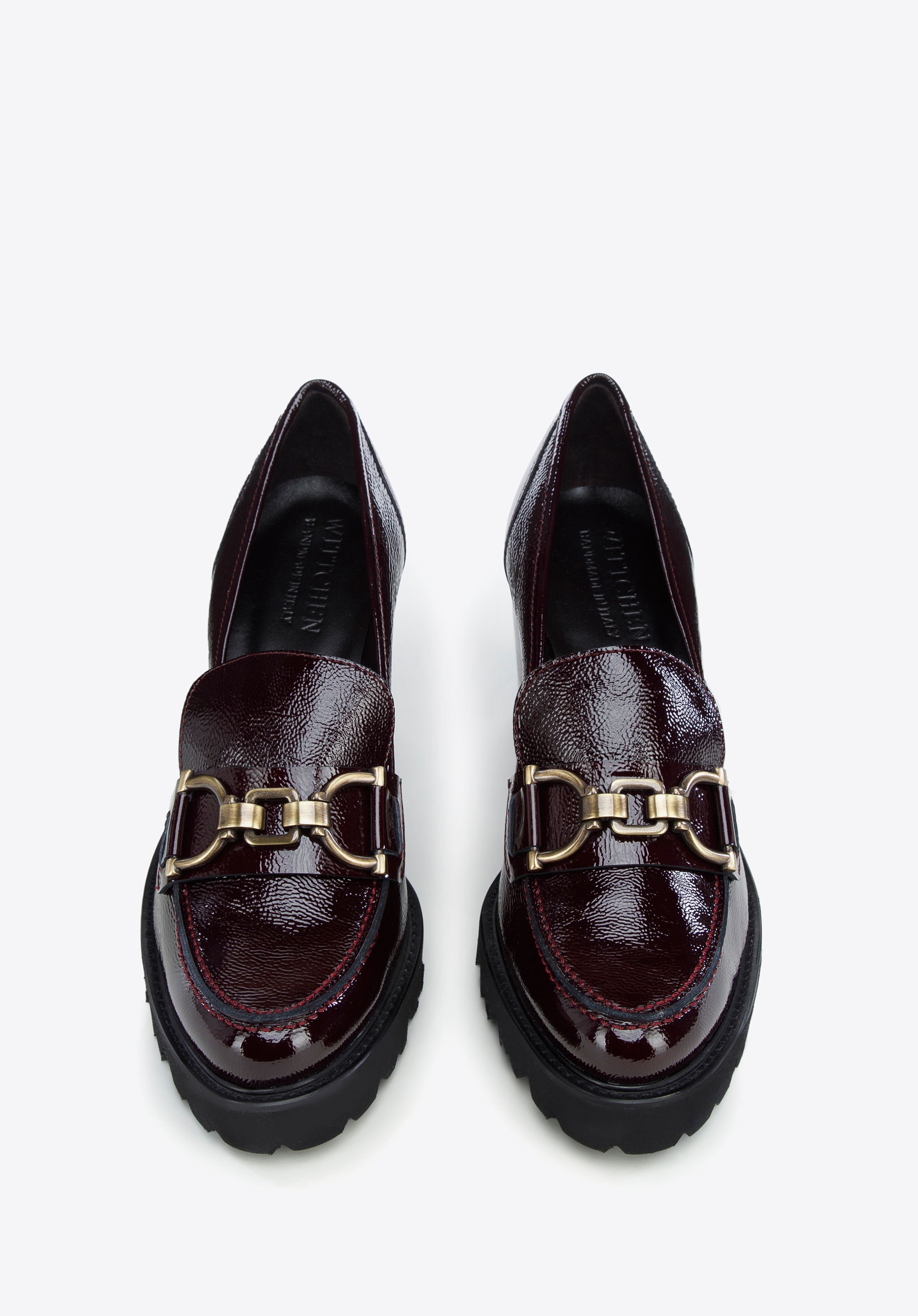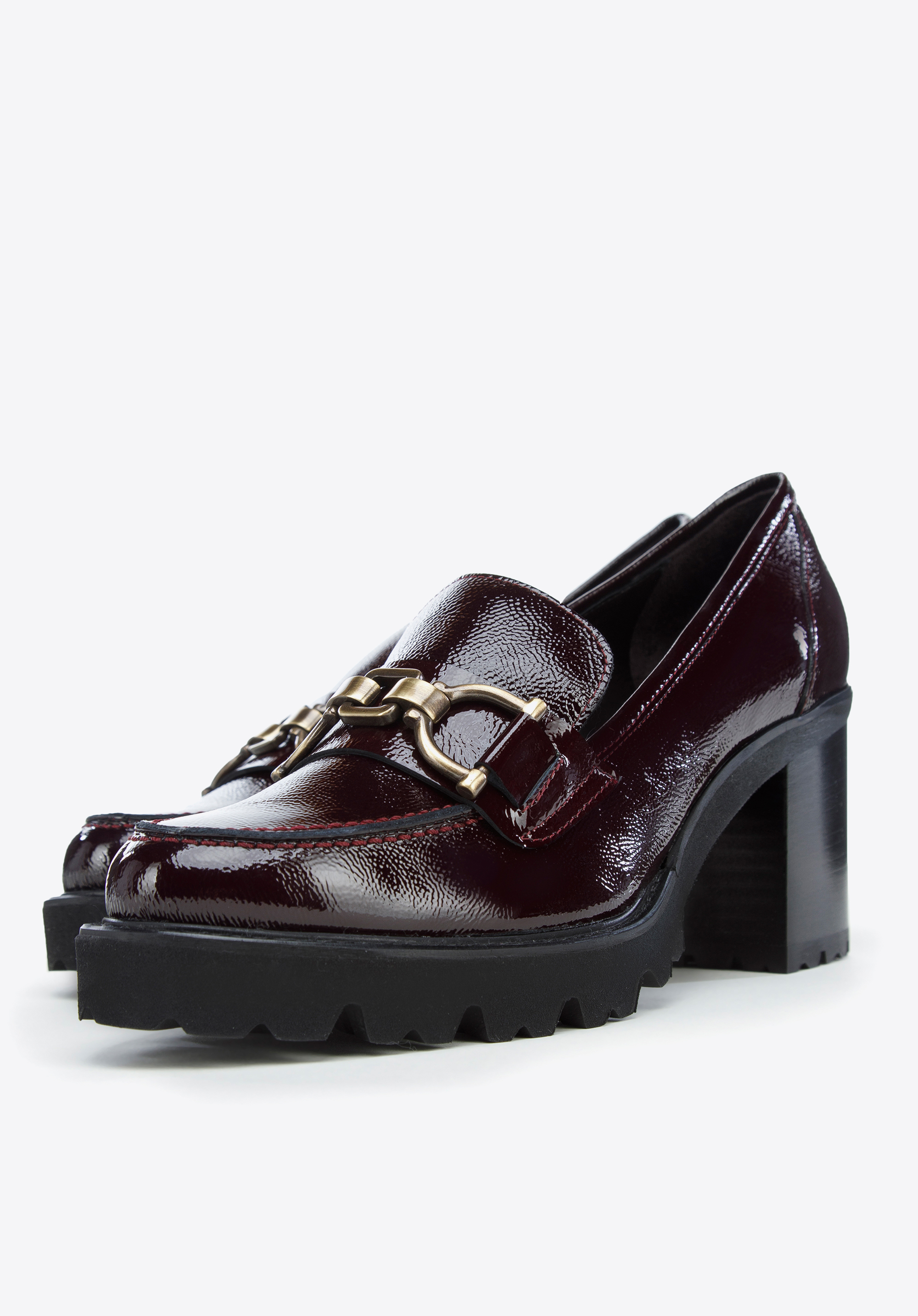 Pantofi piele întoarsă cu cataramă pe toc înalt grena închis