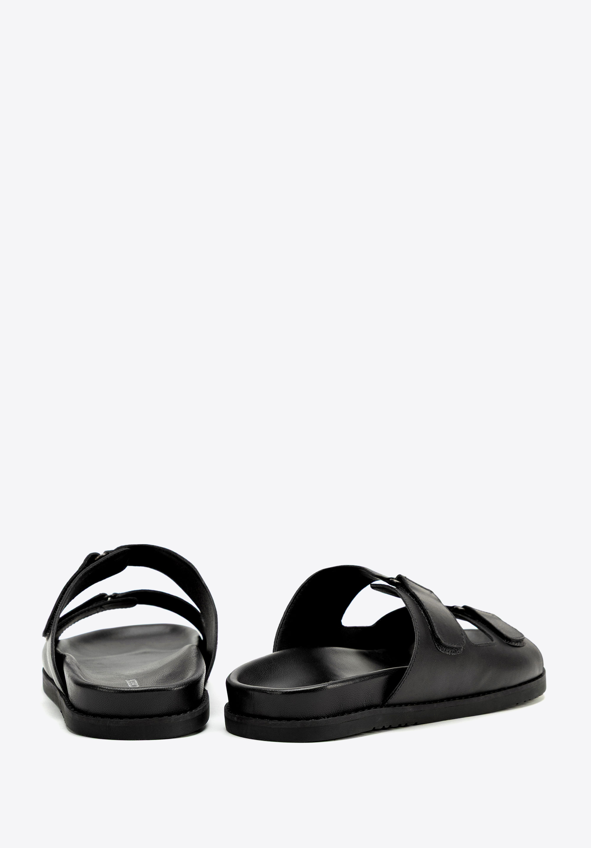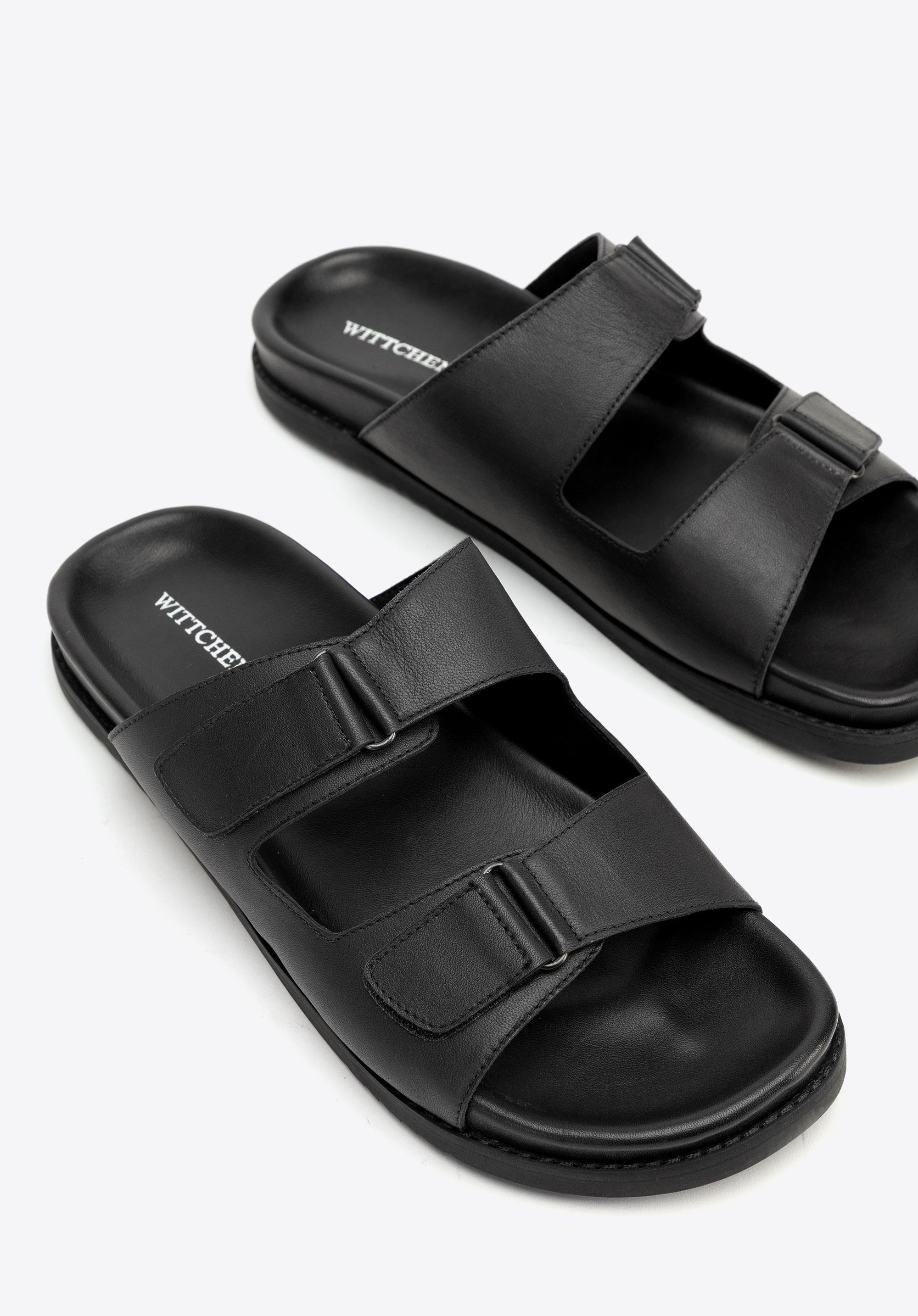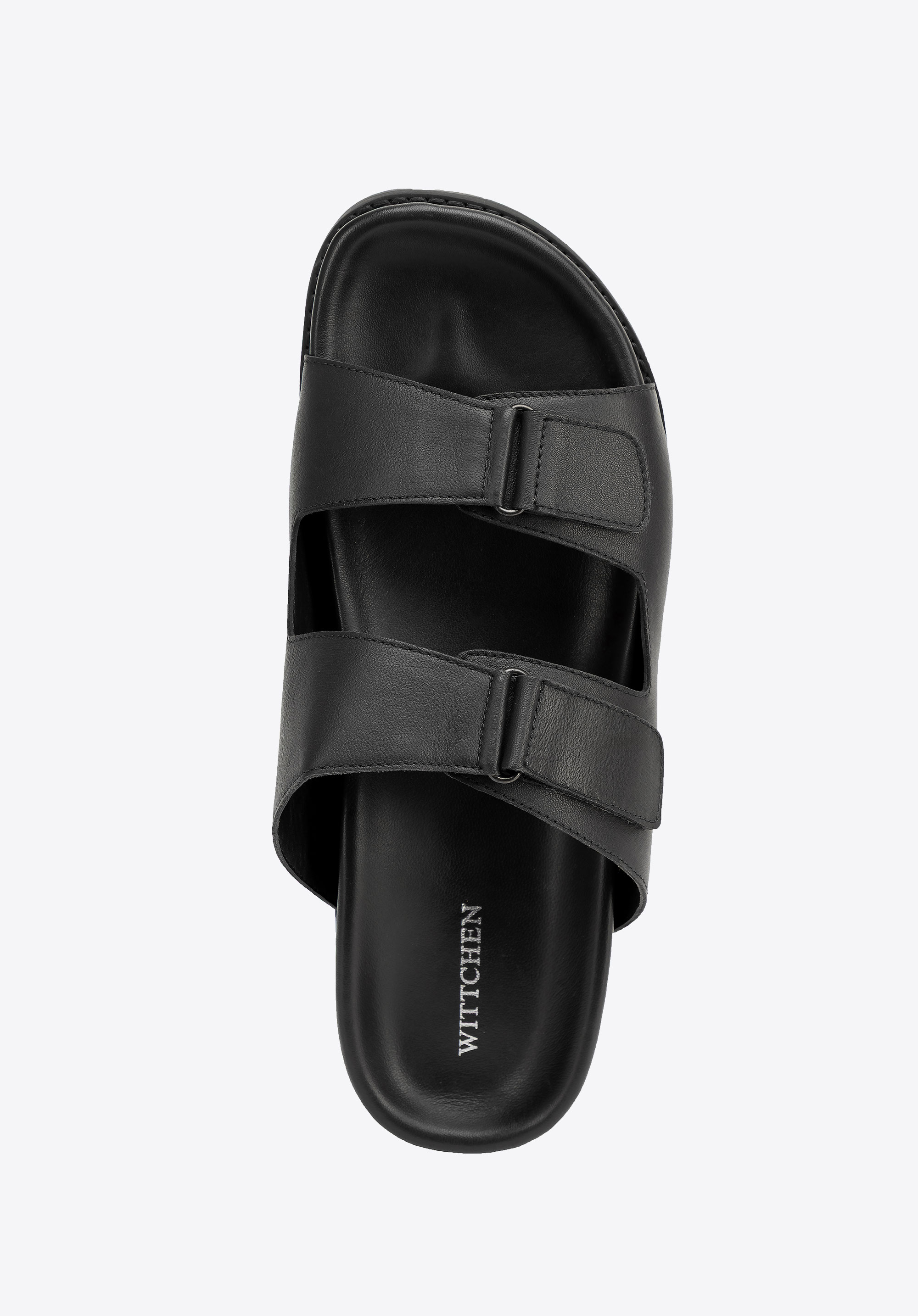 Un design simplu care spune totul. Acești papuci pentru bărbați sunt esența confortului și a stilului într-o variantă modernă. Realizați din piele naturală de oaie de înaltă calitate – atât la exterior, cât și la interior – oferă o senzație deosebită de finețe și confort la purtare. Cele două barete paralele cu închidere cu arici oferă un aspect minimalist și curat, dar și o utilizare rapidă și comodă.