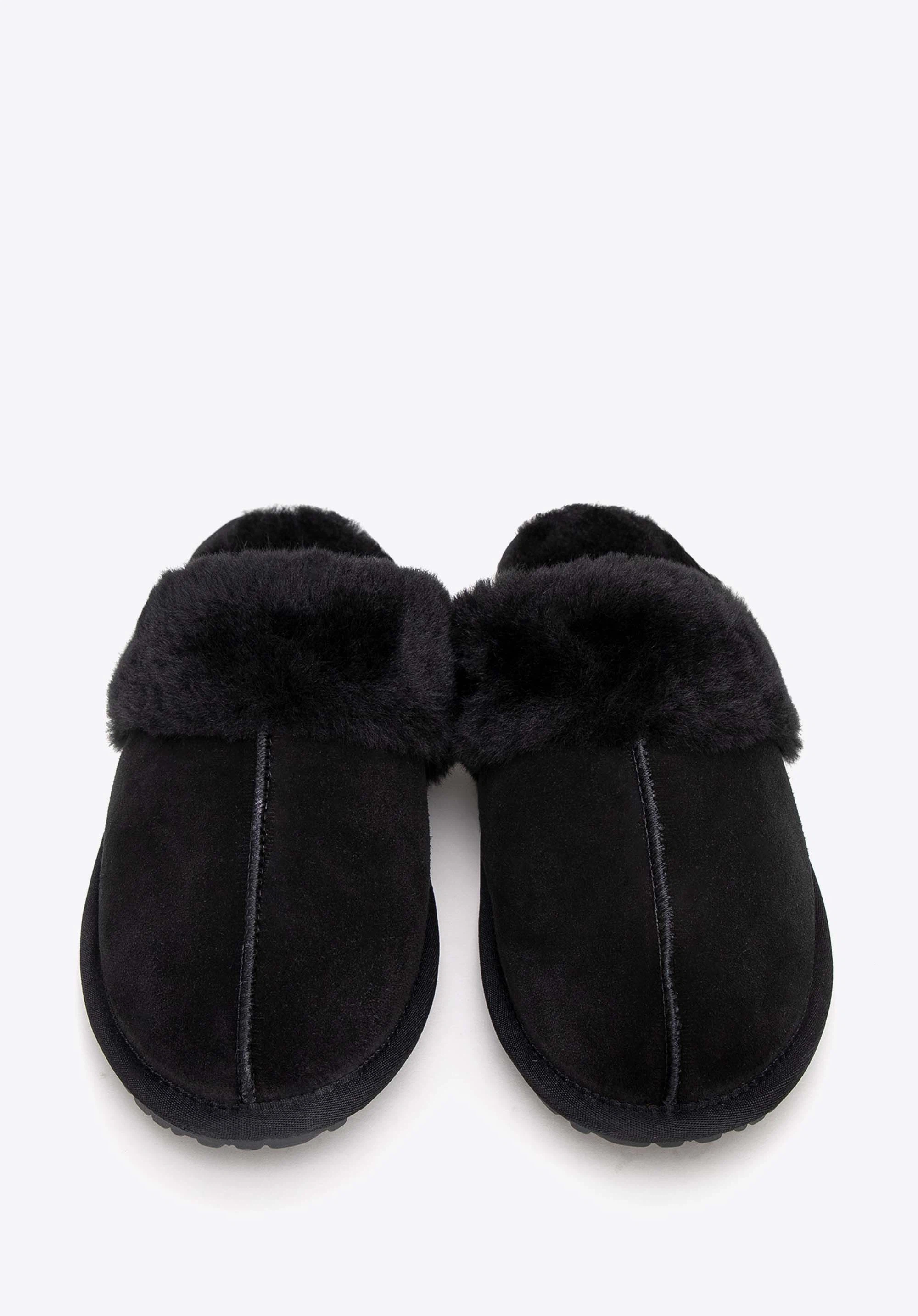Descoperă acești papuci șic pentru femei, confecționați din piele și lână de înaltă calitate. Partea superioară moale din piele de căprioară, împodobită cu un ornament din blană de lână, îmbină eleganța cu confortul. Interiorul, căptușit cu lână moale, asigură căldură și confort de purtare de neegalat. Acești papuci unici de damă, cu vârf rotund, prezintă cusături decorative în centru și un ornament de blană, creând un aspect distinctiv. Acesti papuci extraordinari sunt combinația perfectă de confort și stil, ideali pentru zilele mai răcoroase.