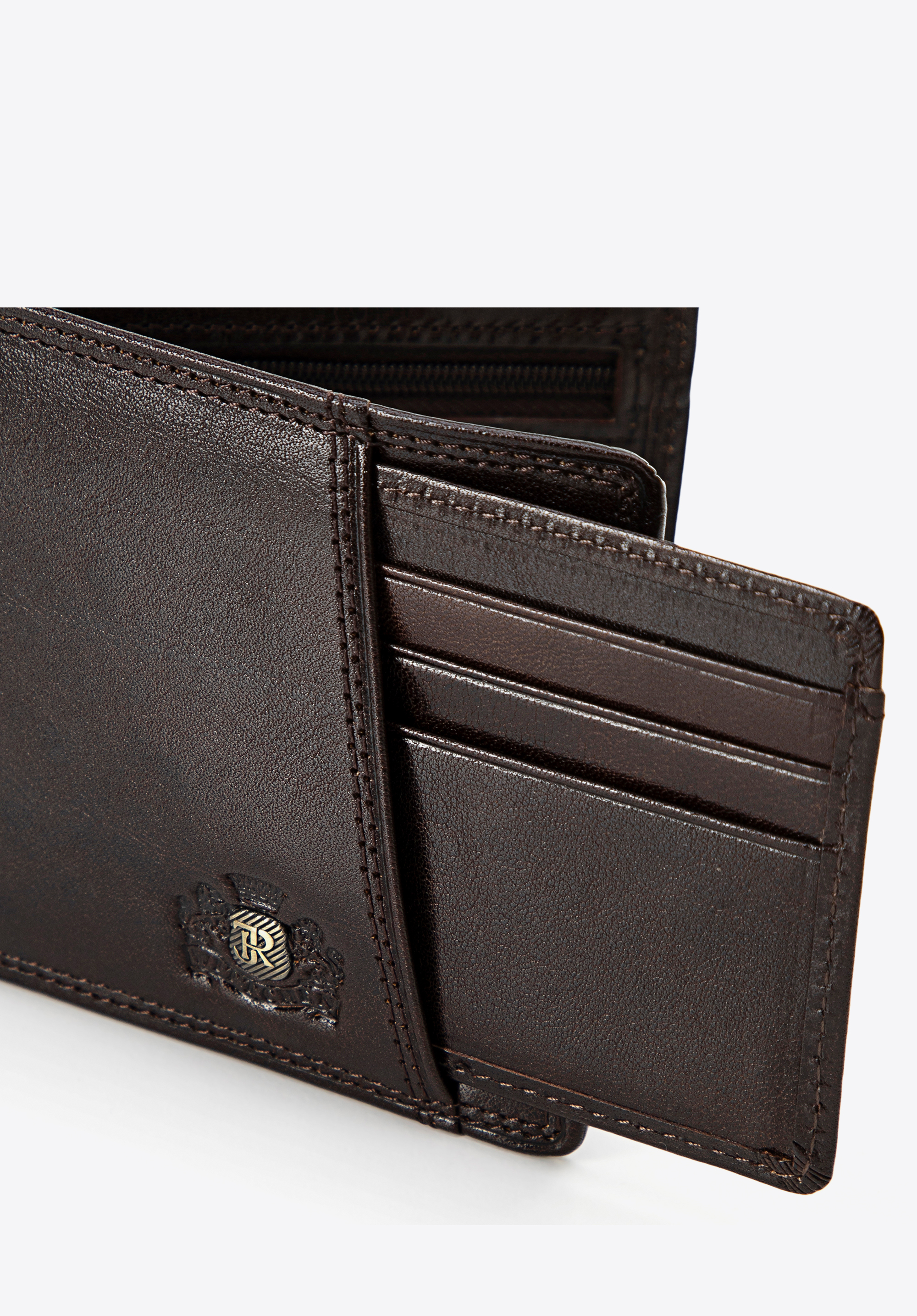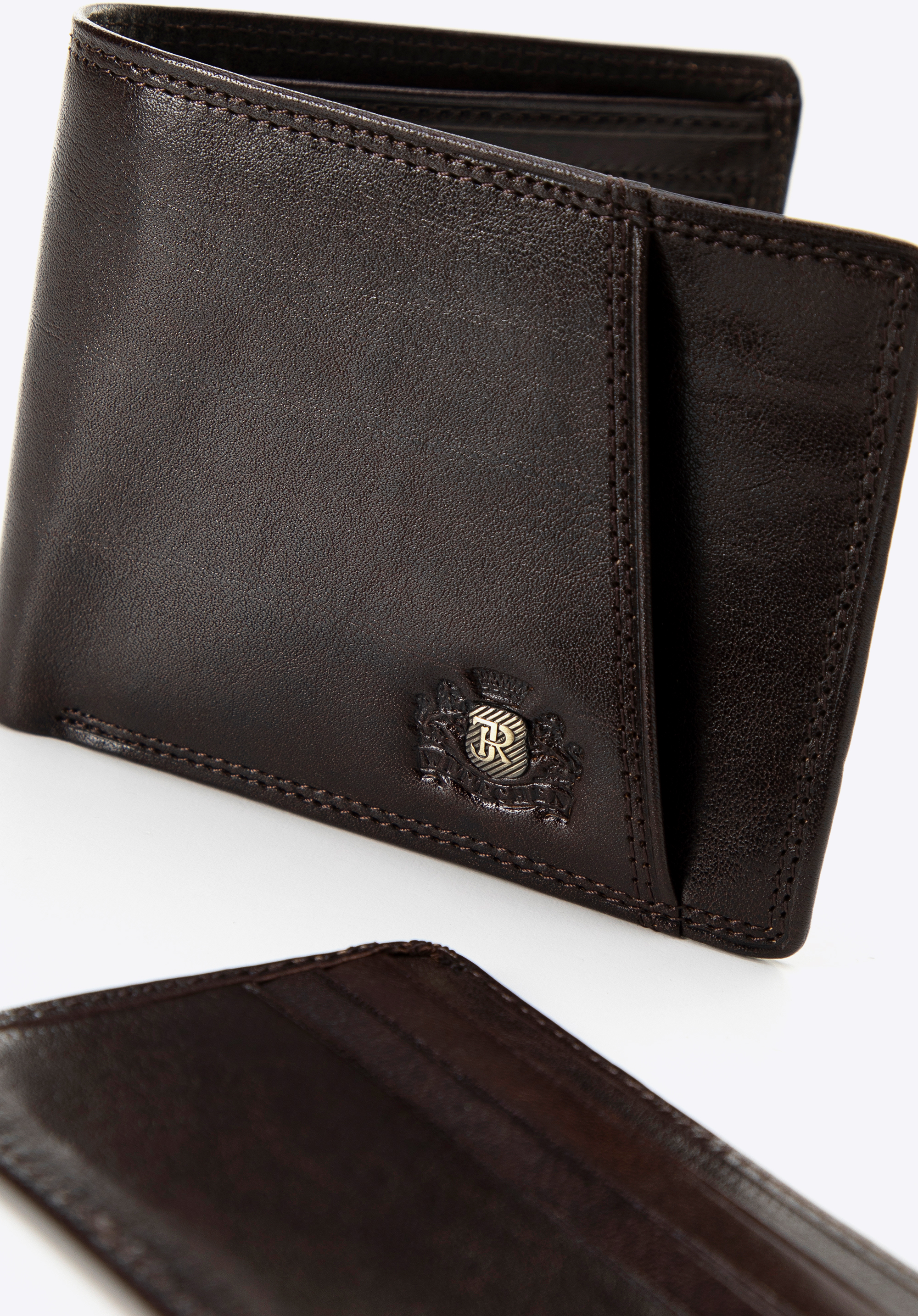 Eleganță, funcționalitate și cea mai înaltă calitate - acestea sunt caracteristicile definitorii ale portofelului pentru bărbați din colecția Da Vinci. Realizat din piele naturală, portofelul impresionează printr-o strălucire subtilă, subliniindu-i caracterul exclusivist. Partea frontală prezintă un logo sub formă de inițiale înconjurate de un scut din aur vechi, reliefat pe o stemă elegantă, conferindu-i un stil unic.