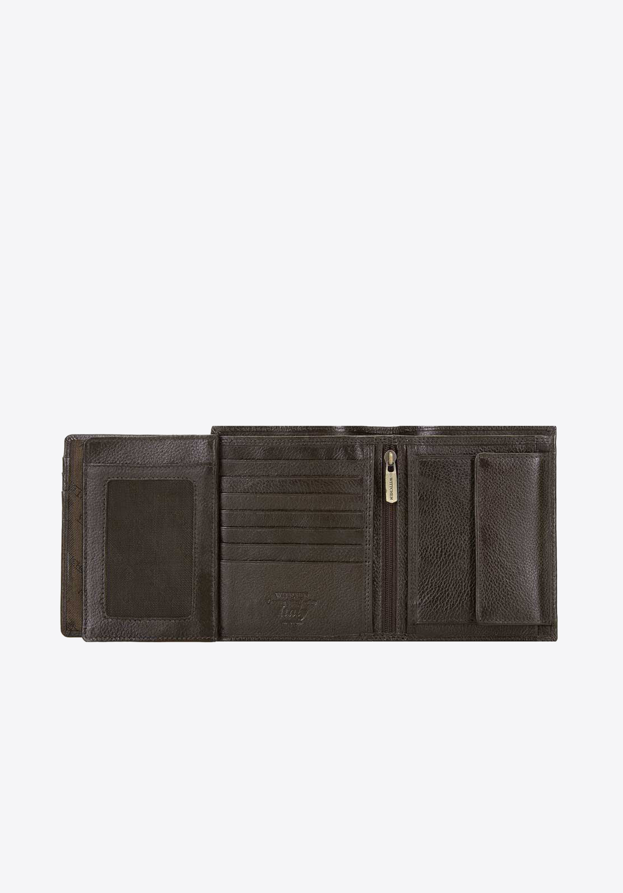 Acest portofel mare din piele va fi pe placul iubitorilor de clasic. Se va potrivi perfect cu stilul dvs. indiferent dacă purtați o ținută elegantă sau mai degrabă casual. Lipsa închiderii înseamnă că puteți scoate rapid ceea ce aveți nevoie din interior. Acest portofel pentru bărbați poate conține carduri, bancnote, monede și documente. În interior, are două buzunare pentru bancnote, un buzunar pentru monede cu închidere la clic, unsprezece fante pentru carduri și șase buzunare suplimentare, dintre care trei sunt transparente - perfecte pentru fotografii ale celor dragi sau bilete - și unul cu fermoar. Interiorul său este căptușit cu RFID pentru a vă proteja cardurile de scanare.