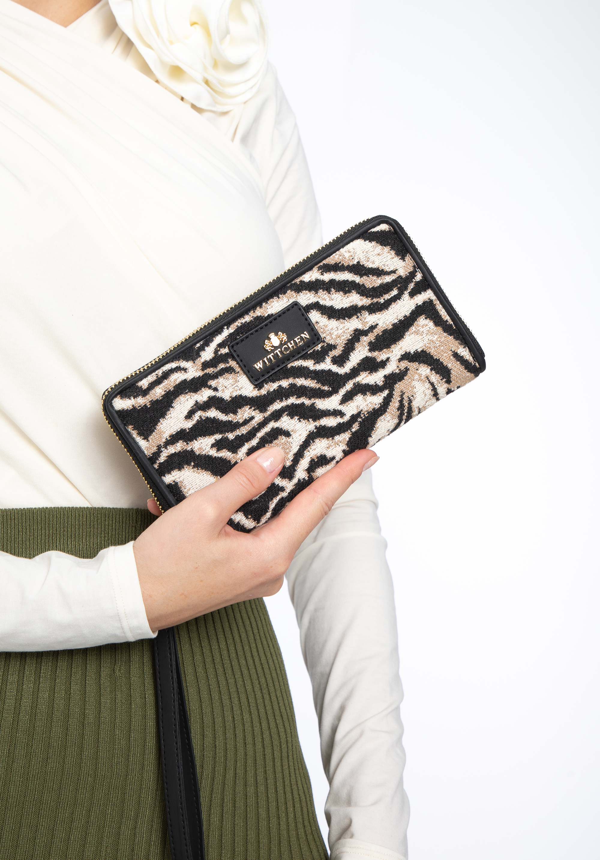 Portofel elegant pentru femeile care doresc să urmeze ultimele tendințe în modă. Aducerea unui amestec de culori excepționale și măiestrie rafinată este acest portofel. Fabricat din amestec de bumbac, acest portofel este securizat cu fermoar și are 2 buzunare pentru bancnote, 2 buzunare mari deschise (inclusiv o plasă) și până la 6 sloturi interne pentru carduri de credit. Proiectat cu o căptușeală specială pentru a ajuta la protejarea cipurilor RFID din cardurile dvs. bancare împotriva scanării nejustificate.