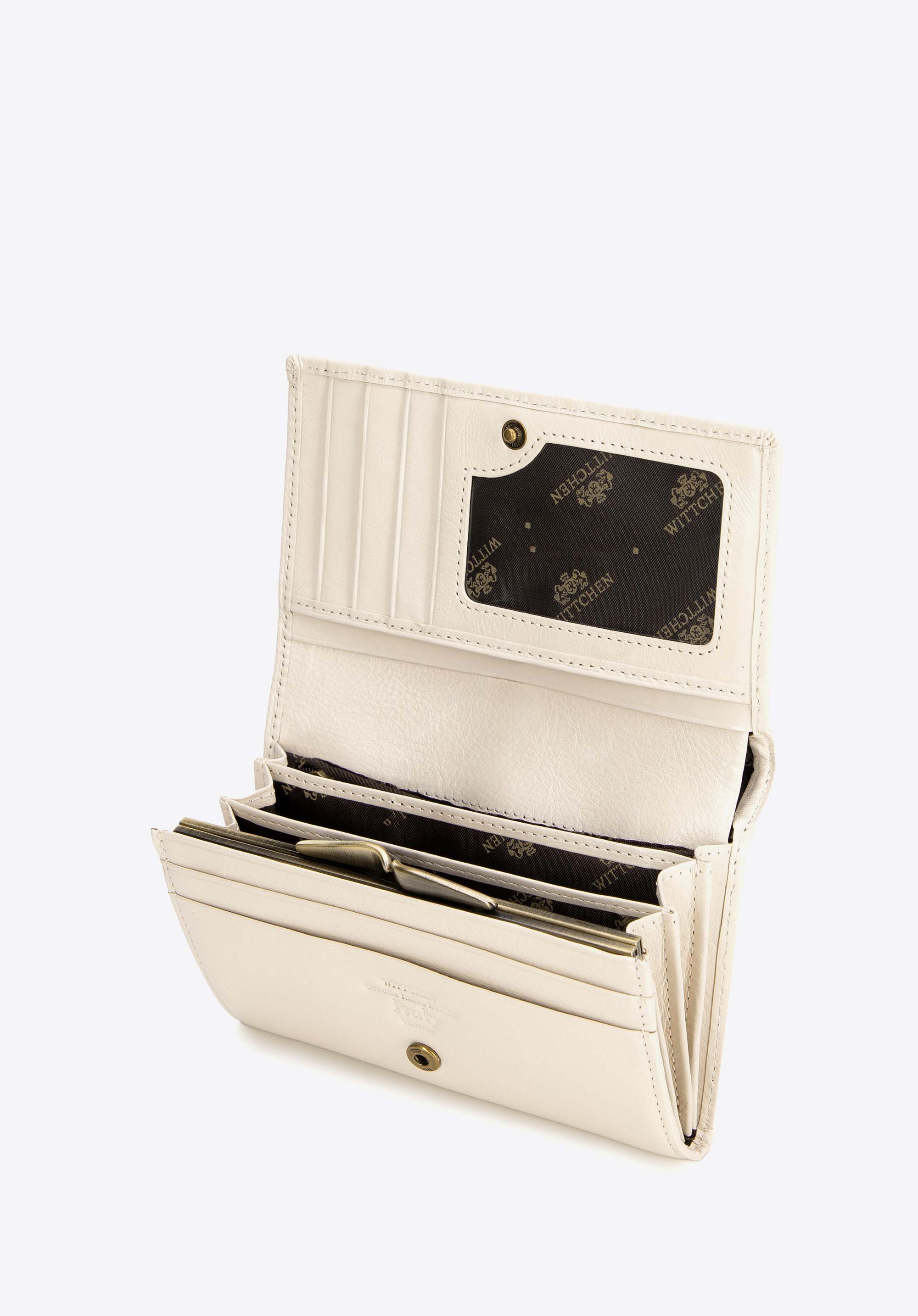 Portmoneu de damă încăpător și elegant, produs cu atenție la detalii din piele moale de vițel. Acest model va satisface așteptările doamnelor care iubesc stilul clasic și soluțiile funcționale.