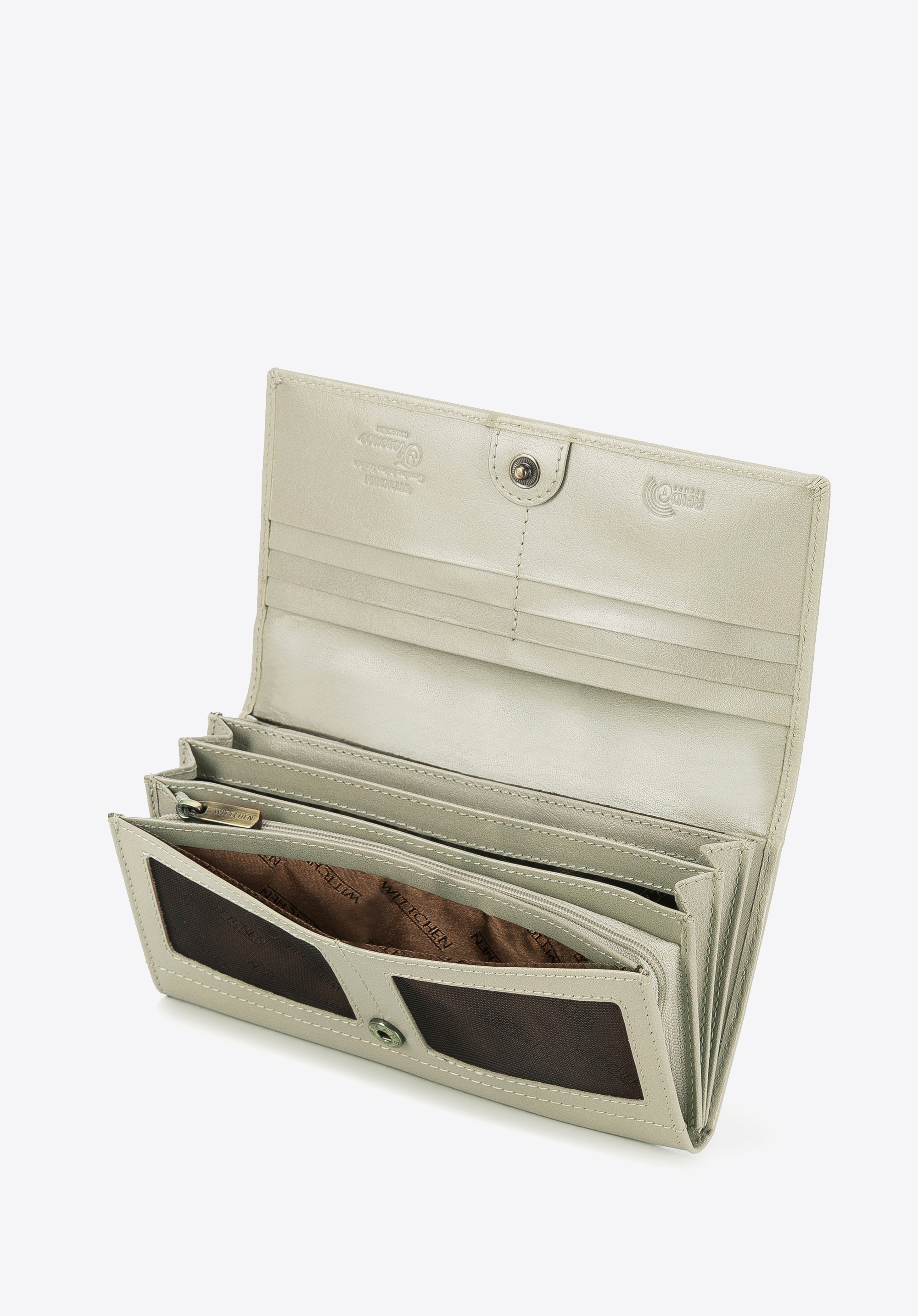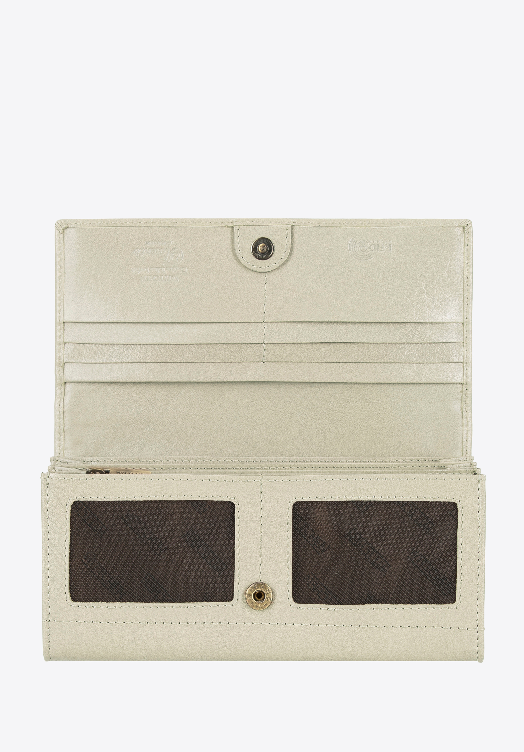 Portofel mare de damă realizat din piele de vițel rezistentă. Se caracterizează printr-un design simplu și o aranjare funcțională a buzunarelor. Dimensiunea mare permite păstrarea certificatul de înregistrare.