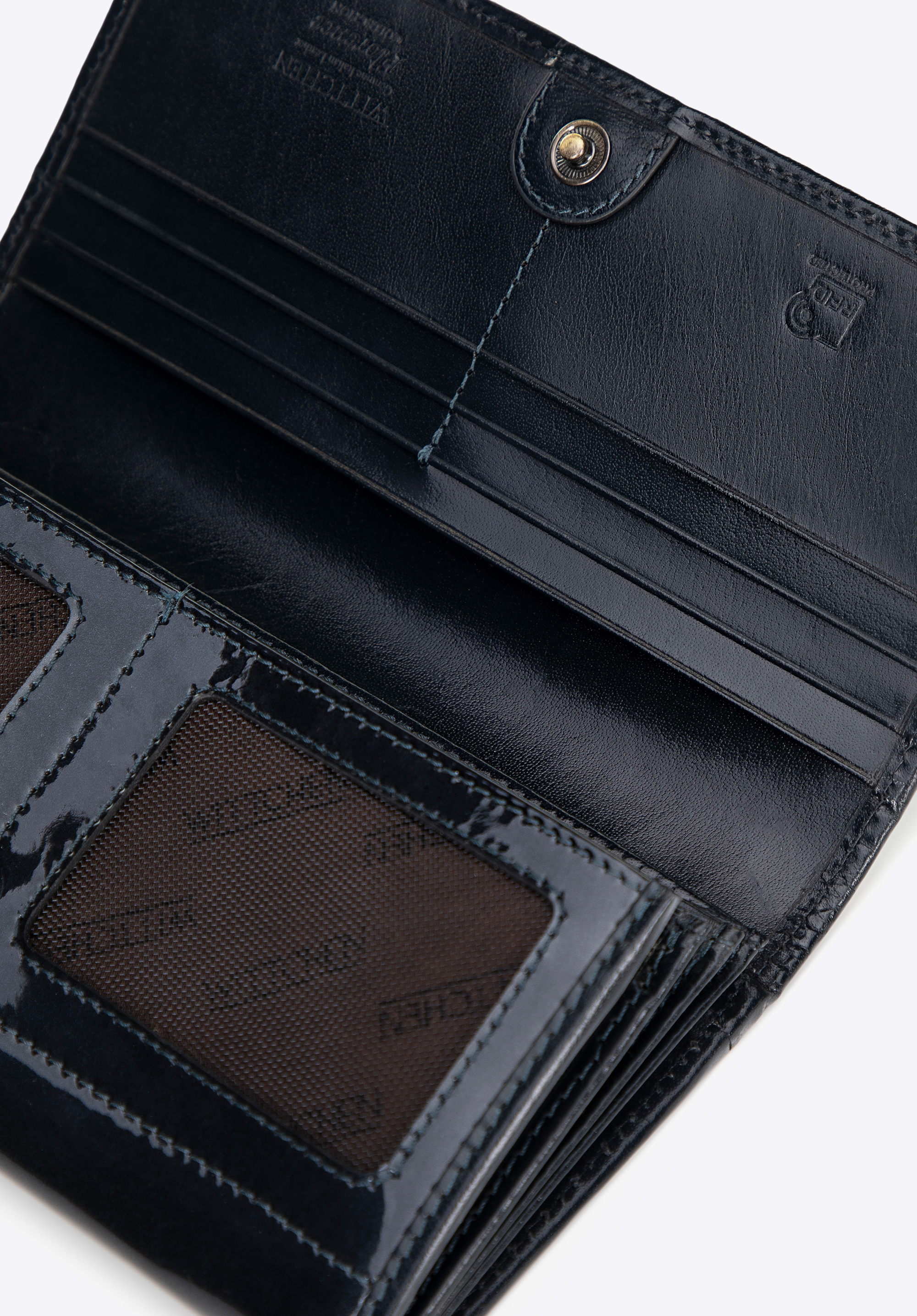 Portofelul de dama elegant si lucios de la WITTCHEN este o alegere perfecta pentru femeia moderna care apreciaza atat stilul cat si functionalitatea. Fabricat din piele naturală lacuita de cea mai înaltă calitate, acest portofel se remarcă prin strălucirea subtilă, conferindu-i un caracter sofisticat. În plus, dispune de o căptușeală inovatoare de blocare RFID , care vă protejează cardurile de scanarea neautorizată pentru o securitate sporită în utilizarea de zi cu zi.