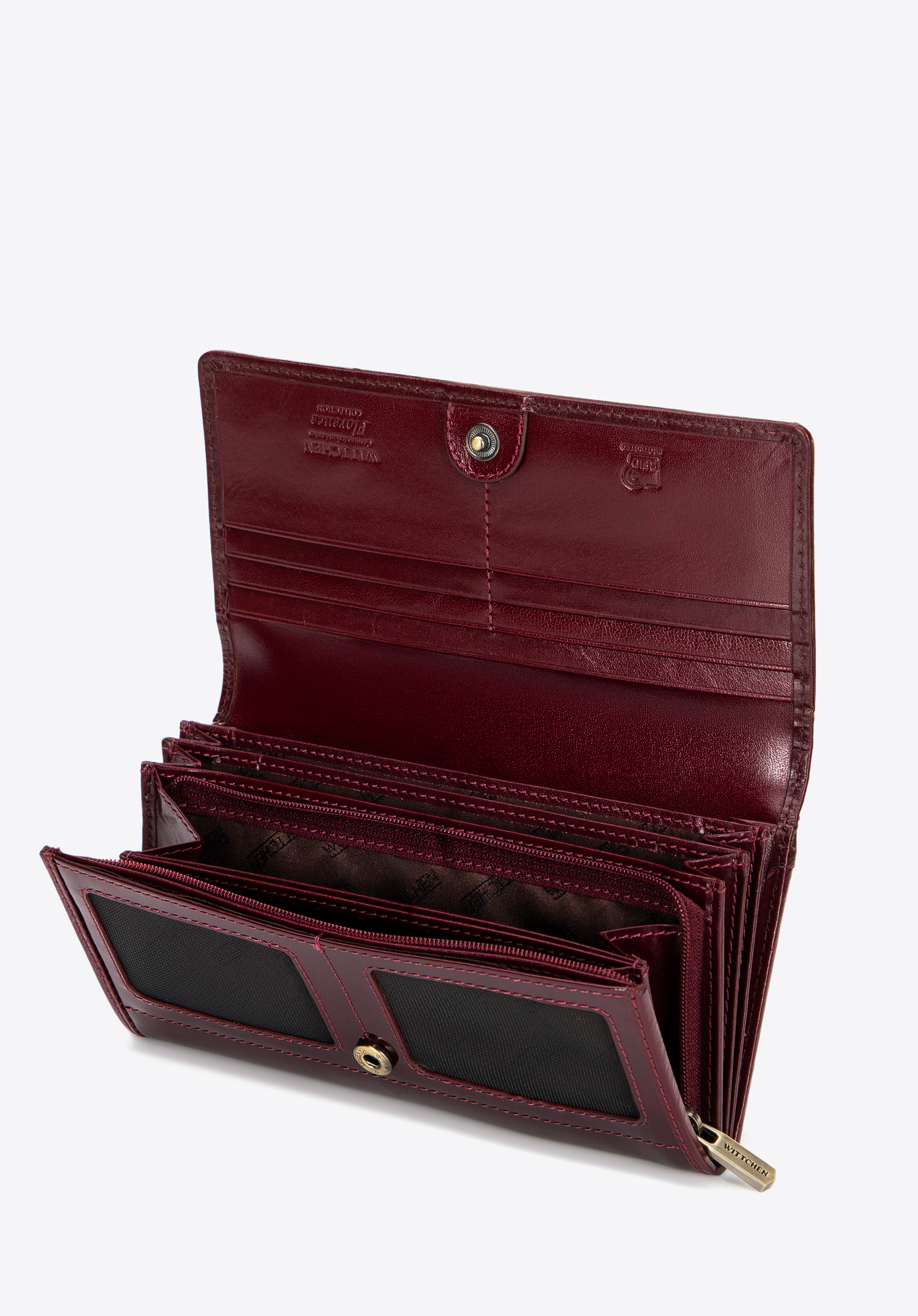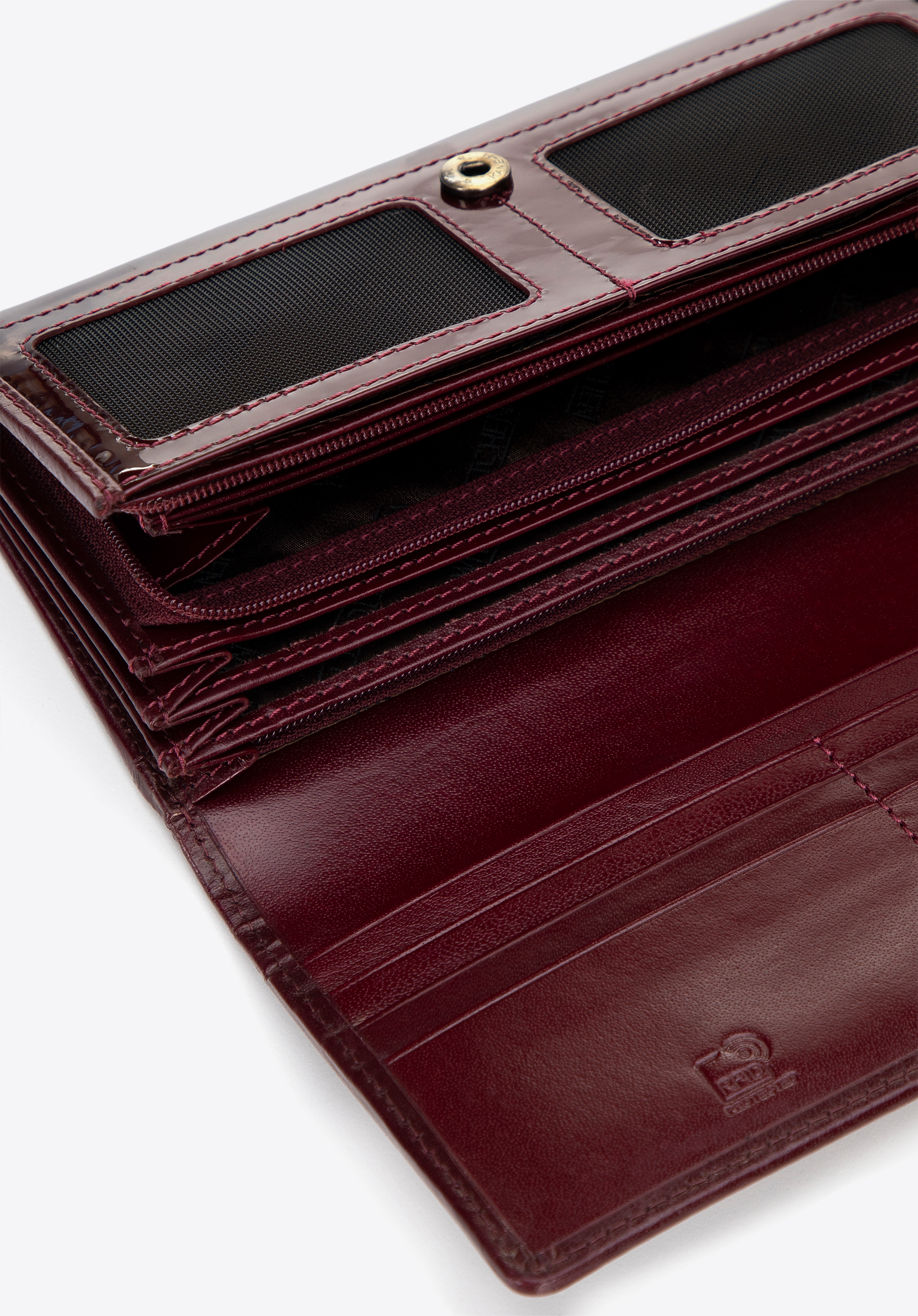 Portofelul de dama elegant si lucios de la WITTCHEN este o alegere perfecta pentru femeia moderna care apreciaza atat stilul cat si functionalitatea. Fabricat din piele naturală lacuita de cea mai înaltă calitate, acest portofel se remarcă prin strălucirea subtilă, conferindu-i un caracter sofisticat. În plus, dispune de o căptușeală inovatoare de blocare RFID , care vă protejează cardurile de scanarea neautorizată pentru o securitate sporită în utilizarea de zi cu zi.