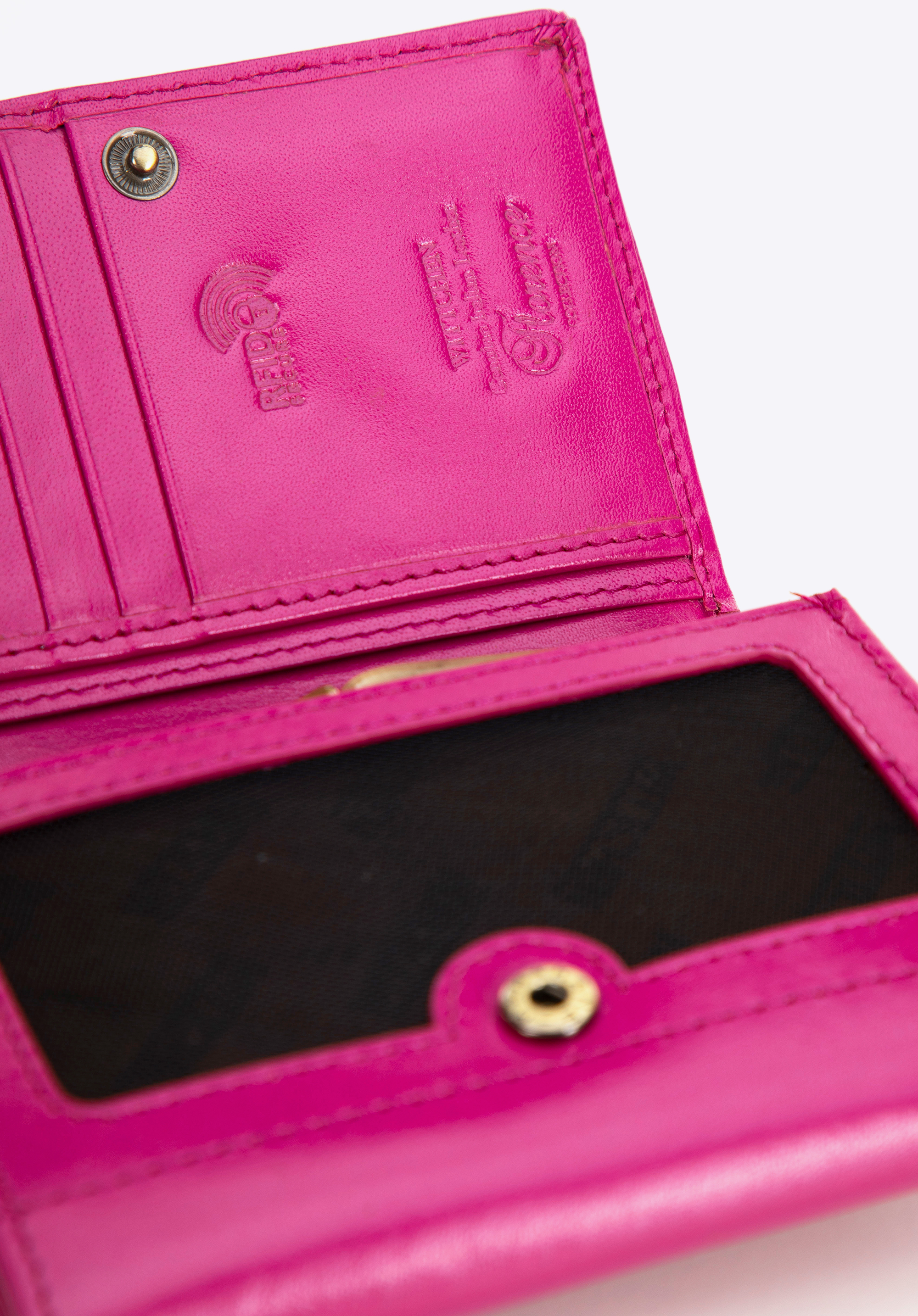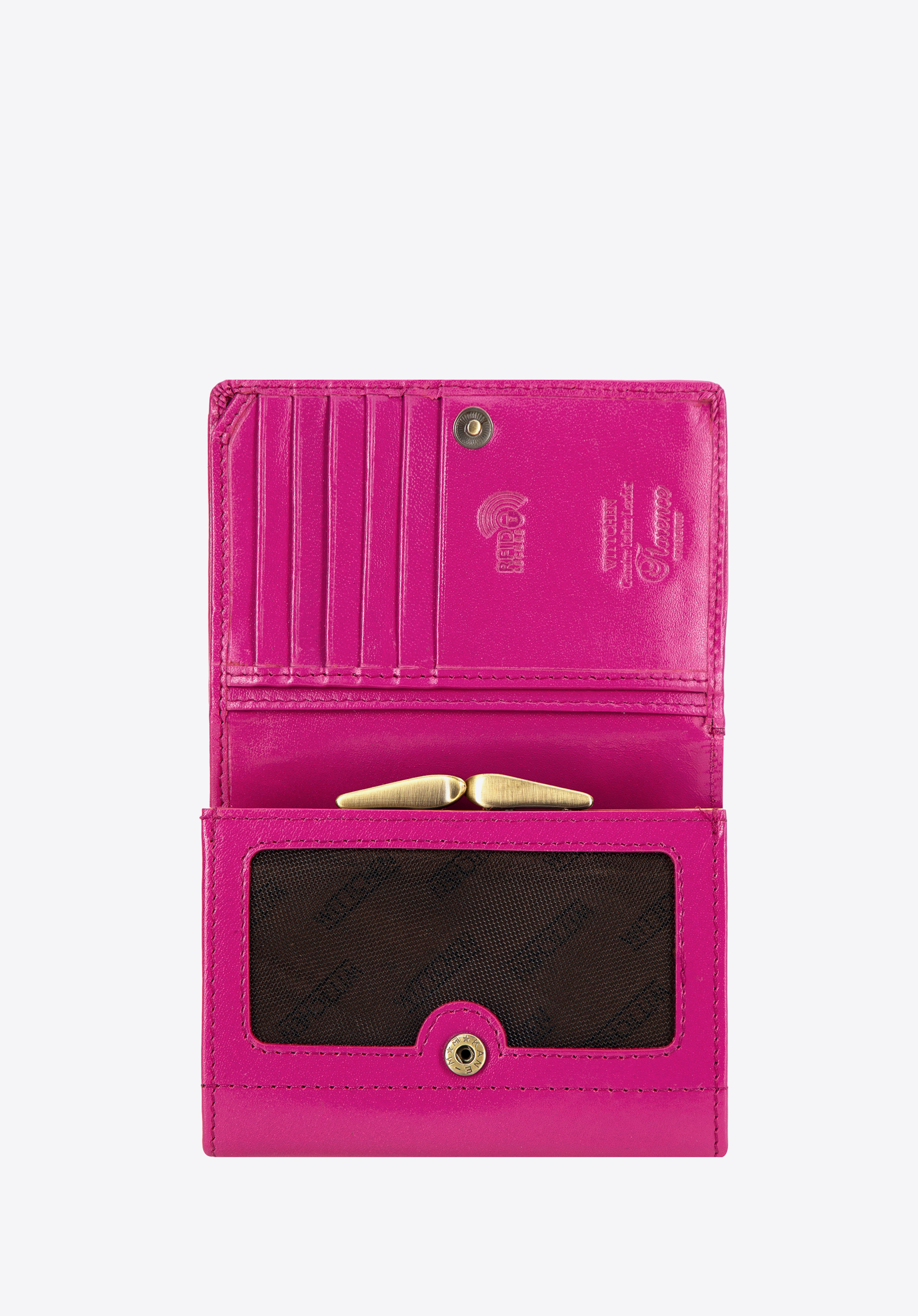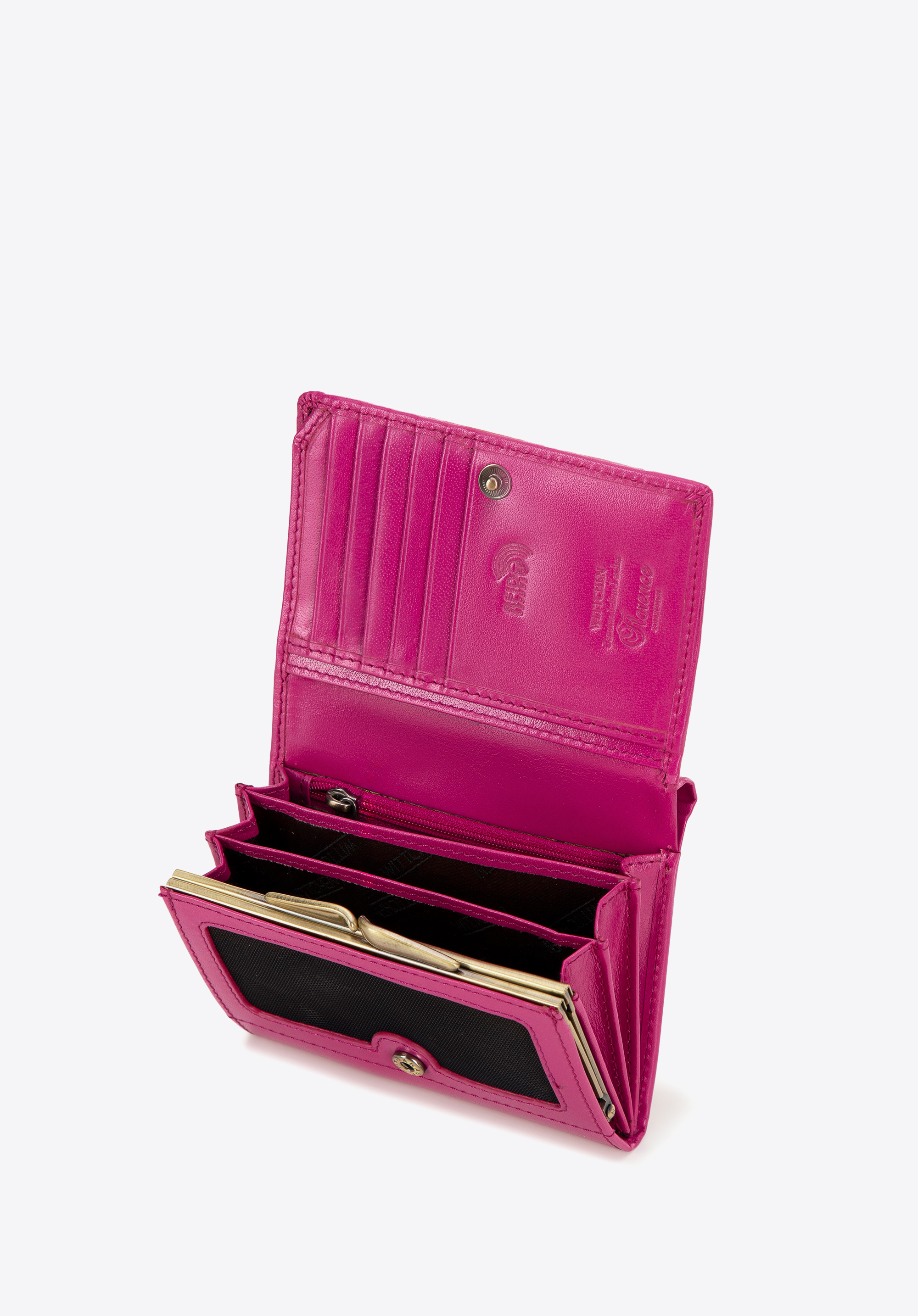 Descoperă portofelul de mărime medie din colecția Florence, ideal pentru femeile care prețuiesc eleganța și funcționalitatea. Confecționat manual din piele moale de vițel și decorat cu logo-ul – blazonul WITTCHEN embosat în piele, acest portmoneu îmbină un design sofisticat cu soluții practice. Oferă un spațiu comod pentru monede, cu închidere tip clemă, buzunar pentru bancnote și numeroase compartimente pentru carduri de credit și alte mici obiecte.