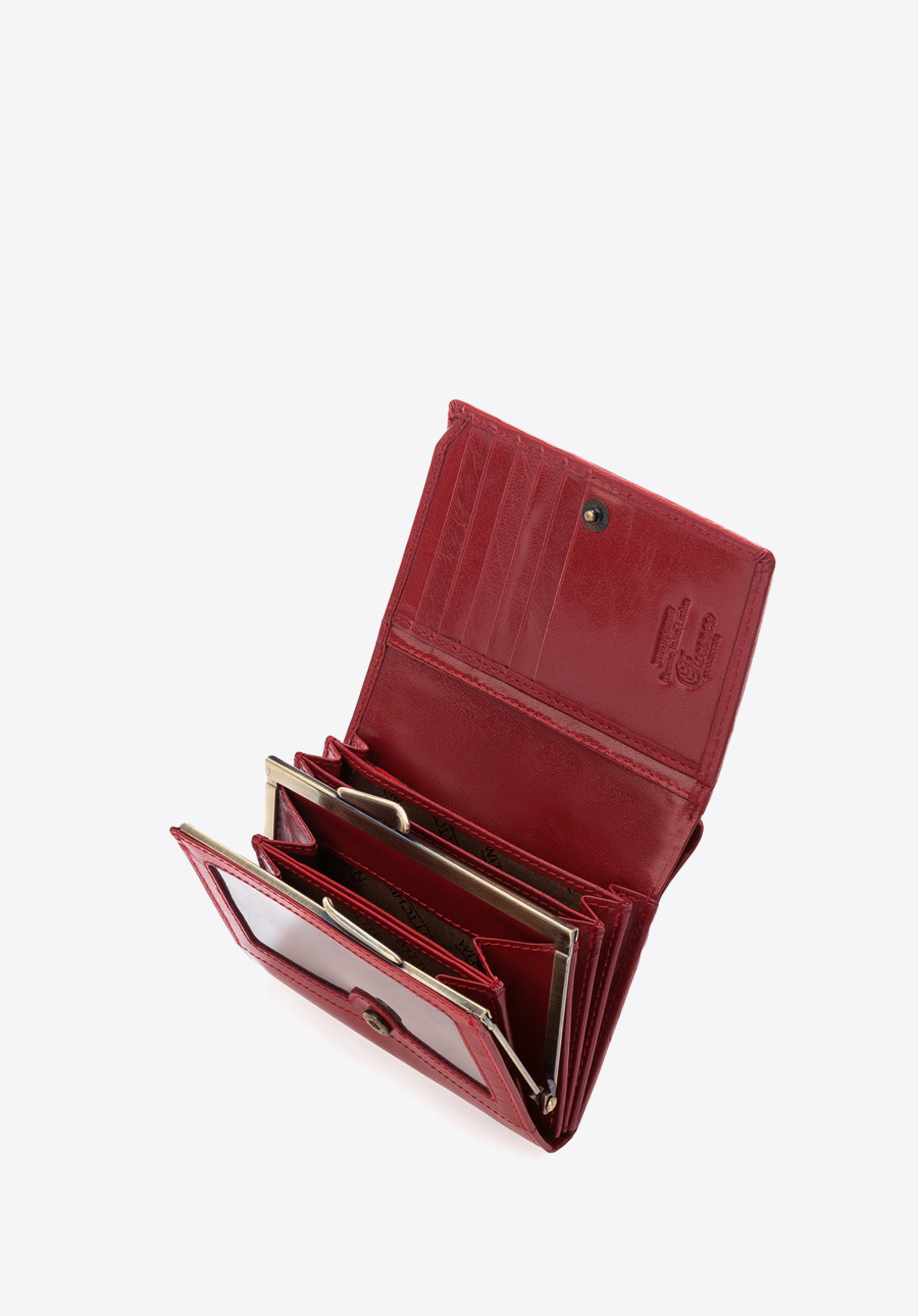 Descoperă portofelul de mărime medie din colecția Florence, ideal pentru femeile care prețuiesc eleganța și funcționalitatea. Confecționat manual din piele moale de vițel și decorat cu logo-ul – blazonul WITTCHEN embosat în piele, acest portmoneu îmbină un design sofisticat cu soluții practice. Oferă un spațiu comod pentru monede, cu închidere tip clemă, buzunar pentru bancnote și numeroase compartimente pentru carduri de credit și alte mici obiecte.