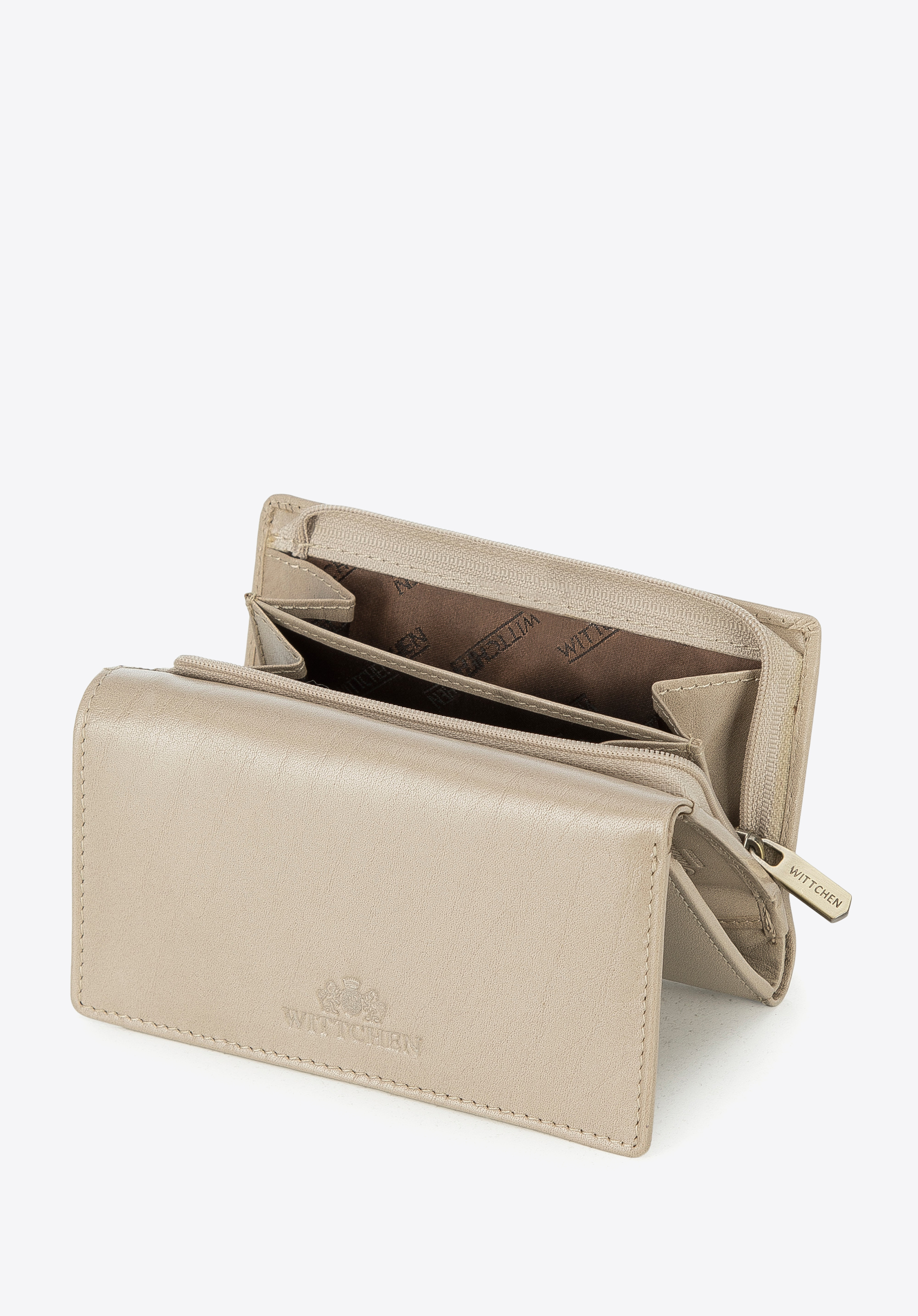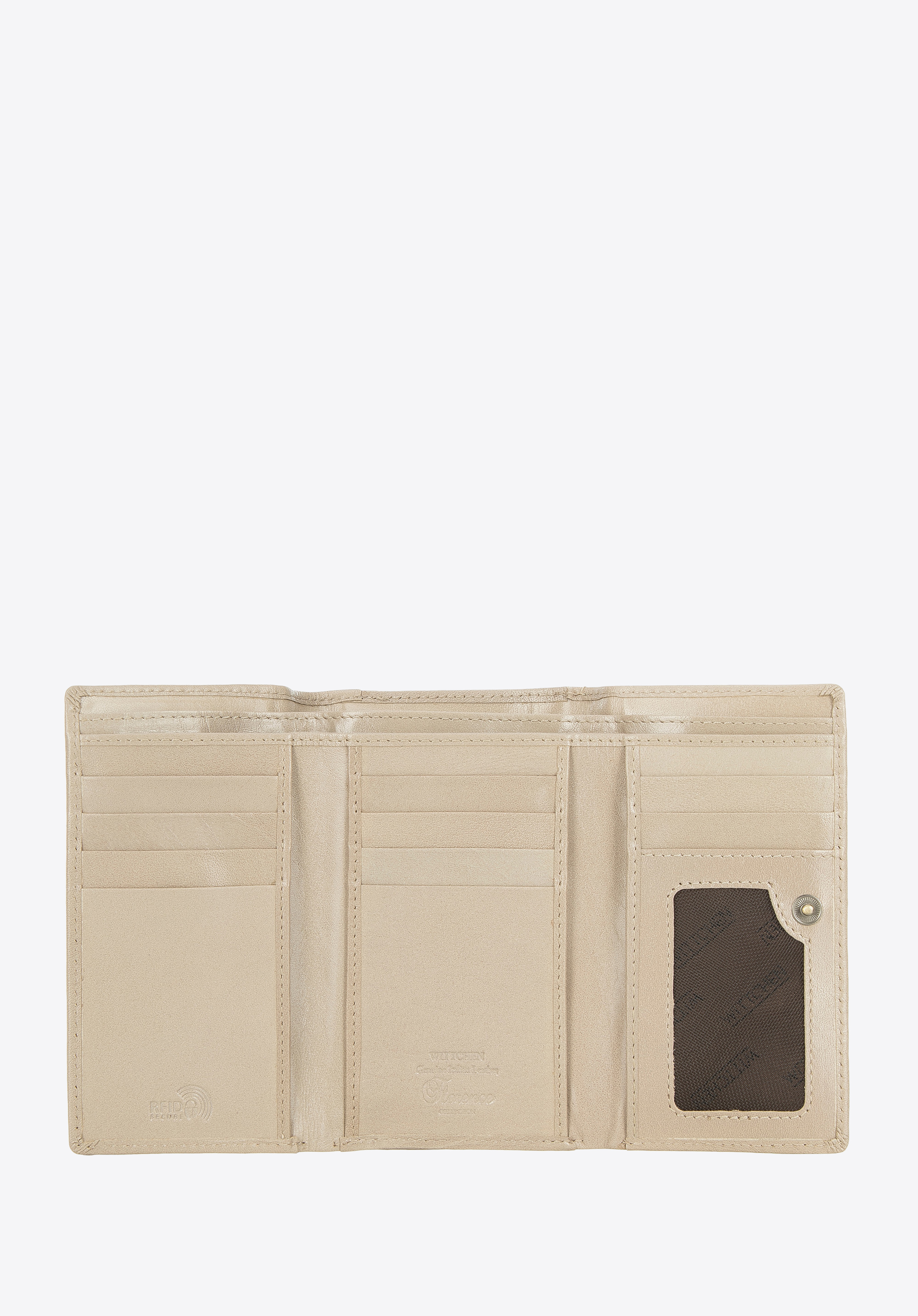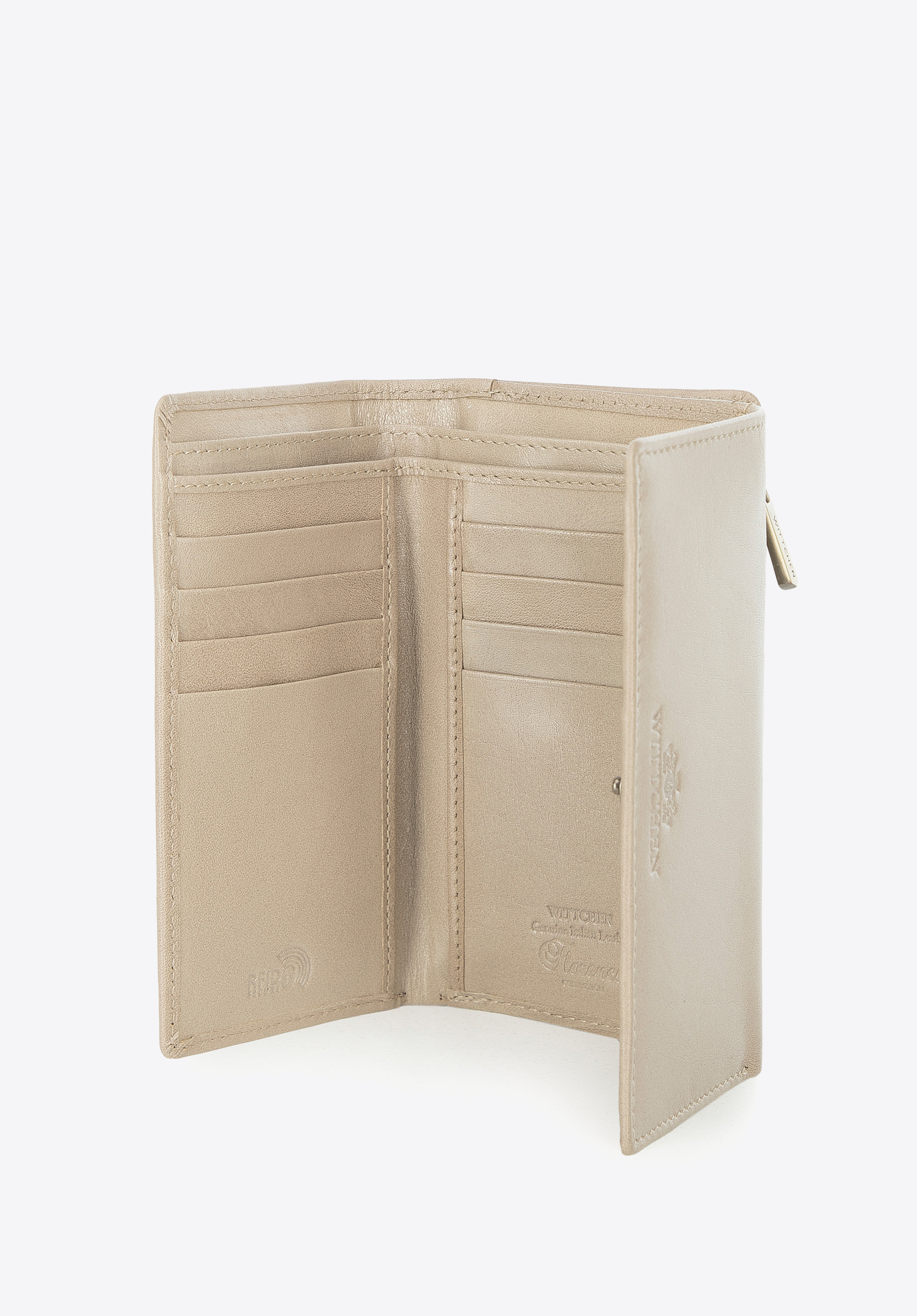 Acest portofel elegant este un accesoriu excelent pentru fiecare zi. Este confecționat din piele naturală plăcută la atingere. În plus, interiorul este organizat excelent: are mai multe fante pentru carduri de credit, buzunare deschise pentru bancnote și un buzunar cu plasă în care puteți pune bilete, de exemplu. În exterior, există un buzunar separat cu fermoar pentru monede, care vă permite să folosiți convenabil portofelul fără a fi nevoie să îl deschideți în întregime. Acest model este echipat cu o căptușeală pentru a vă proteja cardurile împotriva citirii datelor (RFID). Portofelul pentru femei din piele netedă de culoare medie este un model elegant și practic care vă va servi pentru multe sezoane.