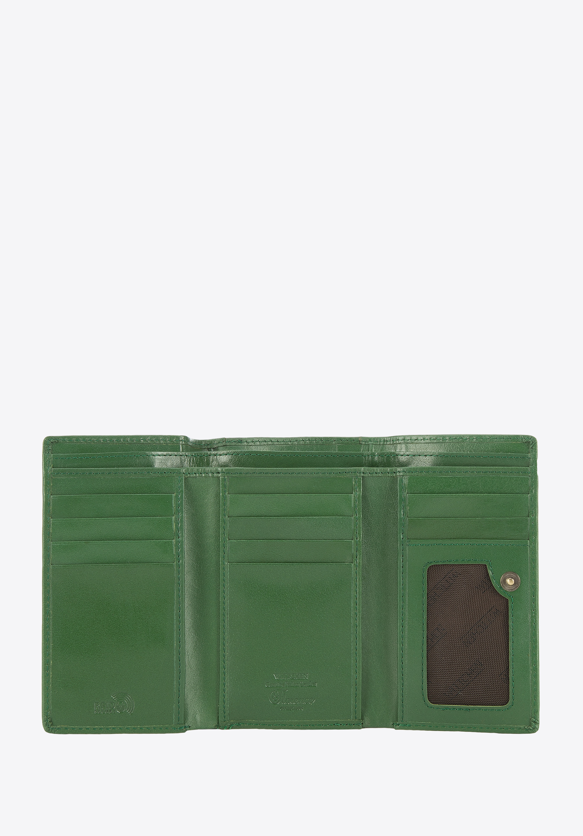 Acest portofel elegant este un accesoriu excelent pentru fiecare zi. Este confecționat din piele naturală plăcută la atingere. În plus, interiorul este organizat excelent: are mai multe fante pentru carduri de credit, buzunare deschise pentru bancnote și un buzunar cu plasă în care puteți pune bilete, de exemplu. În exterior, există un buzunar separat cu fermoar pentru monede, care vă permite să folosiți convenabil portofelul fără a fi nevoie să îl deschideți în întregime. Acest model este echipat cu o căptușeală pentru a vă proteja cardurile împotriva citirii datelor (RFID). Portofelul pentru femei din piele netedă de culoare medie este un model elegant și practic care vă va servi pentru multe sezoane.