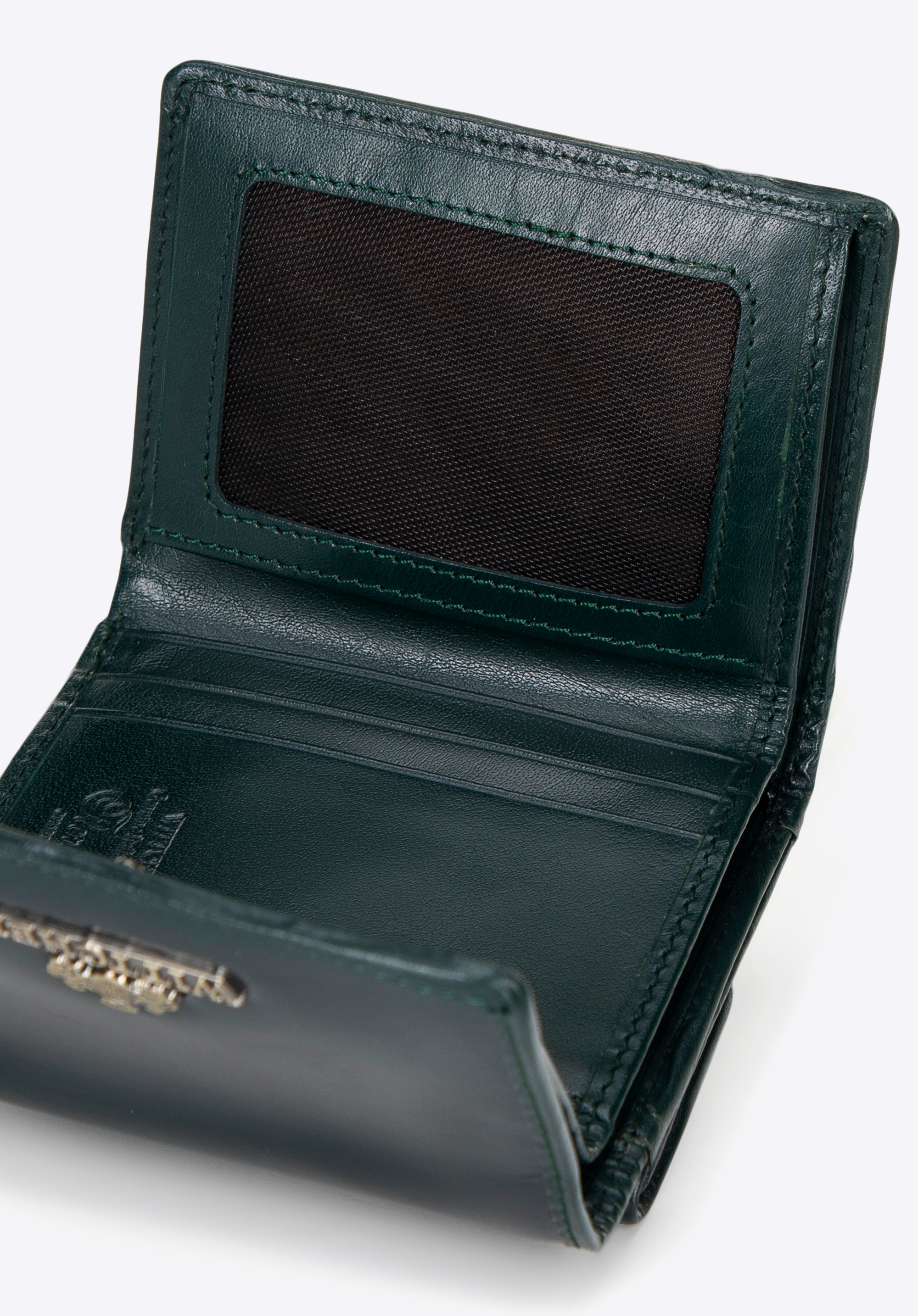- Amenajare interioară inteligentă: Designul funcțional include două compartimente pentru bancnote, un buzunar pentru monede cu capsă , patru sloturi pentru carduri de credit și trei buzunare suplimentare, inclusiv unul cu fereastră din plasă - ideal pentru femeile care apreciază ordinea și accesul rapid la lucrurile esențiale.
