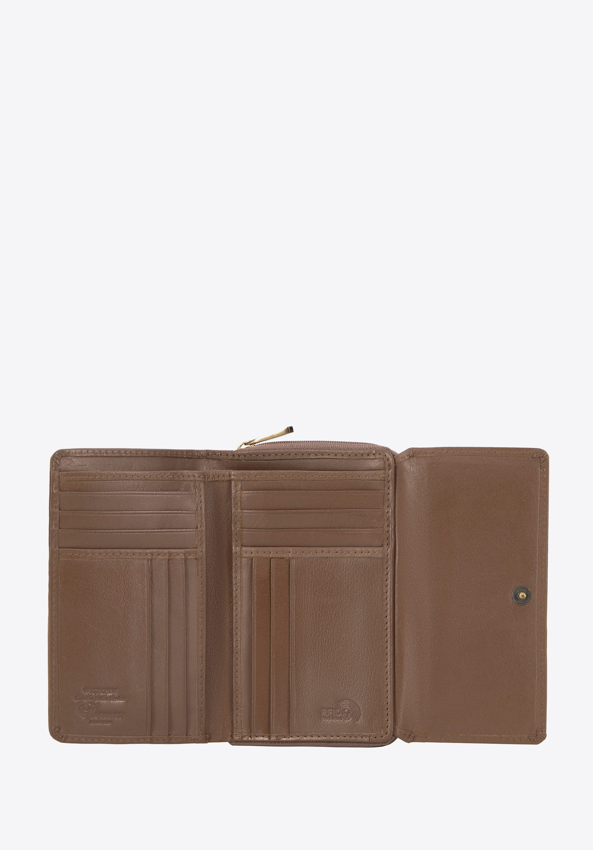 Descoperă portofelul din colecția Florence – un simbol al eleganței și fiabilității, creat pentru a satisface cele mai exigente femei. Confecționat din piele naturală de cea mai înaltă calitate, acest model stilat, cu orientare orizontală, se remarcă prin designul său rafinat. Detaliul subtil al blazonului WITTCHEN embosat în piele subliniază aspectul său luxos, transformând portofelul într-un accesoriu nu doar practic, ci și elegant.