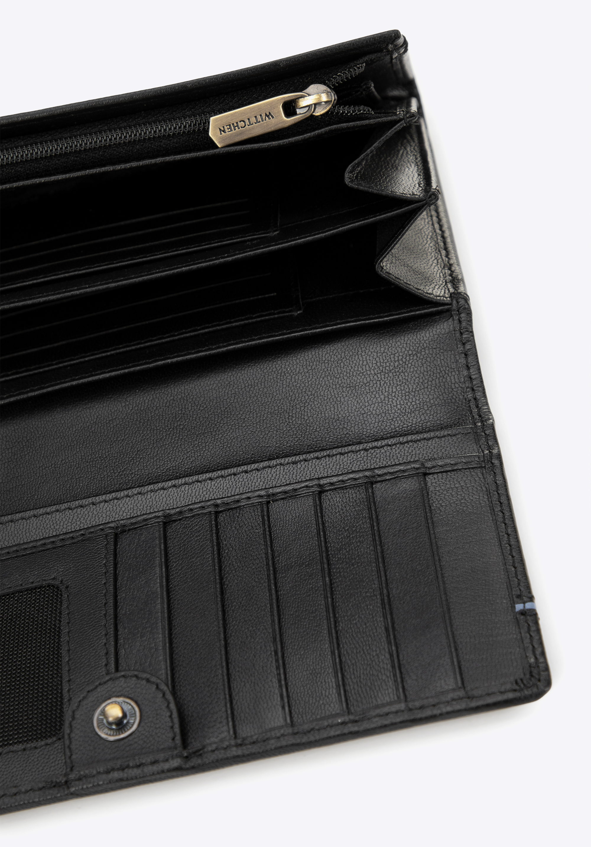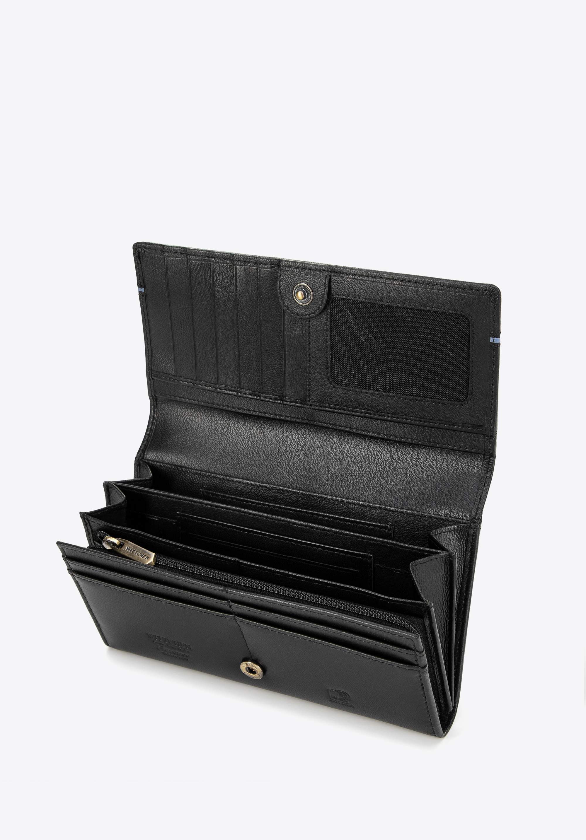 - Închidere cu capsă: Închiderea convenabilă cu capsă facilitează deschiderea și închiderea portofelului, păstrând în același timp conținutul în siguranță.