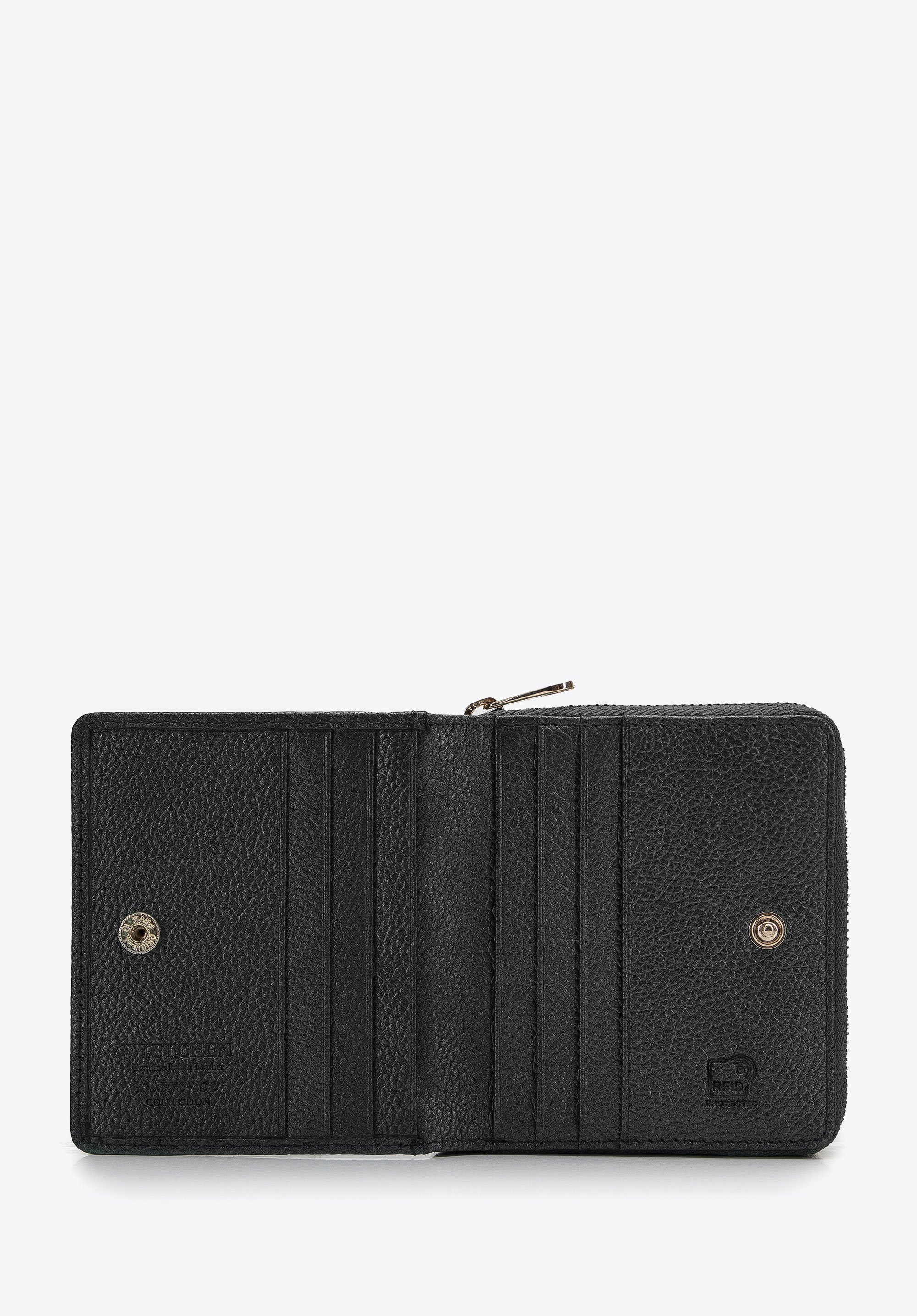 Acest portofel mic și elegant este o alegere excelentă pentru utilizarea zilnică. Cu un buzunar separat cu fermoar pentru monede, va fi comod de utilizat. Compartimentul principal cu închidere cu clic are mai multe fante pentru carduri de credit și mai multe buzunare deschise. Acest model este confecționat din piele naturală de înaltă calitate. Este dotat cu o căptușeală RFID, care va avea grijă de securitatea datelor cardurilor dvs. Marginea decorativă, care este convexă și plăcută la atingere, îi conferă un plus de caracter. Portofelul mic din piele pentru femei cu margine decorativă se va potrivi cu ușurință în geanta dvs. preferată.