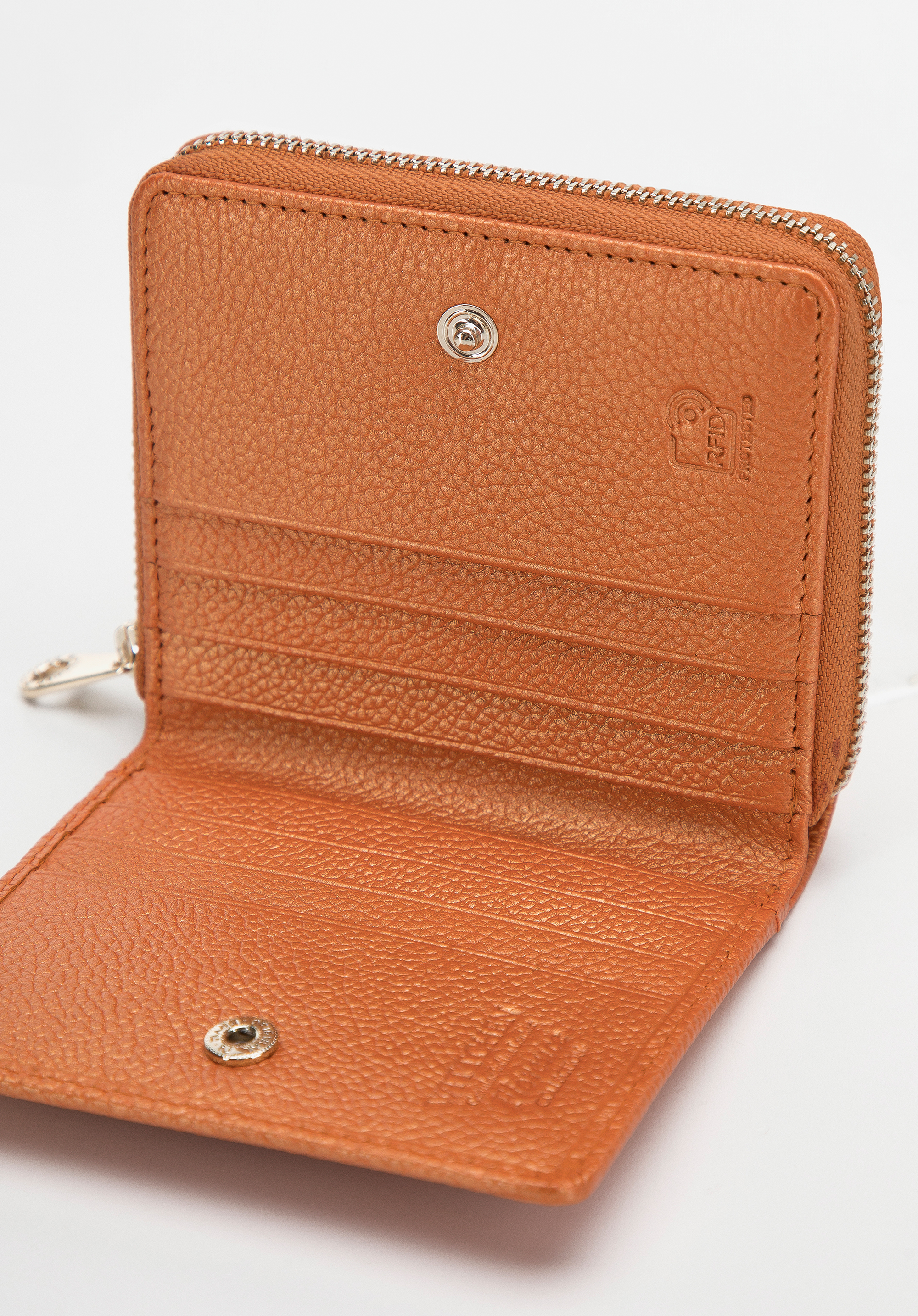 Acest portofel mic și elegant este o alegere excelentă pentru utilizarea zilnică. Cu un buzunar separat cu fermoar pentru monede, va fi comod de utilizat. Compartimentul principal cu închidere cu clic are mai multe fante pentru carduri de credit și mai multe buzunare deschise. Acest model este confecționat din piele naturală de înaltă calitate. Este dotat cu o căptușeală RFID, care va avea grijă de securitatea datelor cardurilor dvs. Marginea decorativă, care este convexă și plăcută la atingere, îi conferă un plus de caracter. Portofelul mic din piele pentru femei cu margine decorativă se va potrivi cu ușurință în geanta dvs. preferată.