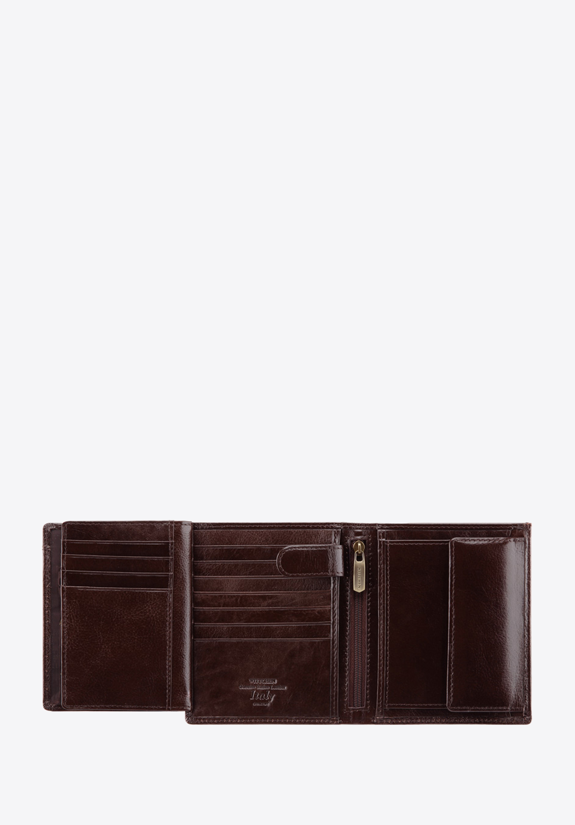 Portofelul stilat din piele este dotat cu un buzunar pentru monede, decorat cu blazonul WITTCHEN embosat. Datorită numărului mare de buzunare, portofelul este foarte încăpător și funcțional.Un bestseller printre portofele!