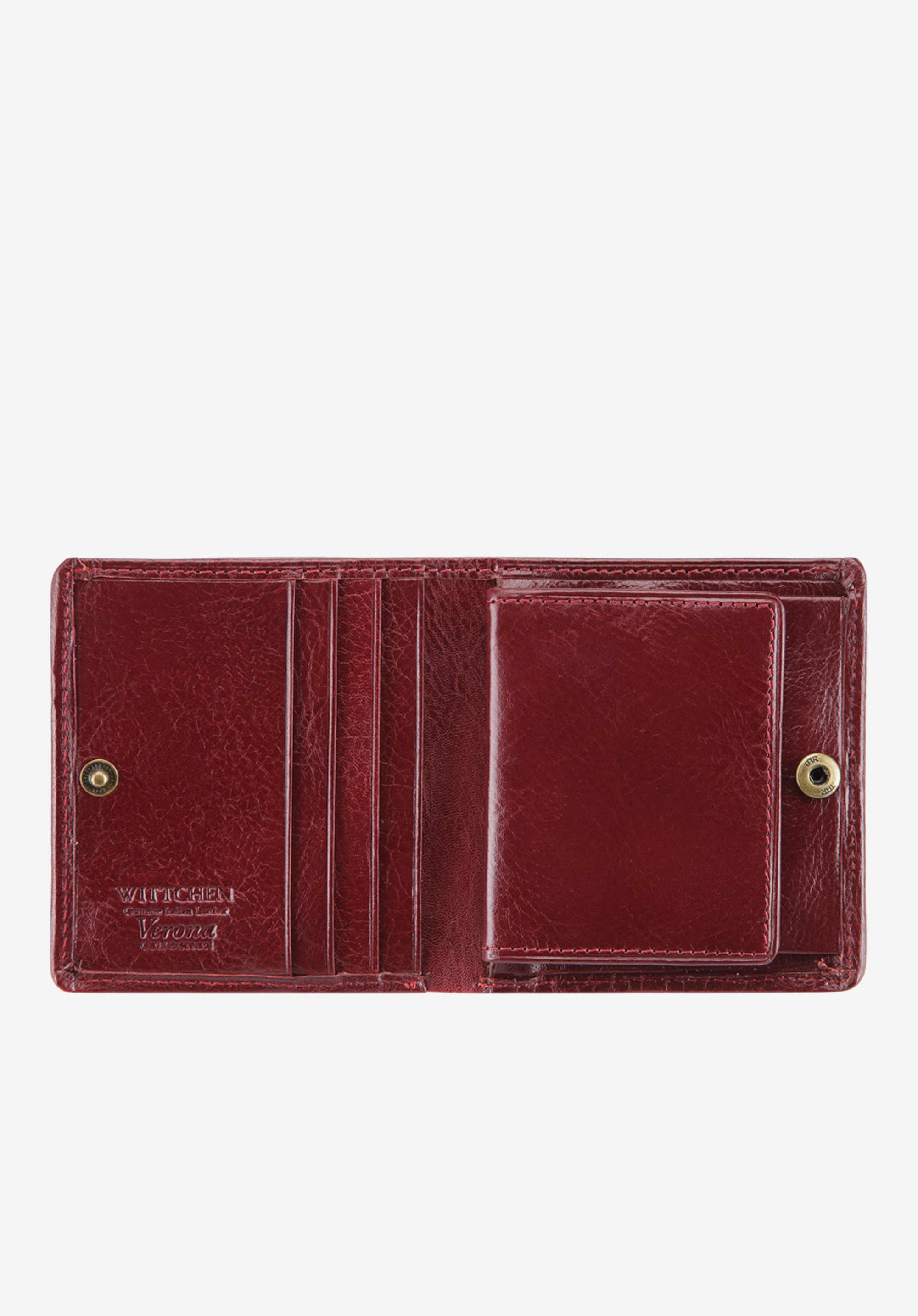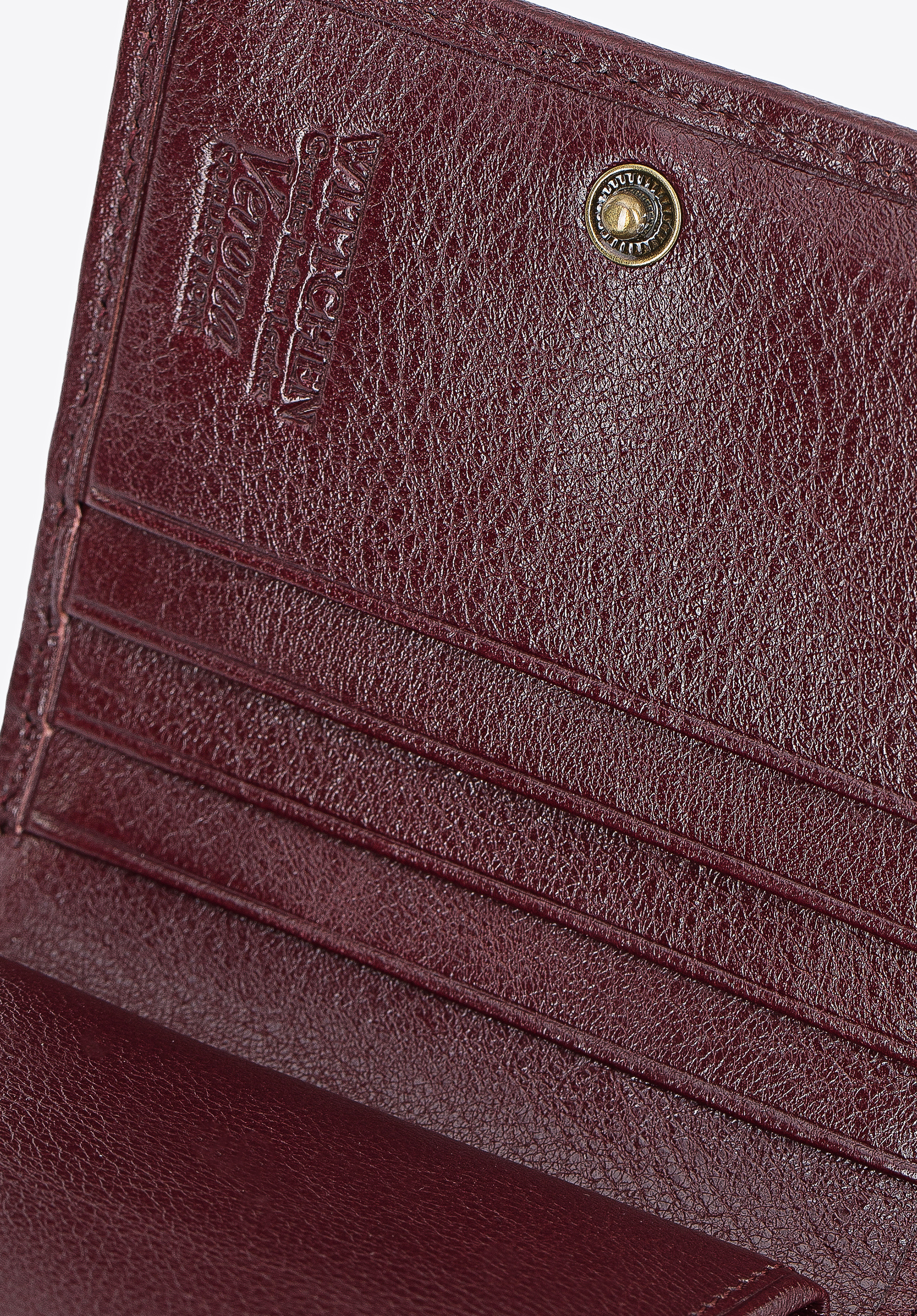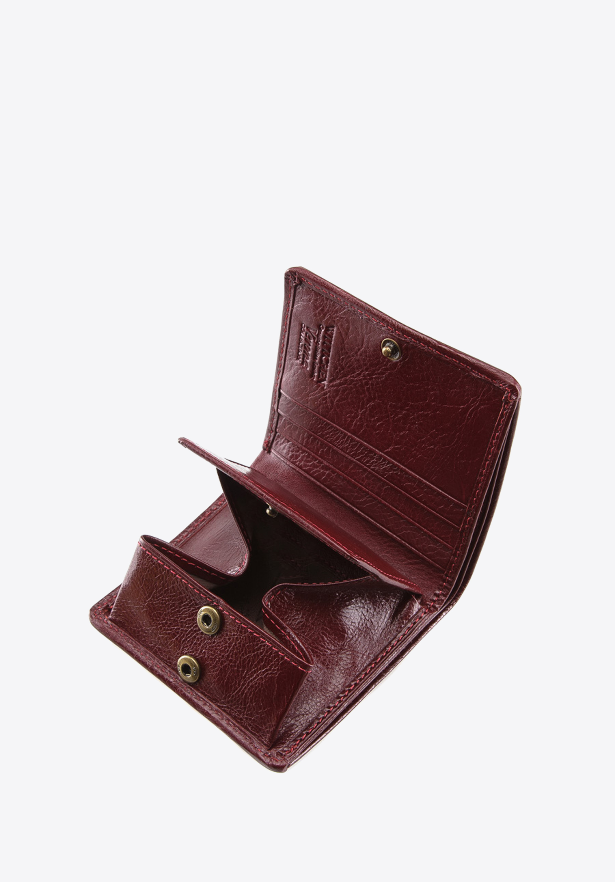 Extrem de feminin și de bun gust - asta este portofel mic de femei lucrat manual cu piele lăcuită (în exterior) si piele naturală (în interior și pe tiv).Portofelul nu este doar atractiv, ci și funcțional - datorită dimensiunii sale compacte se va potrivi în aproape orice poșetă de femei.