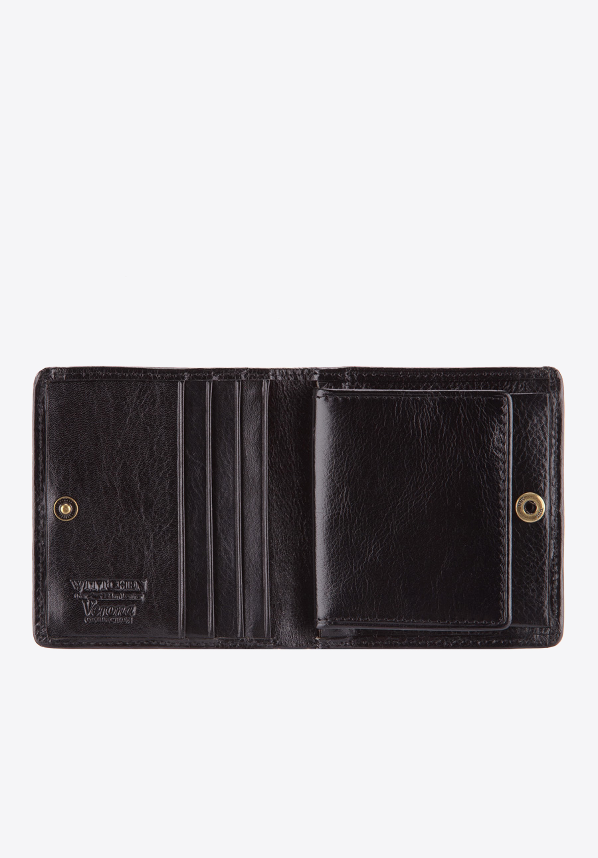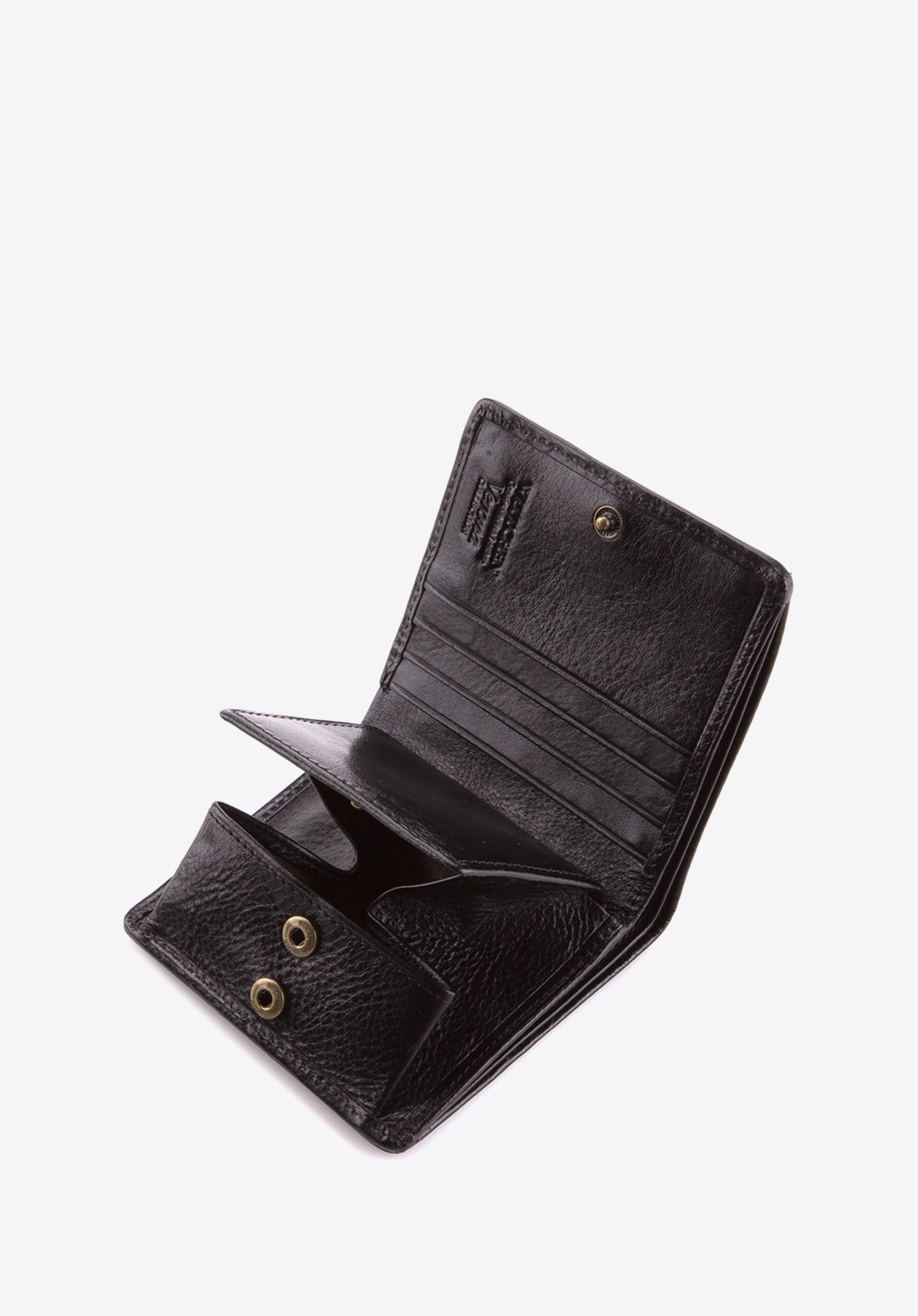 Extrem de feminin și de bun gust - asta este portofel mic de femei lucrat manual cu piele lăcuită (în exterior) si piele naturală (în interior și pe tiv).Portofelul nu este doar atractiv, ci și funcțional - datorită dimensiunii sale compacte se va potrivi în aproape orice poșetă de femei.