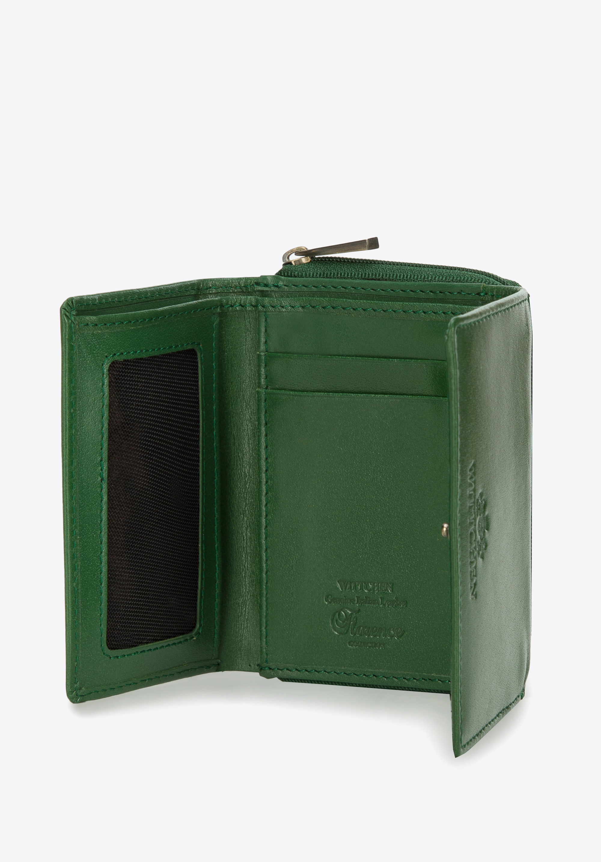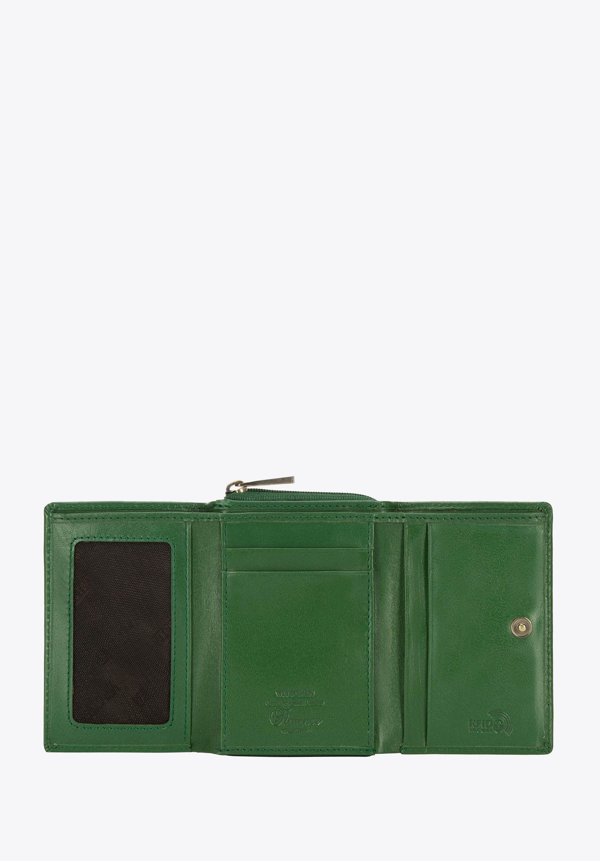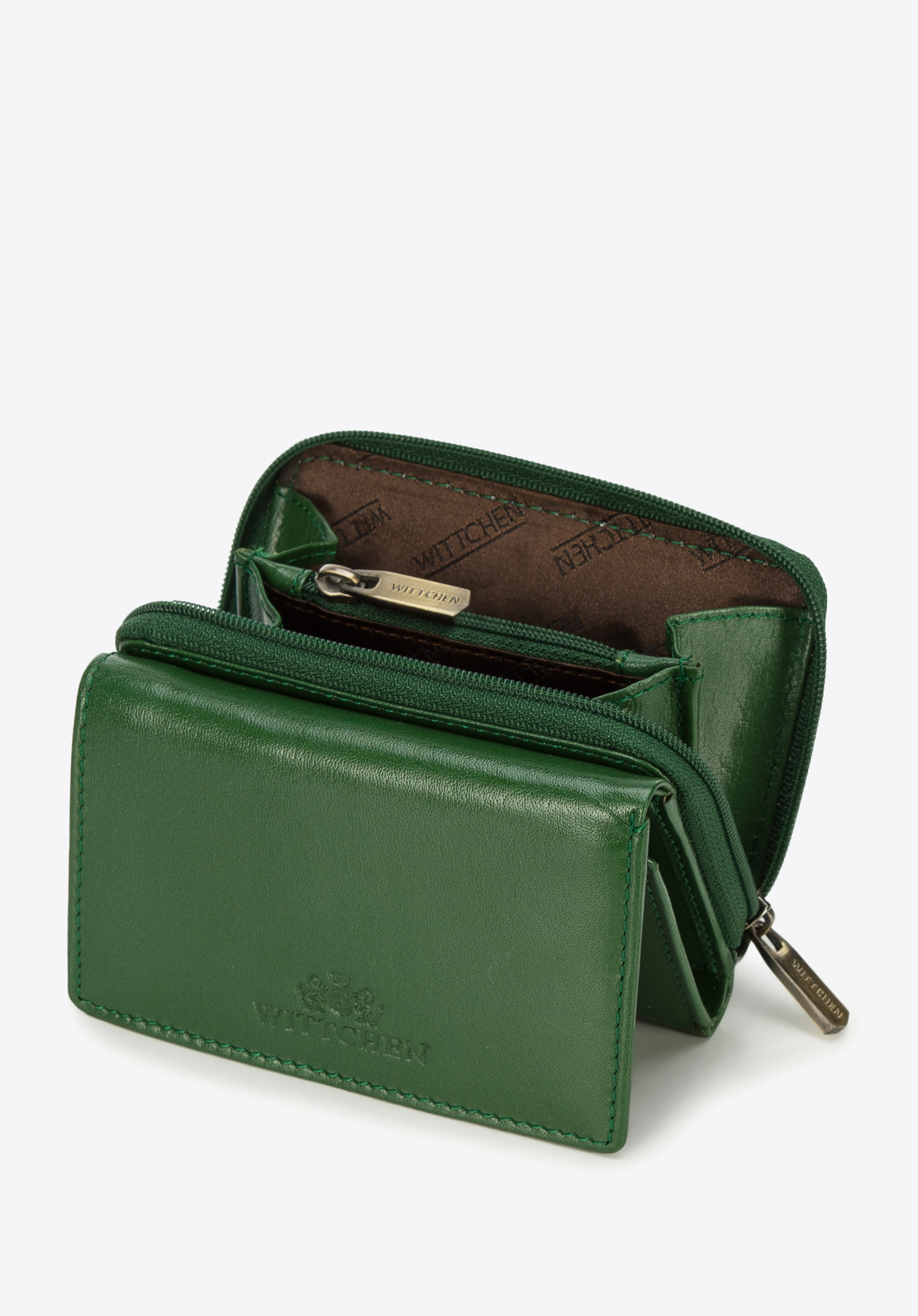 Acest portofel elegant pentru doamne este un accesoriu unic, care va încăpea chiar și într-o geantă de mână mică. Este confecționat din piele naturală plăcută la atingere, cu logo-ul WITTCHEN în relief. Datorită unui buzunar separat cu fermoar pentru monede, va fi comod de utilizat. În interior, are mai multe fante pentru carduri și un buzunar cu plasă în care puteți depozita un bilet, de exemplu. În plus, căptușeala de pe acest model vă protejează cardurile împotriva citirii datelor (RFID). Portofelul mic pentru femei cu două fețe din piele netedă este o alegere excelentă pentru femeile cărora le plac accesoriile practice.