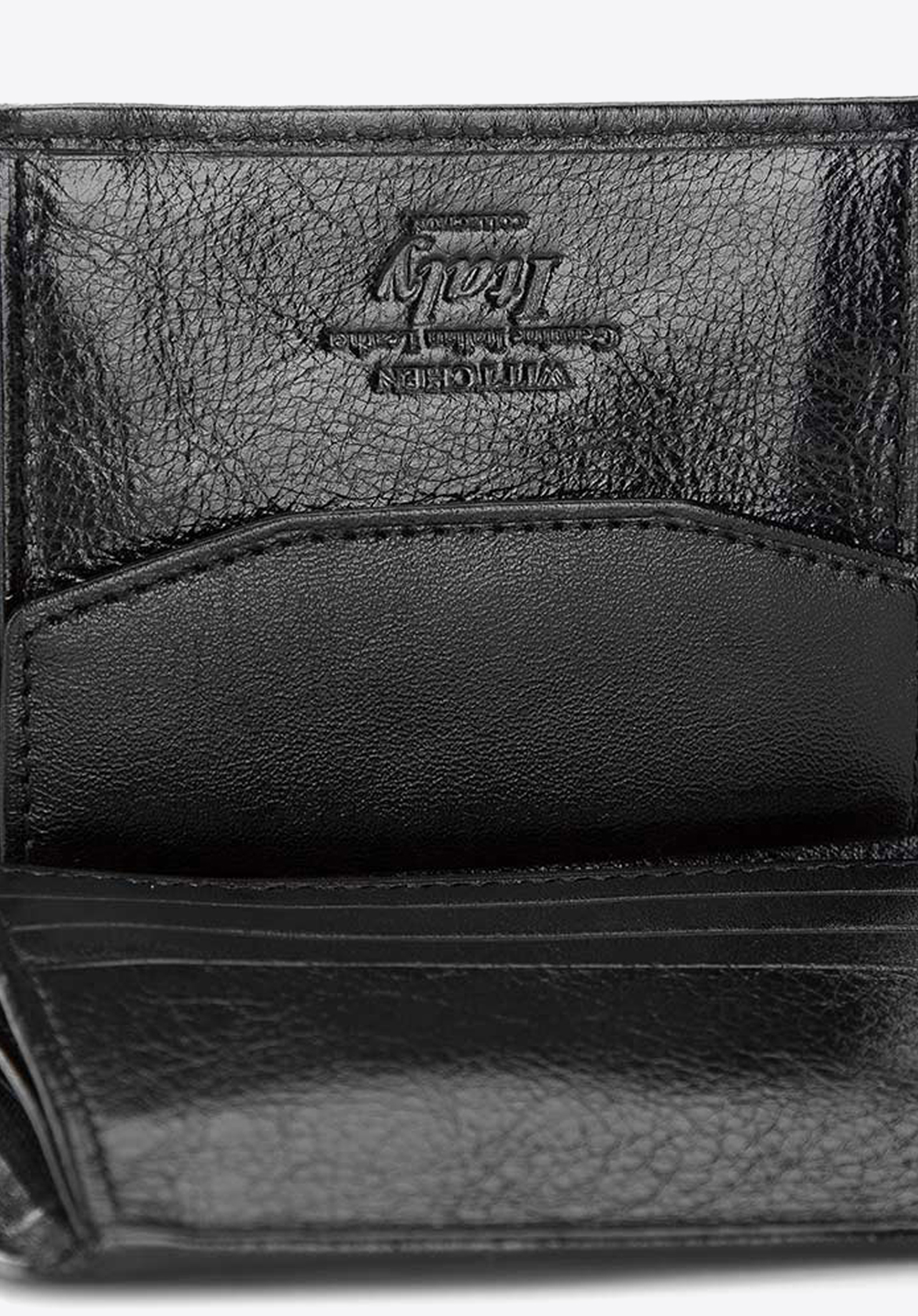 Mic portofel de piele cusută manual cu grijă extremă, este un accesoriu foarte practic și elegant.Sigla WITTCHEN, imprimată în piele pe față, în mijloc - aspect convenabil de buzunar cu un loc pentru monede închis cu un buton de apăsare.