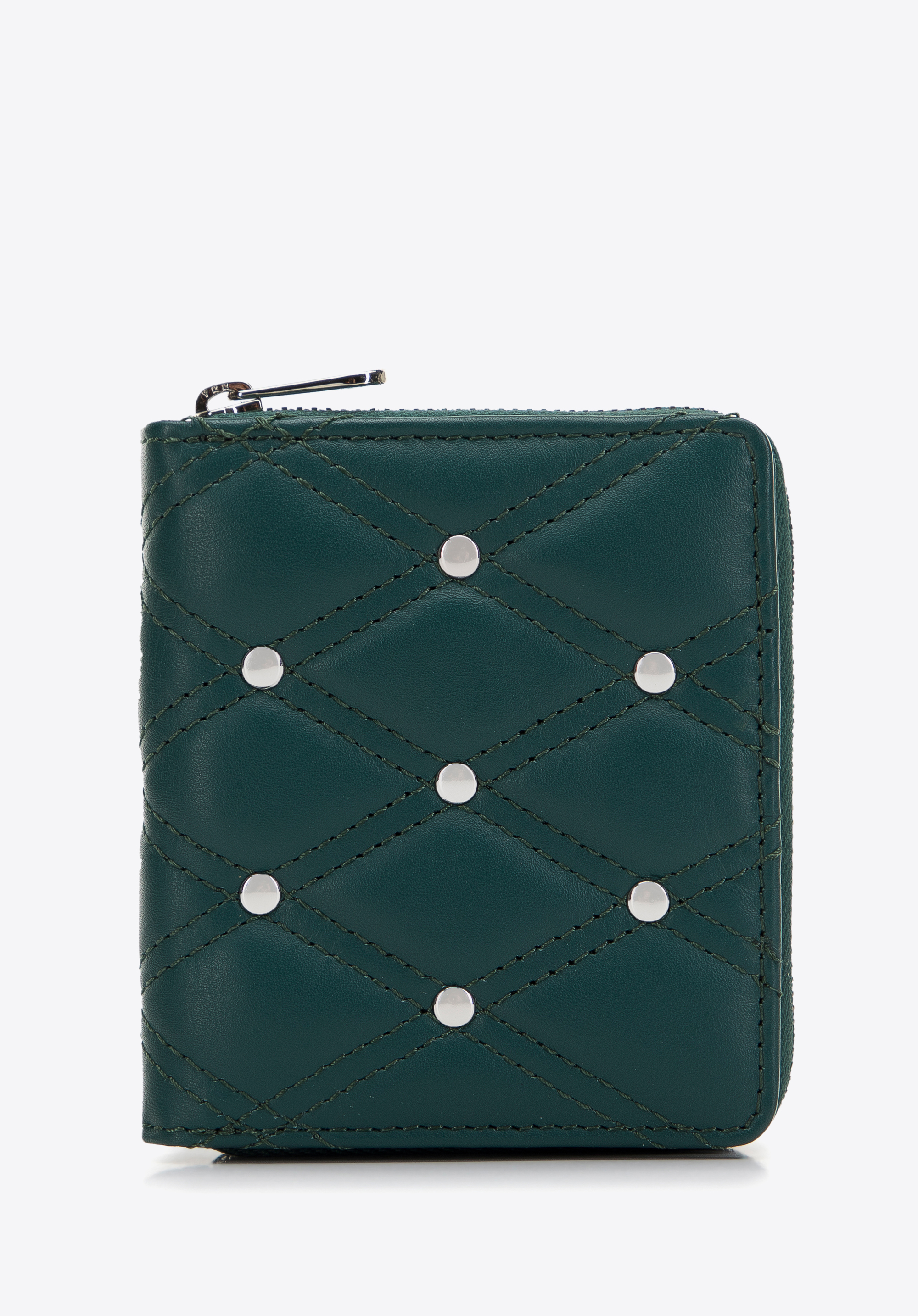 Acest portofel elegant pentru doamne va atrage mai mult de o privire. Este confecționat din piele naturală matlasată de înaltă calitate. Partea din față este decorată cu nituri mici, ceea ce conferă întregului un caracter unic. În interior, este superb organizat: are mai multe fante pentru carduri și mai multe buzunare deschise. Datorită buzunarului exterior cu fermoar pentru monede, va fi comod de utilizat. În plus, acest model este echipat cu o căptușeală specială (RFID), care blochează posibilitatea citirii de la distanță a datelor cardurilor. Portofelul mic pentru femei din piele matlasată cu nituri este un accesoriu original pe care îl puteți purta în fiecare zi.