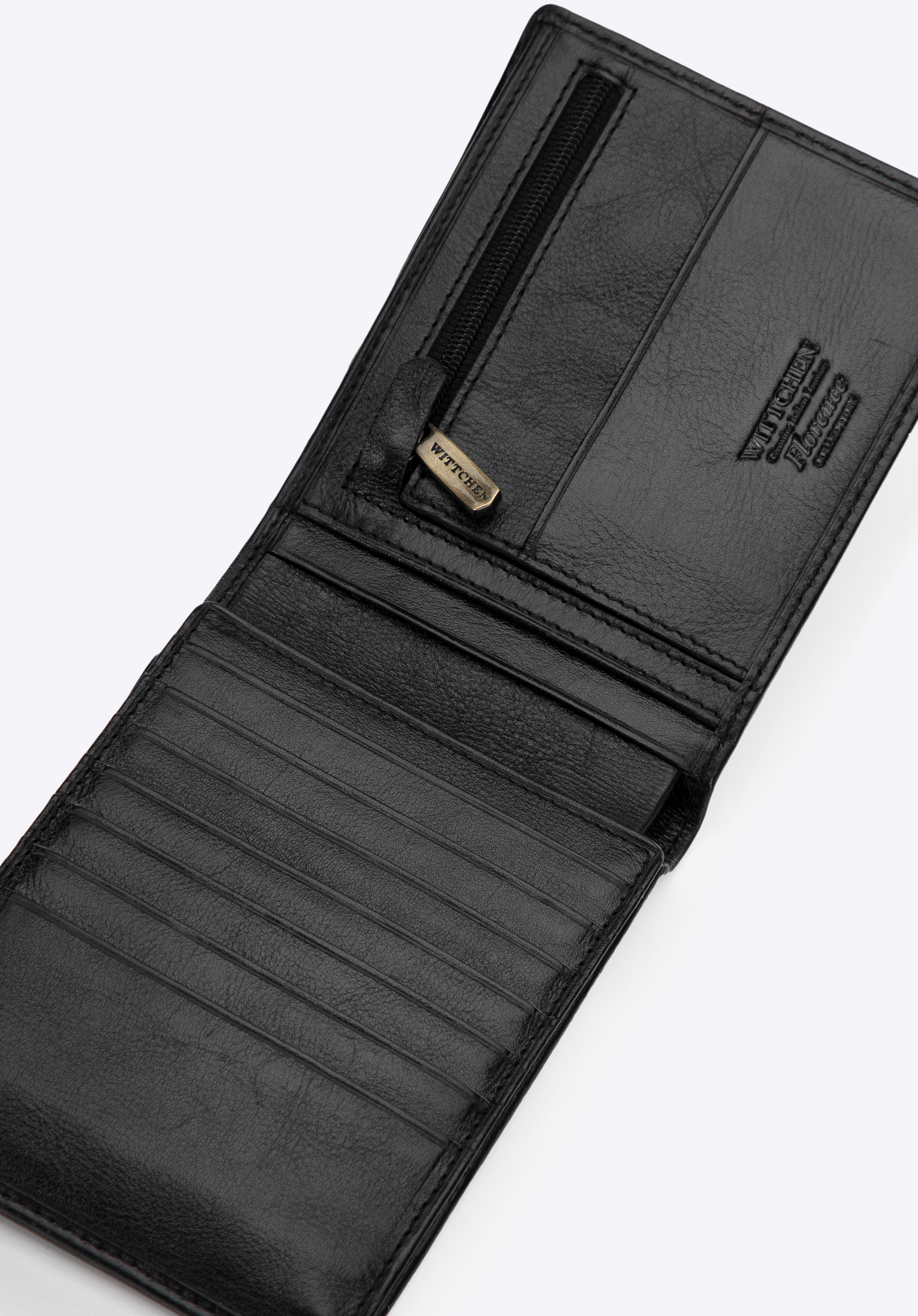 Portofel pentru bărbați de mărime medie din colecția Florența. Fabricat manual din piele moale de vițel. Logo - WITTCHEN blazonul ștanșat în piele. Un număr mare de buzunare face portofelul foarte încăpător și funcțional. Perfect pentru bărbații care apreciază un stil sofisticat și confort în folosire.