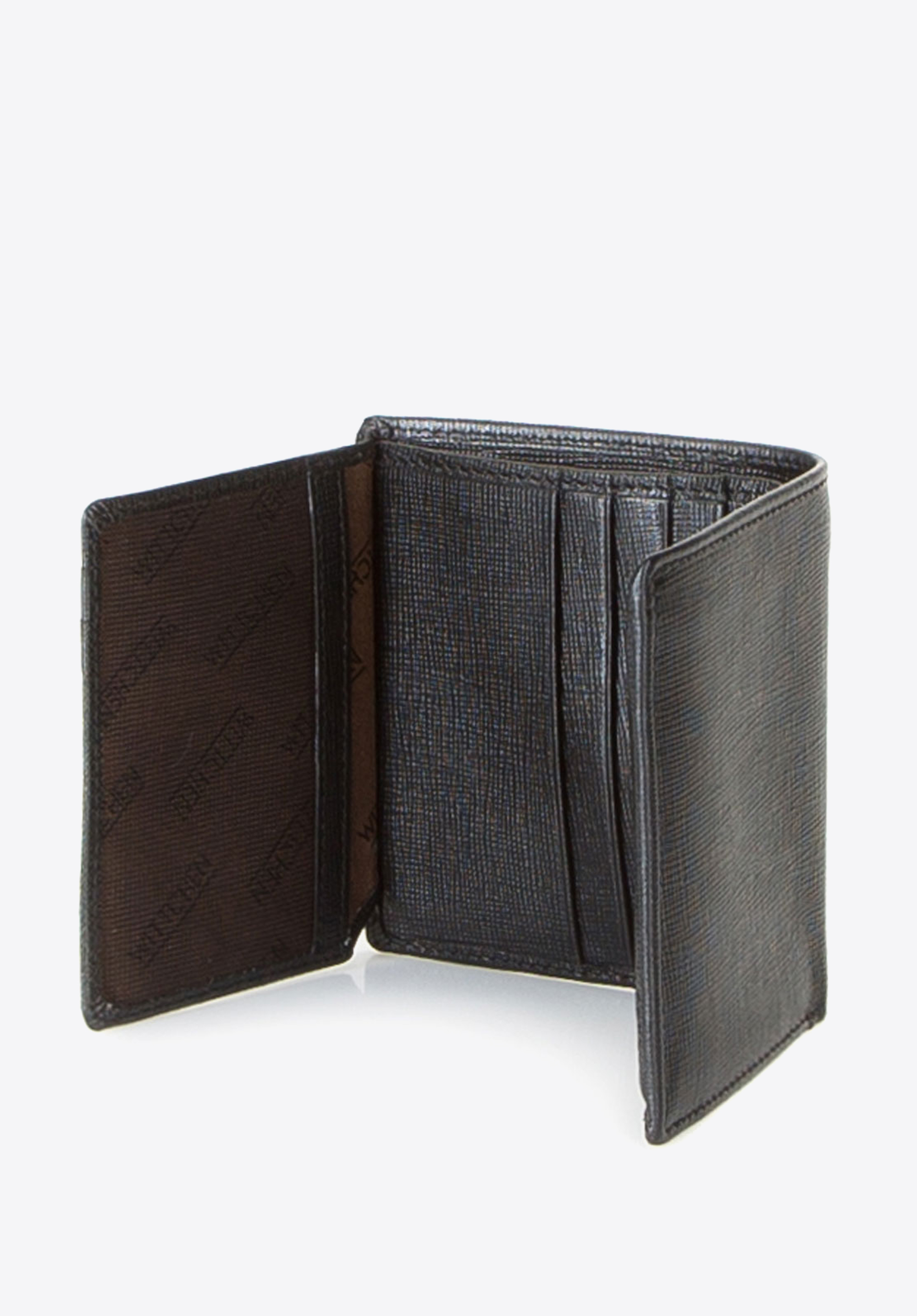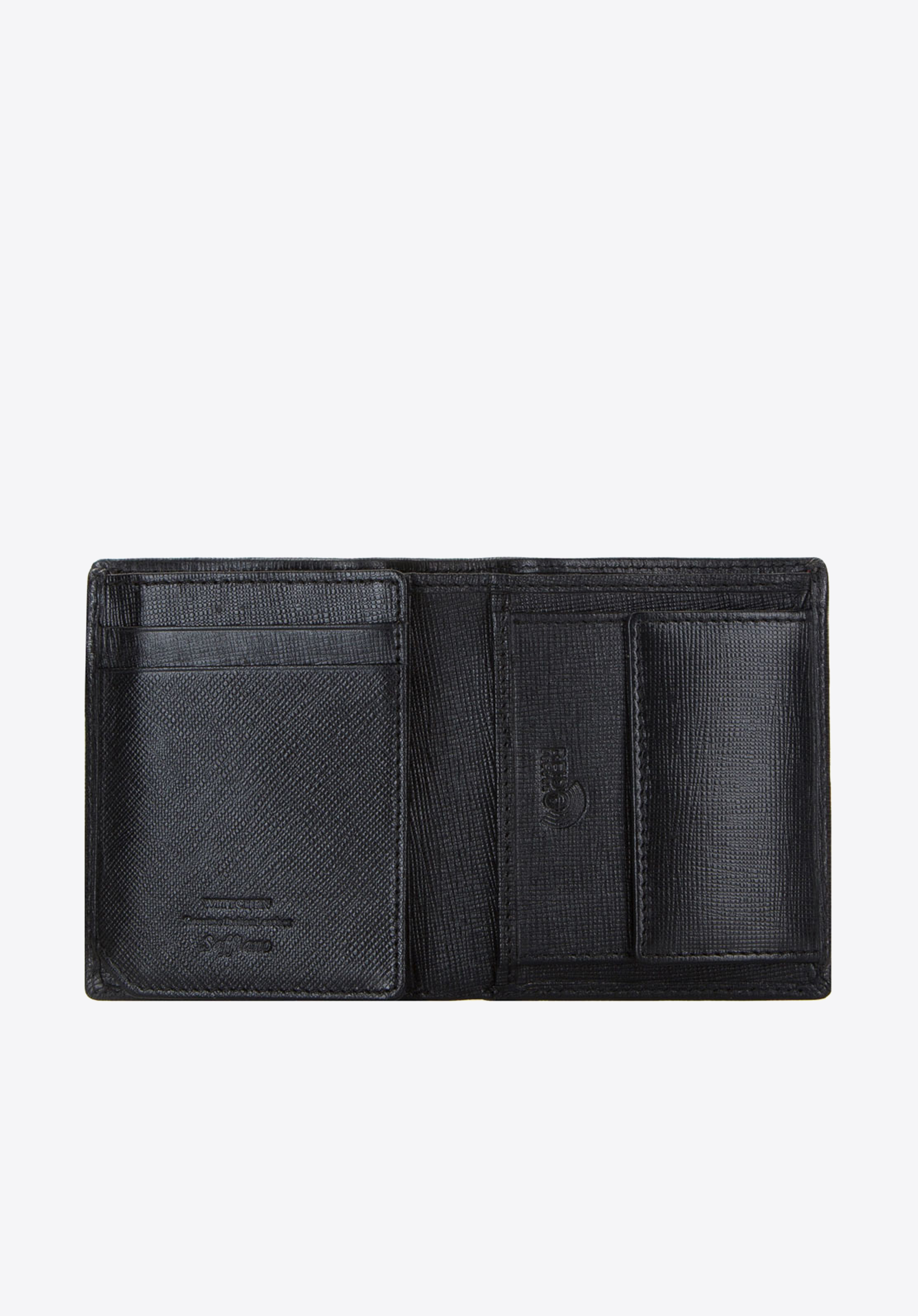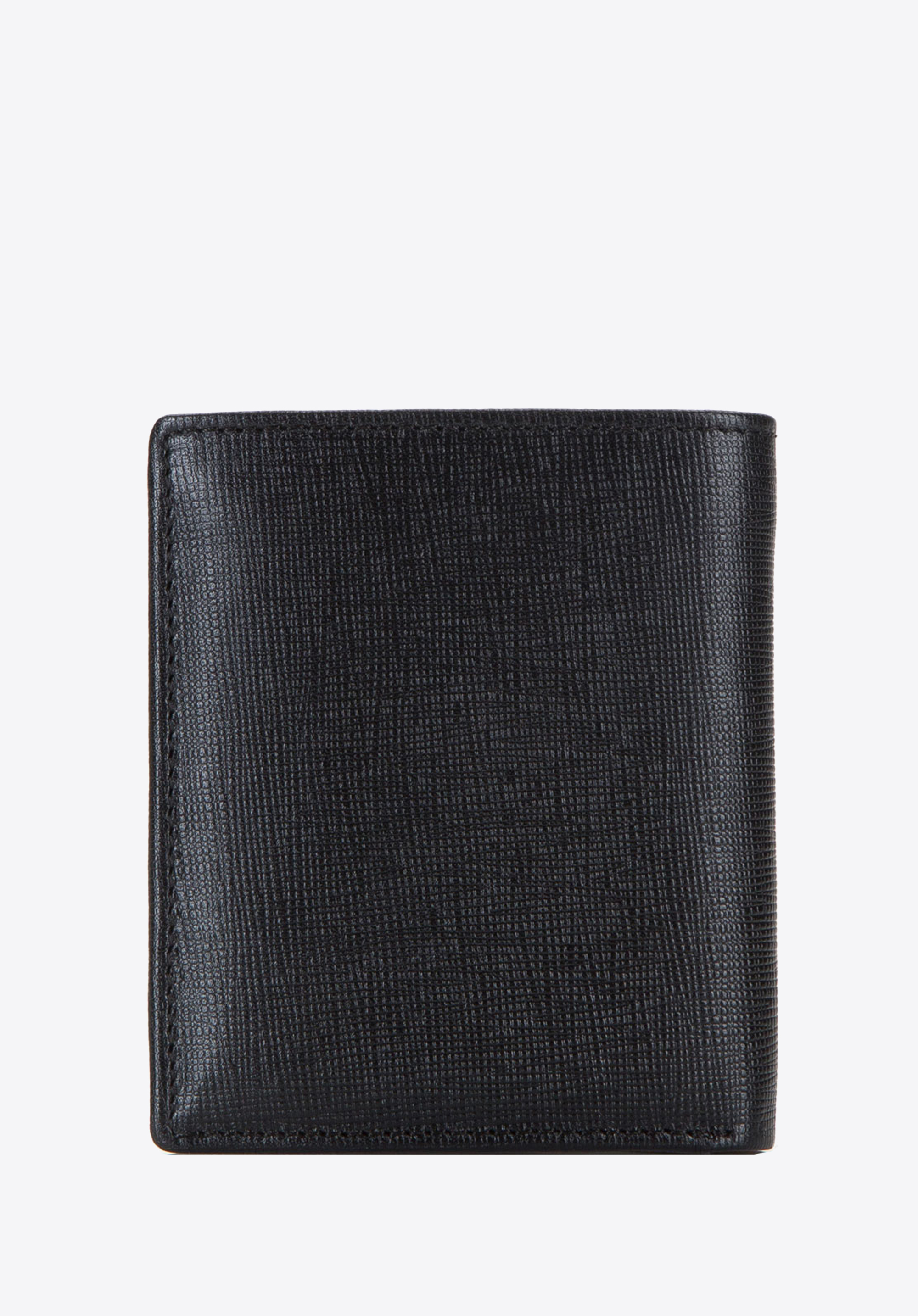 Portofel pentru bărbați în culoare neagră, formă clasică.Simplitatea designuluise concentrează pe o funcționalitate ridicată și îi va încânta pe fanii accesoriilor minimaliste și practice.Manopera de înaltă calitate din piele fină va asigura confortul pentru mulți ani de utilizare.