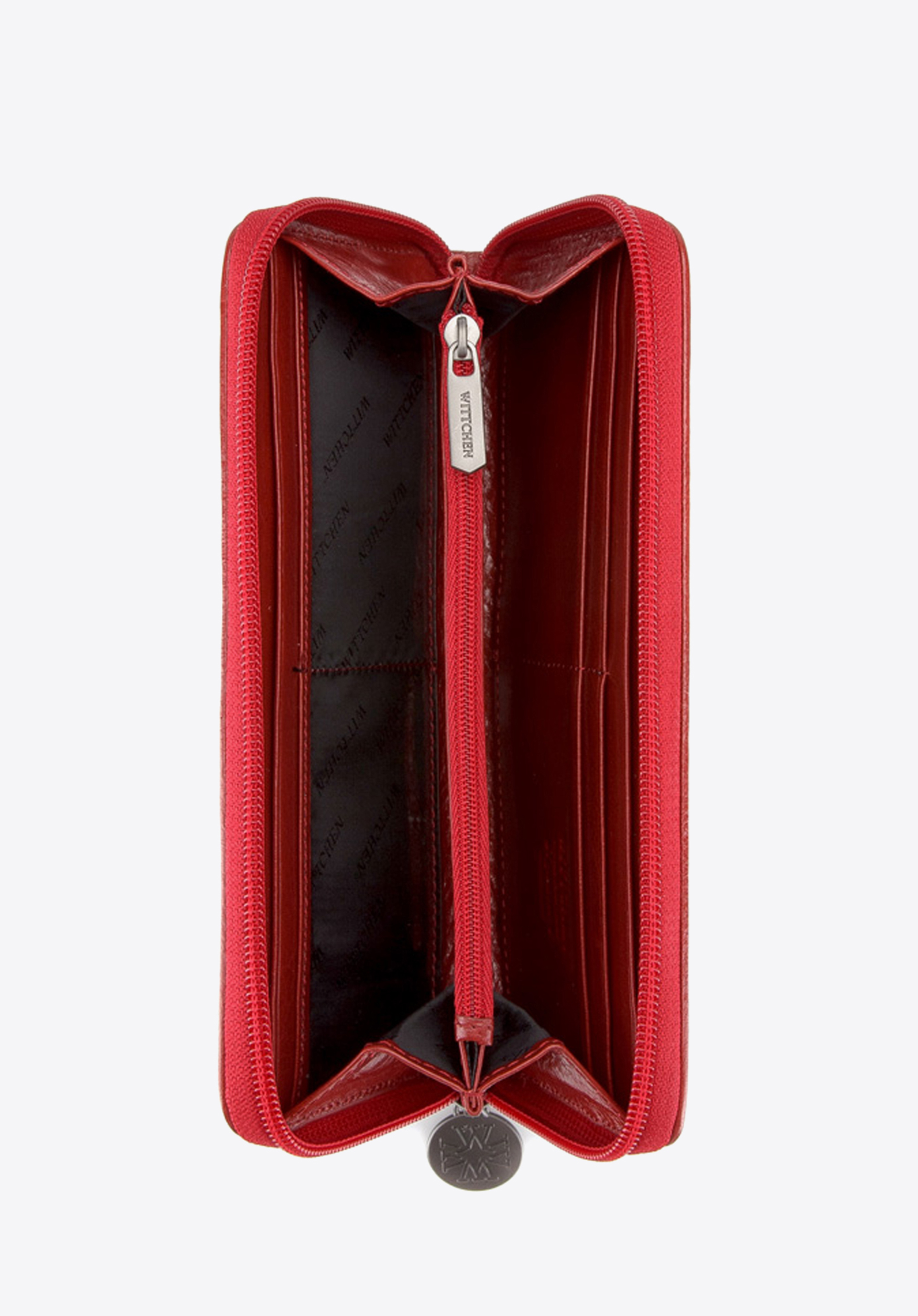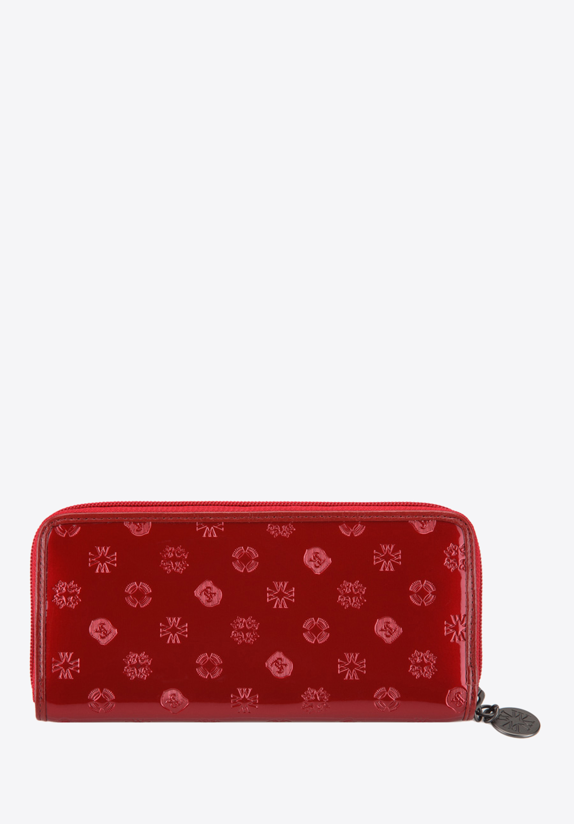 Portofelul mare de damă din piele lăcuită nu este doar un gadget practic pentru utilizarea de zi cu zi, ci și un accesoriu excepțional de stilat.Model cu închidere prin fermoar decorat cu ștanțări caracteristice, va completa un look la modă.