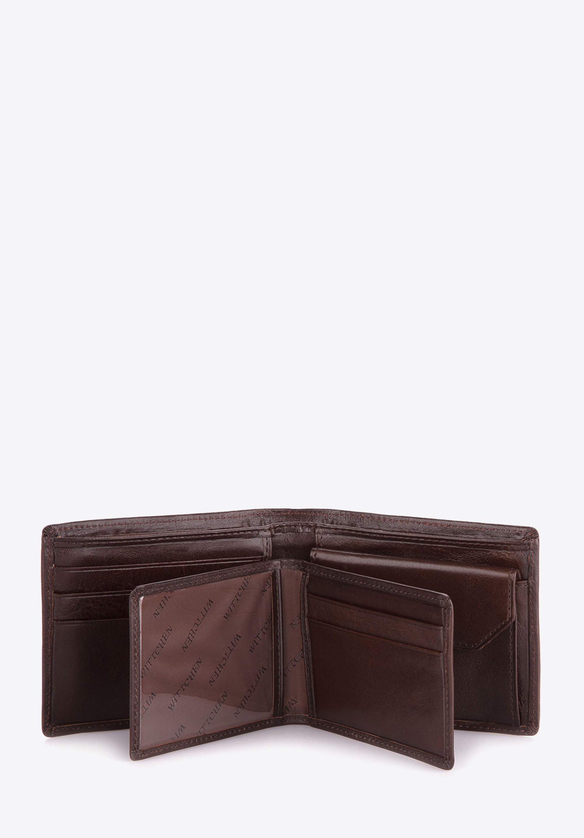 Clasic portofel bărbătesc , realizat manual din piele de vitel usor stralucitoare, decorat cu un logo sub forma unei insigne metalice cu stema WITTCHEN in culoarea aurului vechi.Un portofel din piele pentru bărbați este ambalat într-un ambalaj exclusiv - o idee grozavă pentru un cadou practic și elegant.Perfect pentru bărbații care apreciază designul ergonomic combinat cu eleganța clasică.