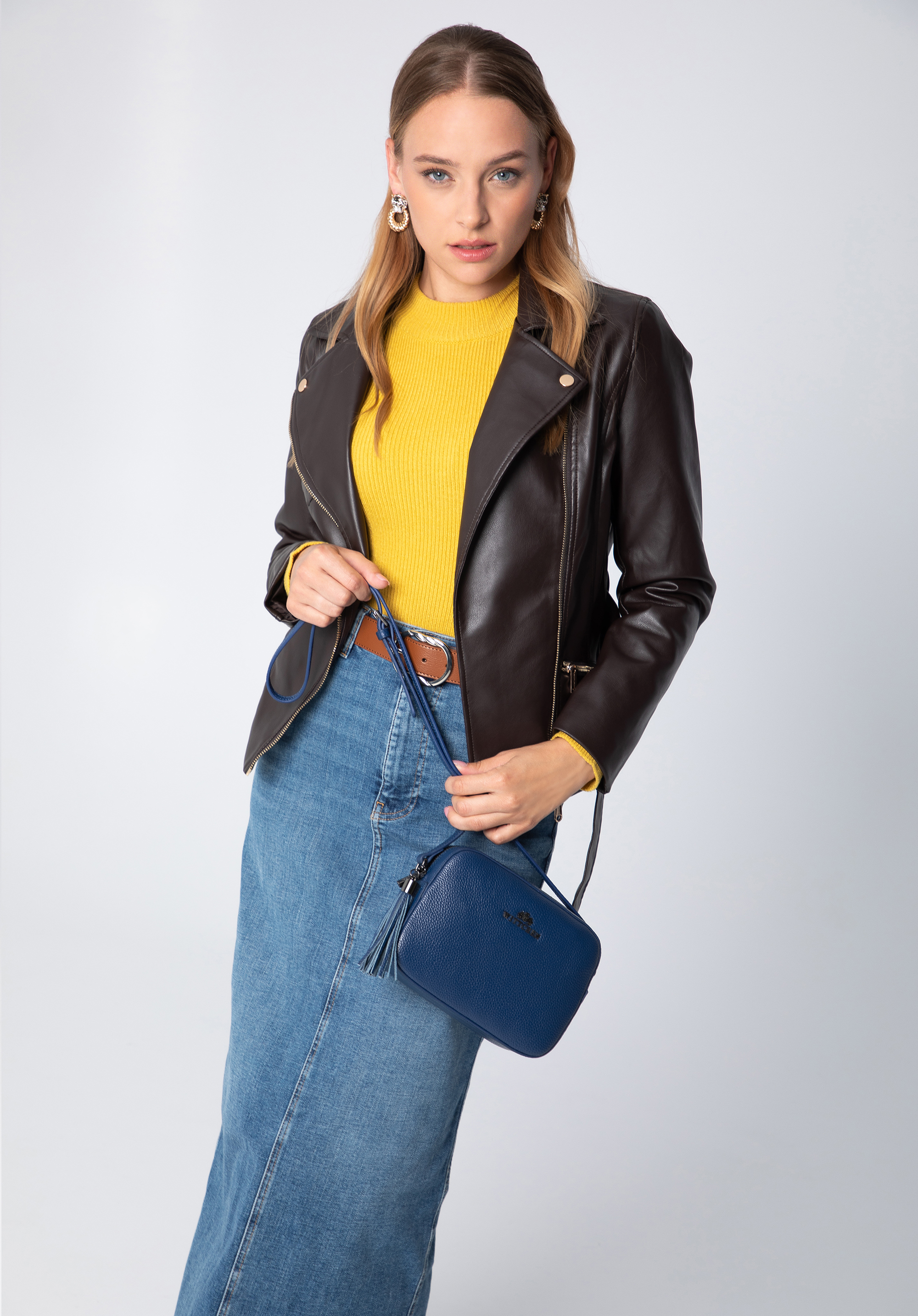 În garderoba oricărei femei își găsește locul o geantă elegantă, atemporală. Acest model este realizat din piele naturală de înaltă calitate, ceea ce înseamnă că te va însoți mult timp. Forma sa rigidă, tip cutie, arată impecabil indiferent de cât de plină este geanta. În interior încape telefonul, portofelul, șervețelele și ochelarii de soare – perfectă pentru o plimbare de weekend, o petrecere elegantă sau o seară la cinema. Geanta de tip poștaș cu ciucure este o alegere excelentă pentru orice femeie care iubește accesoriile elegante și practice.