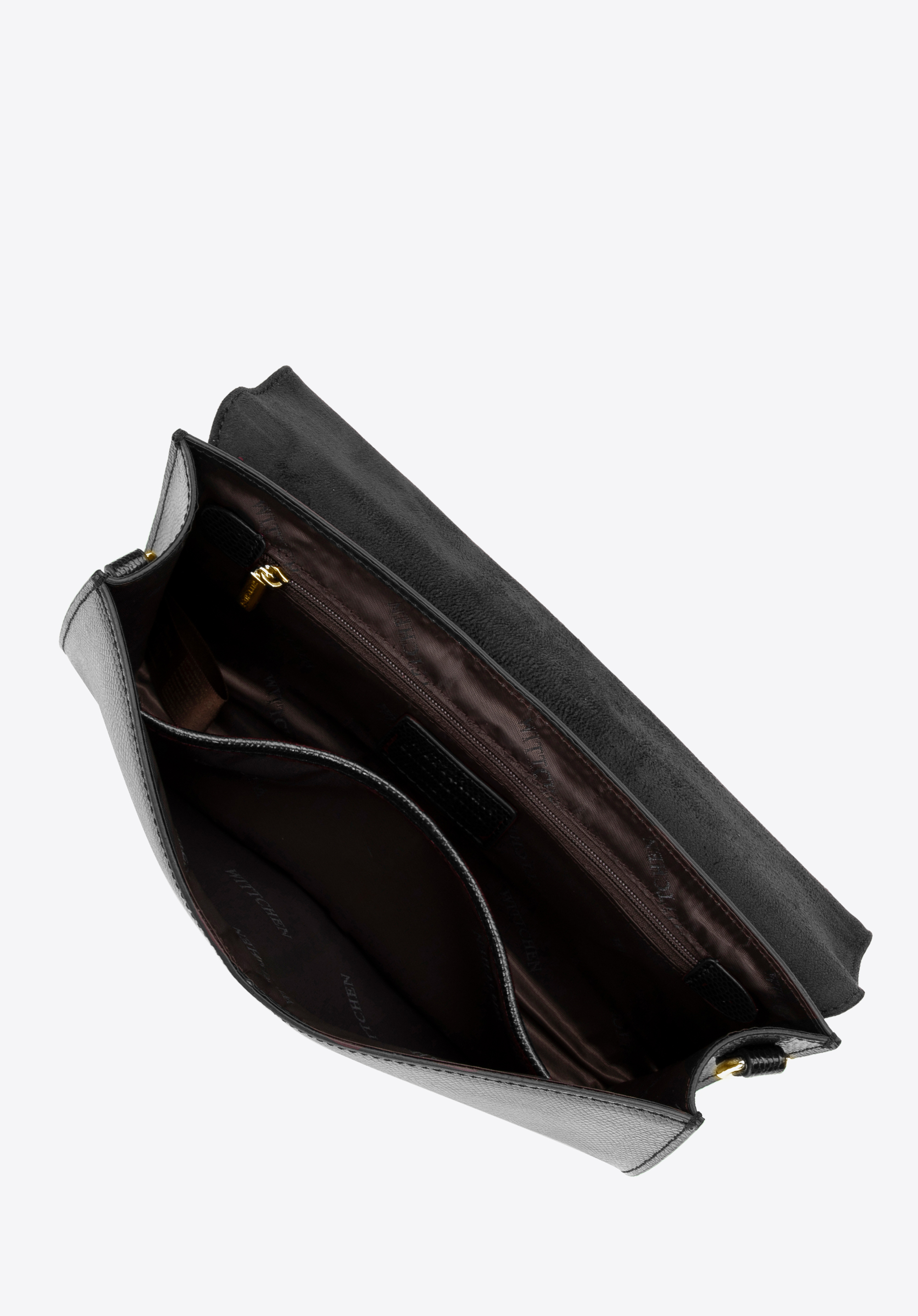 - Design: Clapeta are o formă semicirculară elegantă, adăugând subtilitate și ușurință genții de mână.