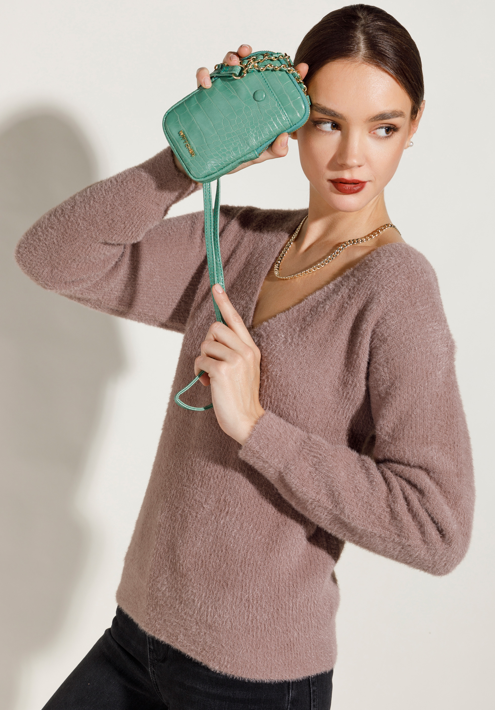 lanțului decorativ o puteți purta cum doriți, pe umăr sau pe diagonală ca pe o geantă crossbody.În buzunarul