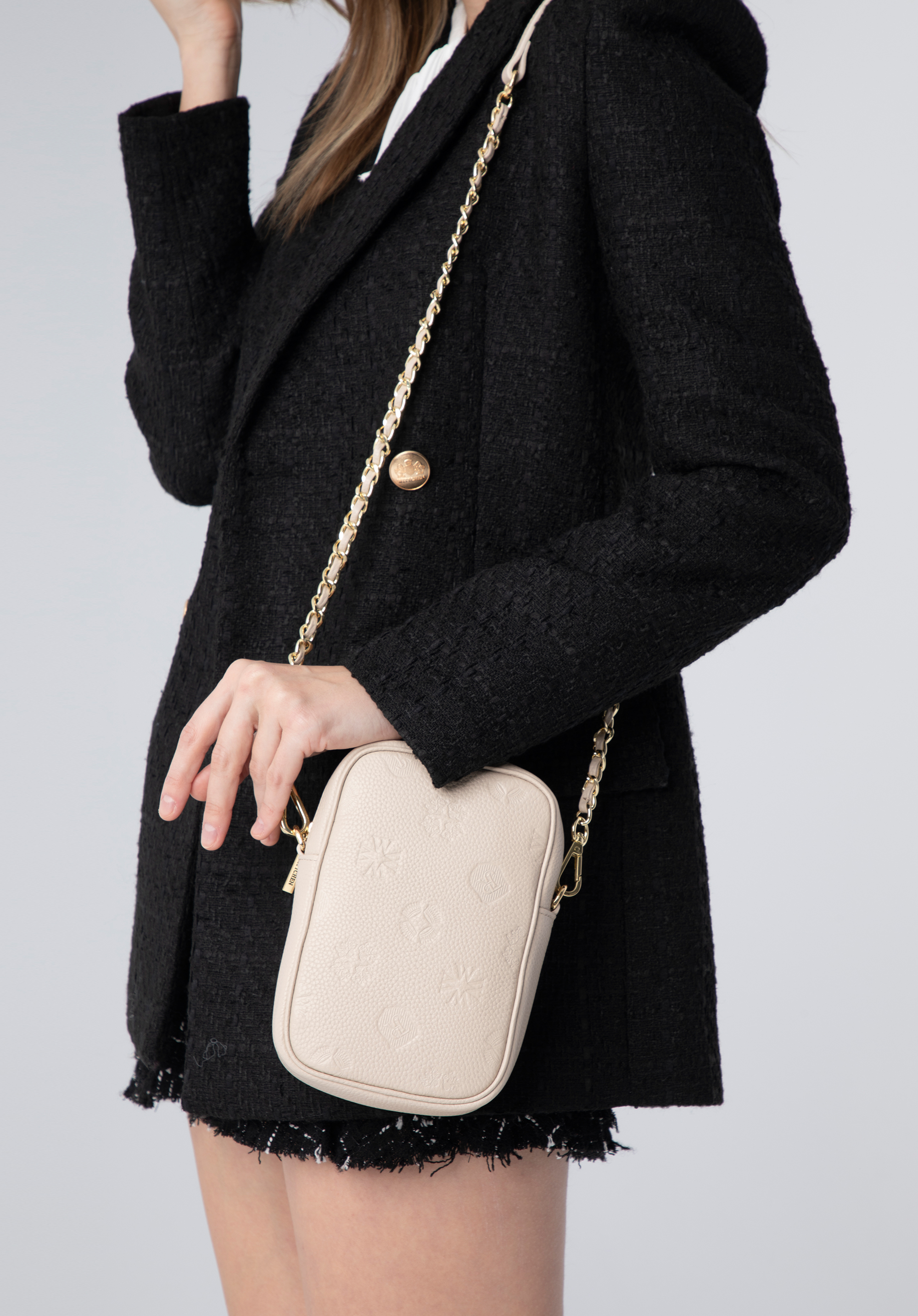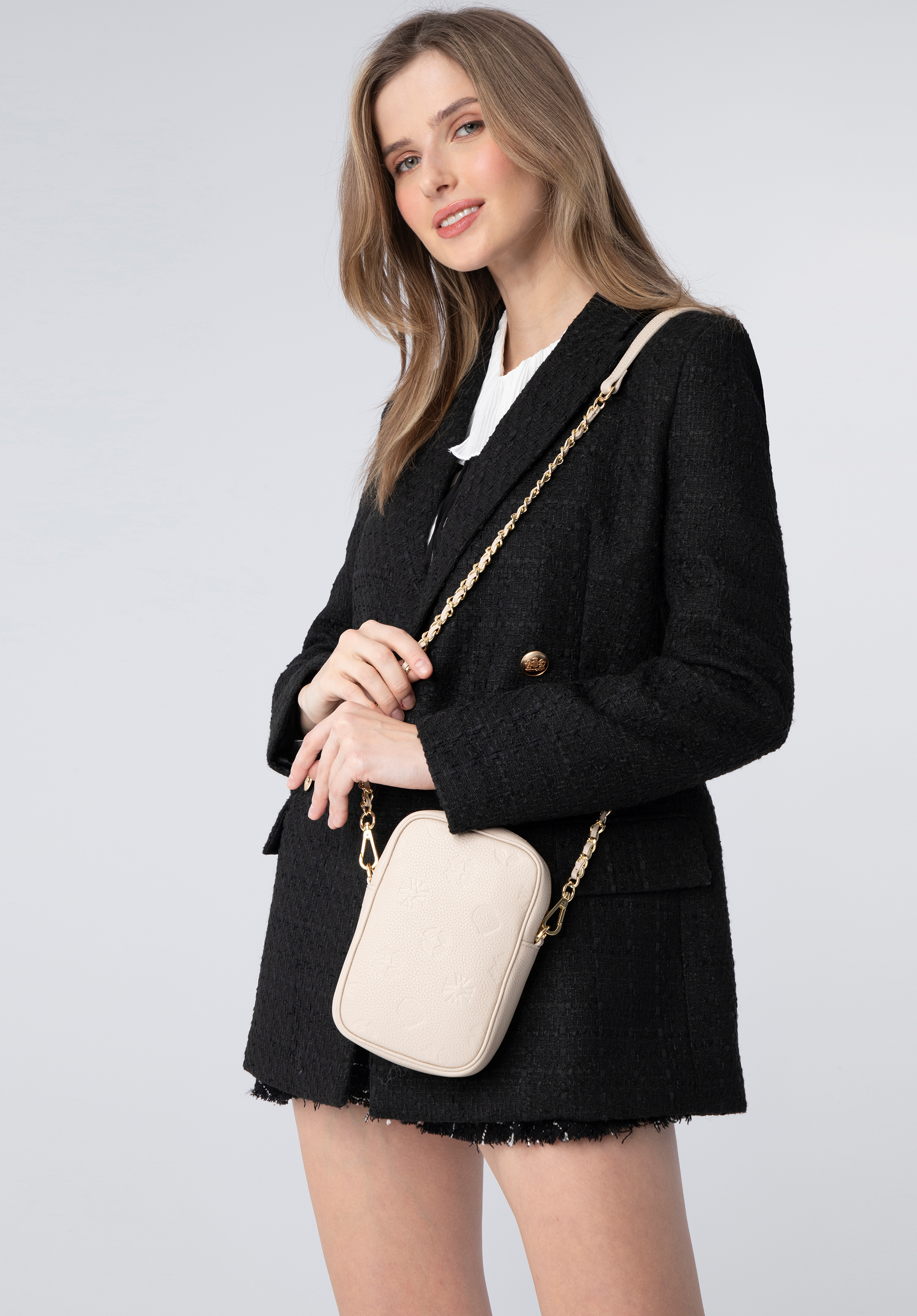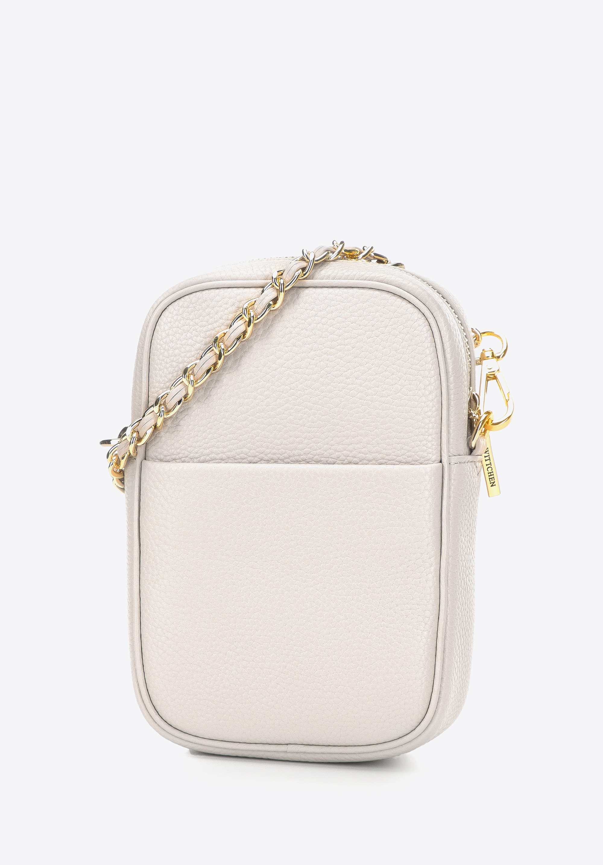 Poșeta mini pentru femei se va asigura că stilul tău la modă rămâne intact, indiferent de ocazie. Confecționată cu grijă din piele de cea mai bună calitate, cu monograma WITTCHEN în relief , este împodobită cu feronerie strălucitoare și curea de umăr cu lanț detașabilă. Această mini posetă mică, dar spațioasă, va ține la îndemână toate elementele tale esențiale feminine, cum ar fi un telefon mobil, cărți de credit, ruj și șervețele. Impecabil de elegantă, dar simplă, această mini posetă se va echipa perfect cu ținutele sport, precum și cu rochiile iubite.
