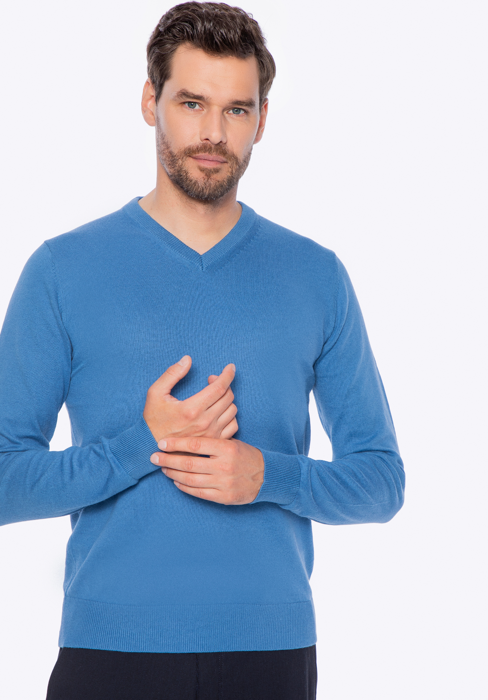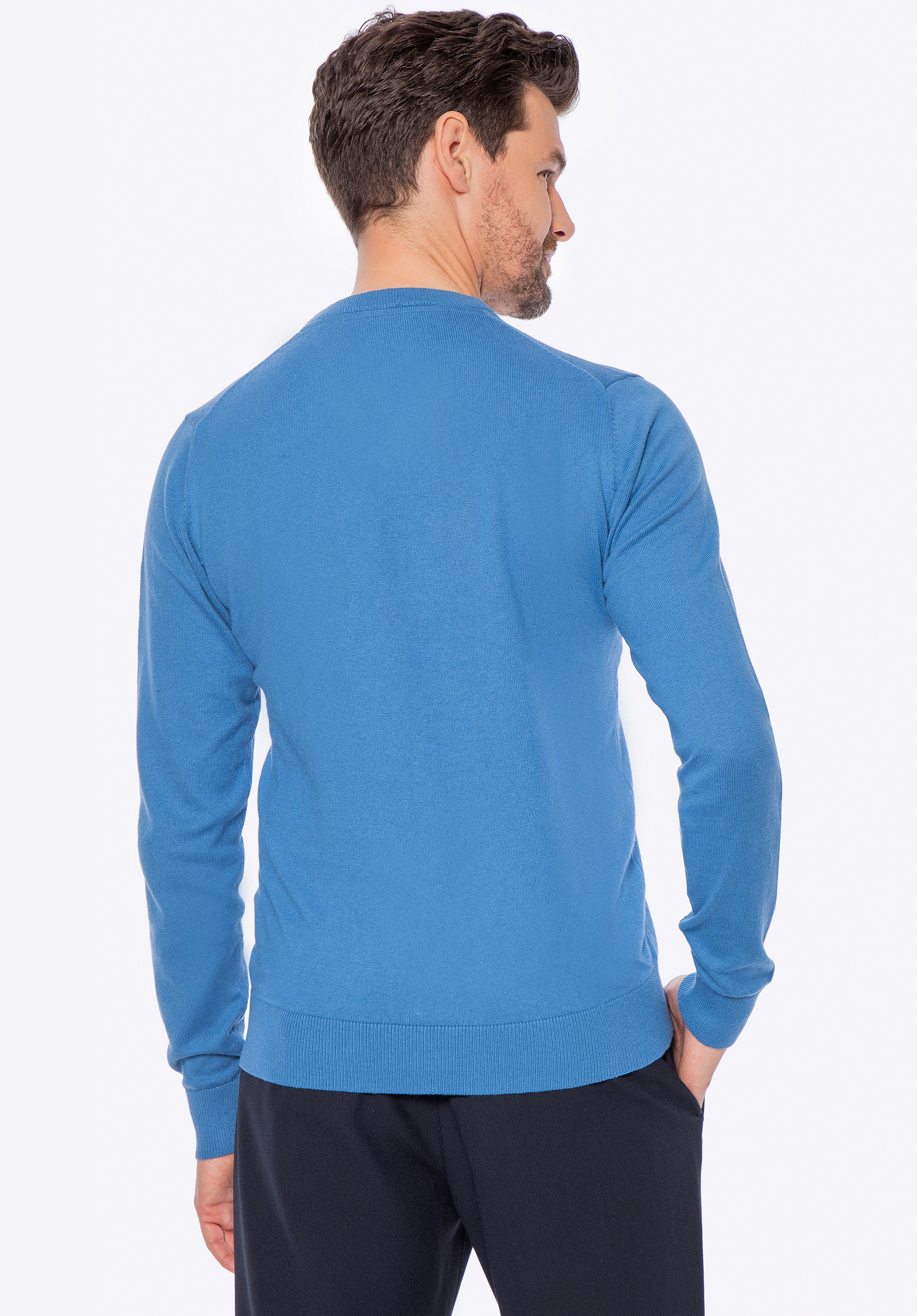 Acest pulover este alegerea perfectă pentru bărbații care apreciază confortul, simplitatea și măiestria impecabilă. Fabricat din bumbac de înaltă calitate cu o notă de cașmir , încântă prin moliciunea și respirabilitatea naturală, oferind o căldură plăcută în zilele reci. Croiul clasic, ușor mulat, se drapă frumos peste siluetă, în timp ce decolteul în V cu finisaje rafinate îi conferă un caracter sofisticat. Acest model este ușor de asortat cu diverse ținute - atât casual, cât și mai elegante.