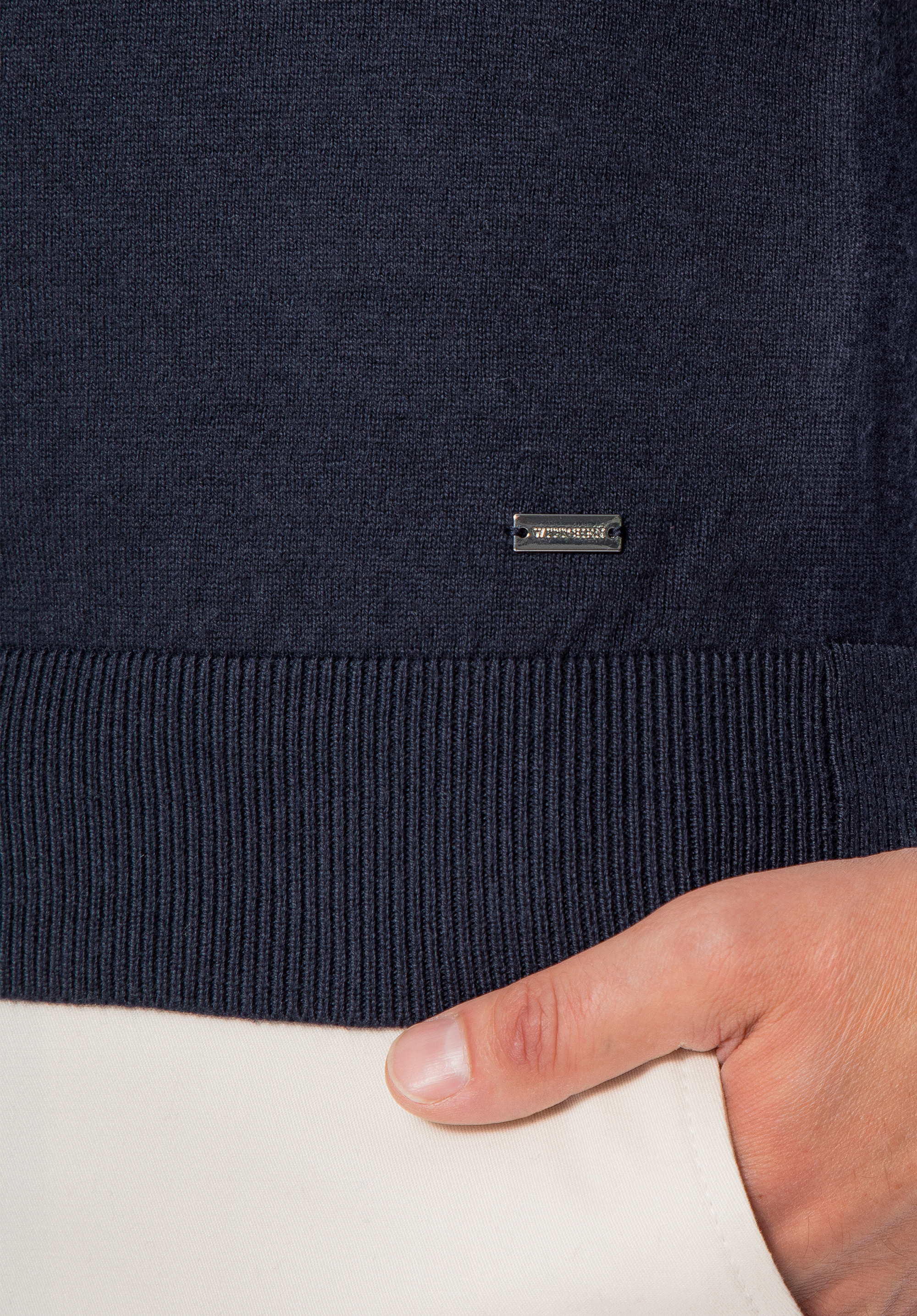 Lux subtil de zi cu zi – acest pulover cu mânecă lungă pentru bărbați este un omagiu adus clasicelor atemporale, apreciat de orice bărbat care prețuiește confortul și calitatea. Fabricat din bumbac moale amestecat cu cașmir , te învăluie în căldură, oferind în același timp respirabilitate naturală – perfect pentru zilele mai răcoroase. Caracteristica cheie este gulerul elegant cu nasturi – cu un simplu gest, îți poți transforma look-ul de la relaxat la unul mai elegant, smart-casual. Un logo metalic discret lângă marginea inferioară completează designul – un mic detaliu care vorbește de la sine despre calitate.